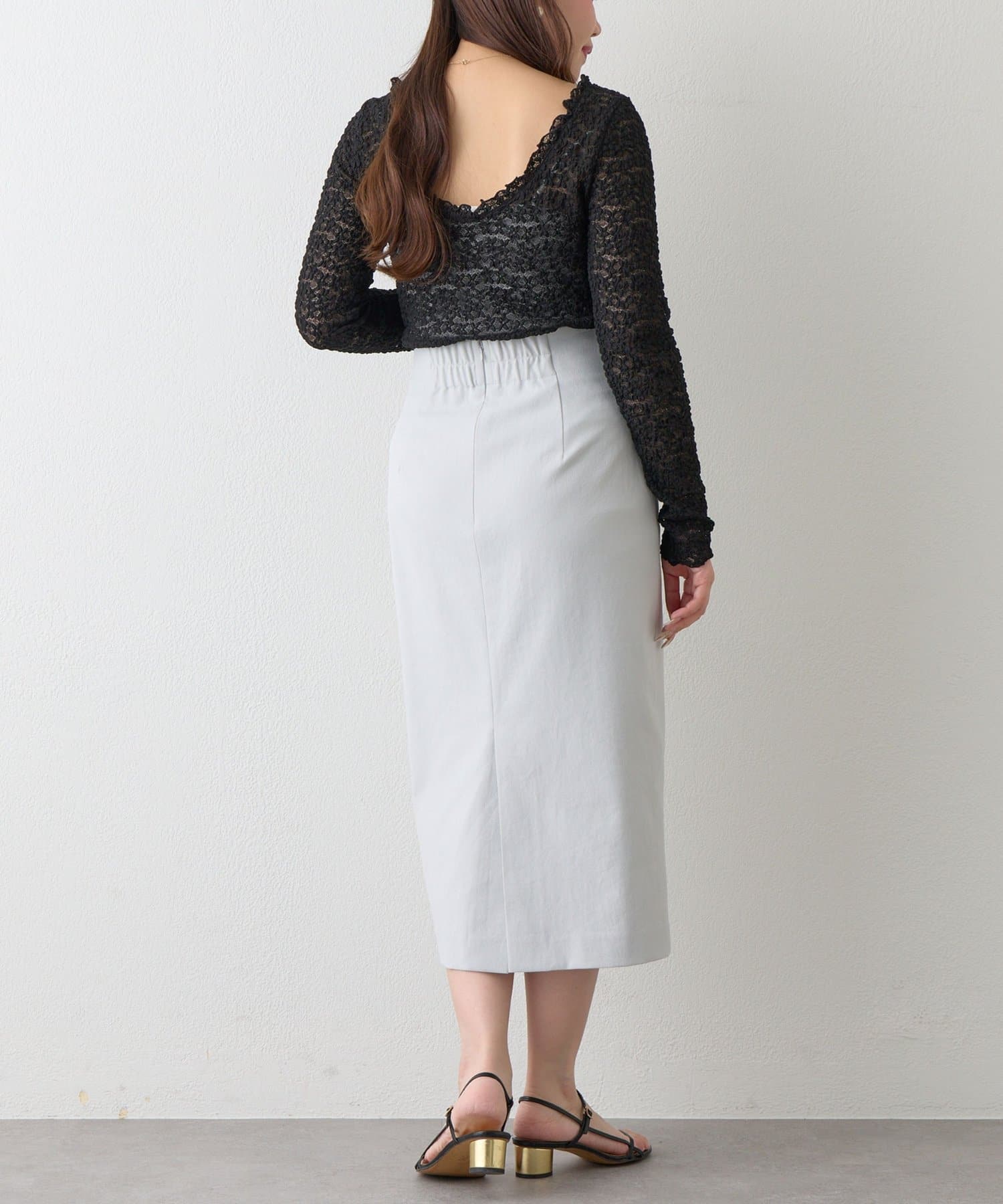 ウエスト後ろはゴム仕様で、快適な穿き心地を叶えます。