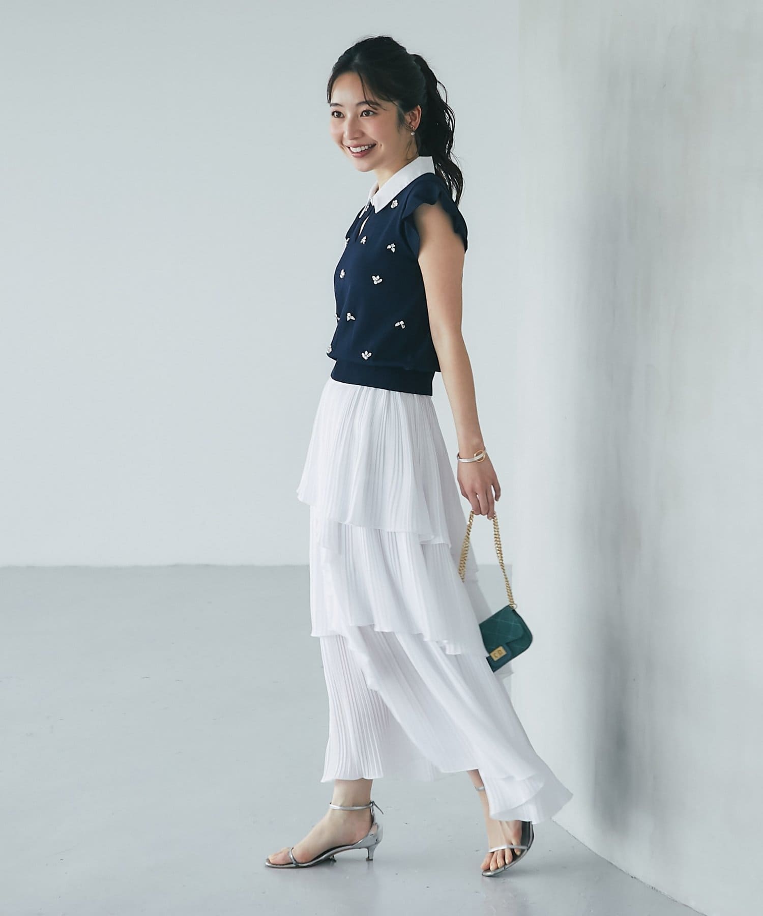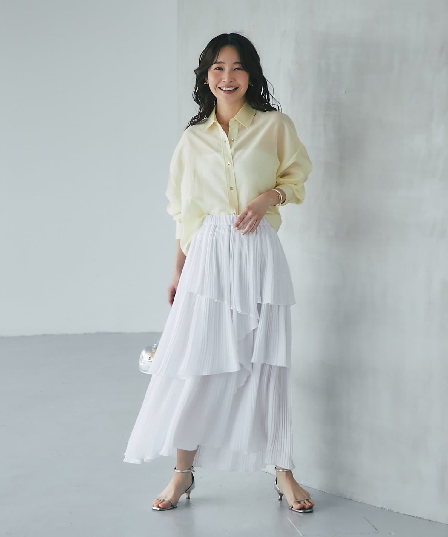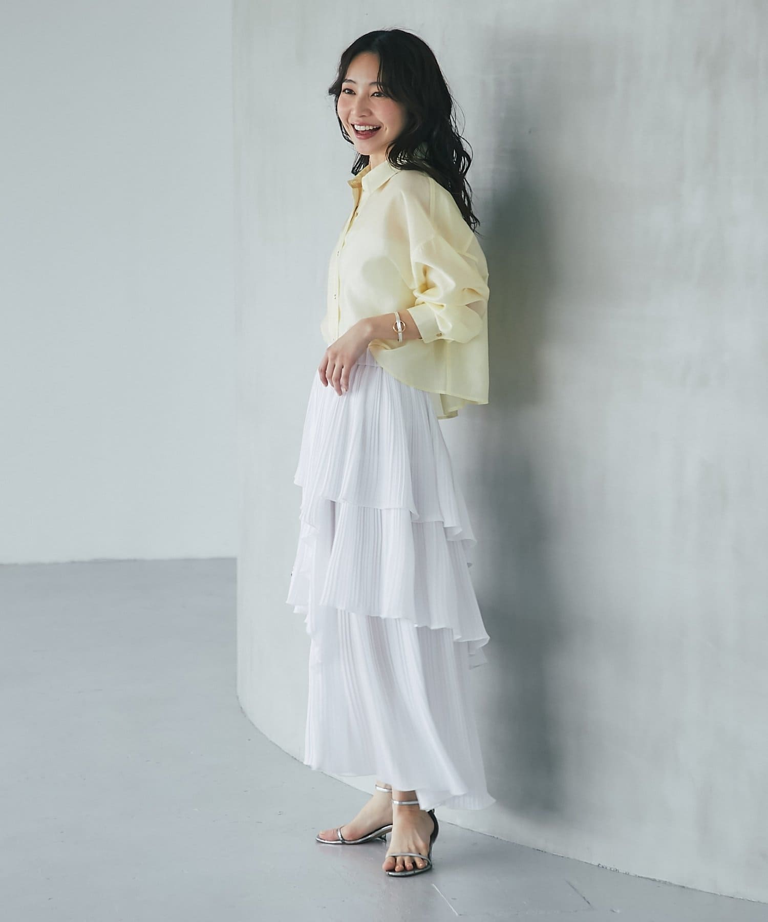 華やかなティアードが女性らしさを引き立てるスカート。