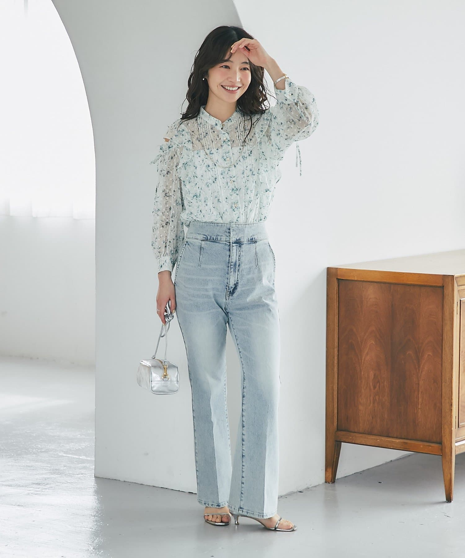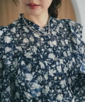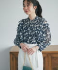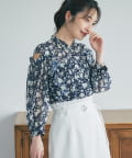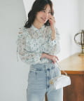 シフォンのようなジャガード生地のふんわり花柄ブラウス。