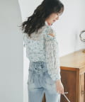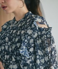 • La boutique BonBon(ラブティックボンボン) フラワープリントカットジャガードオープンショルダーブラウス