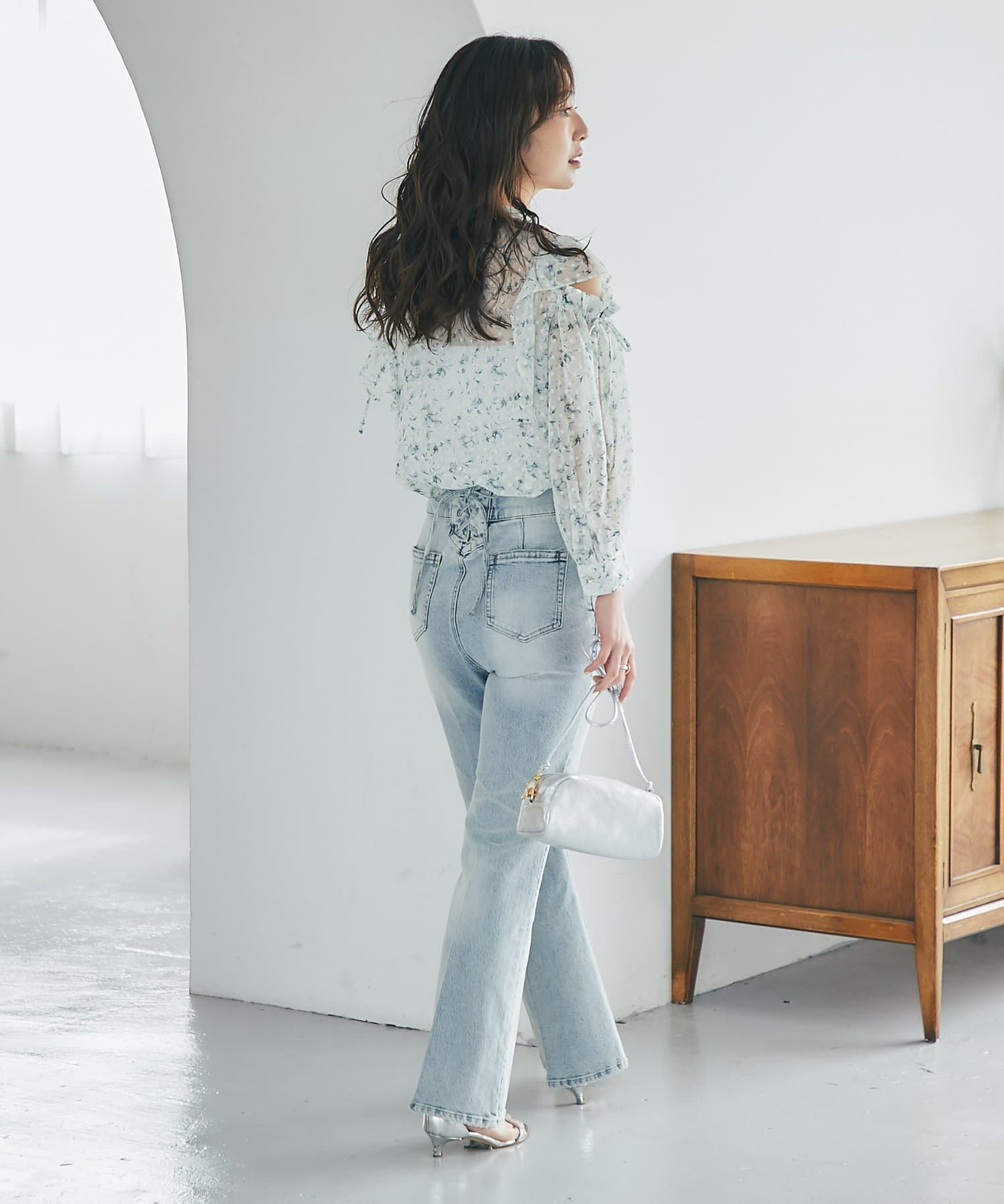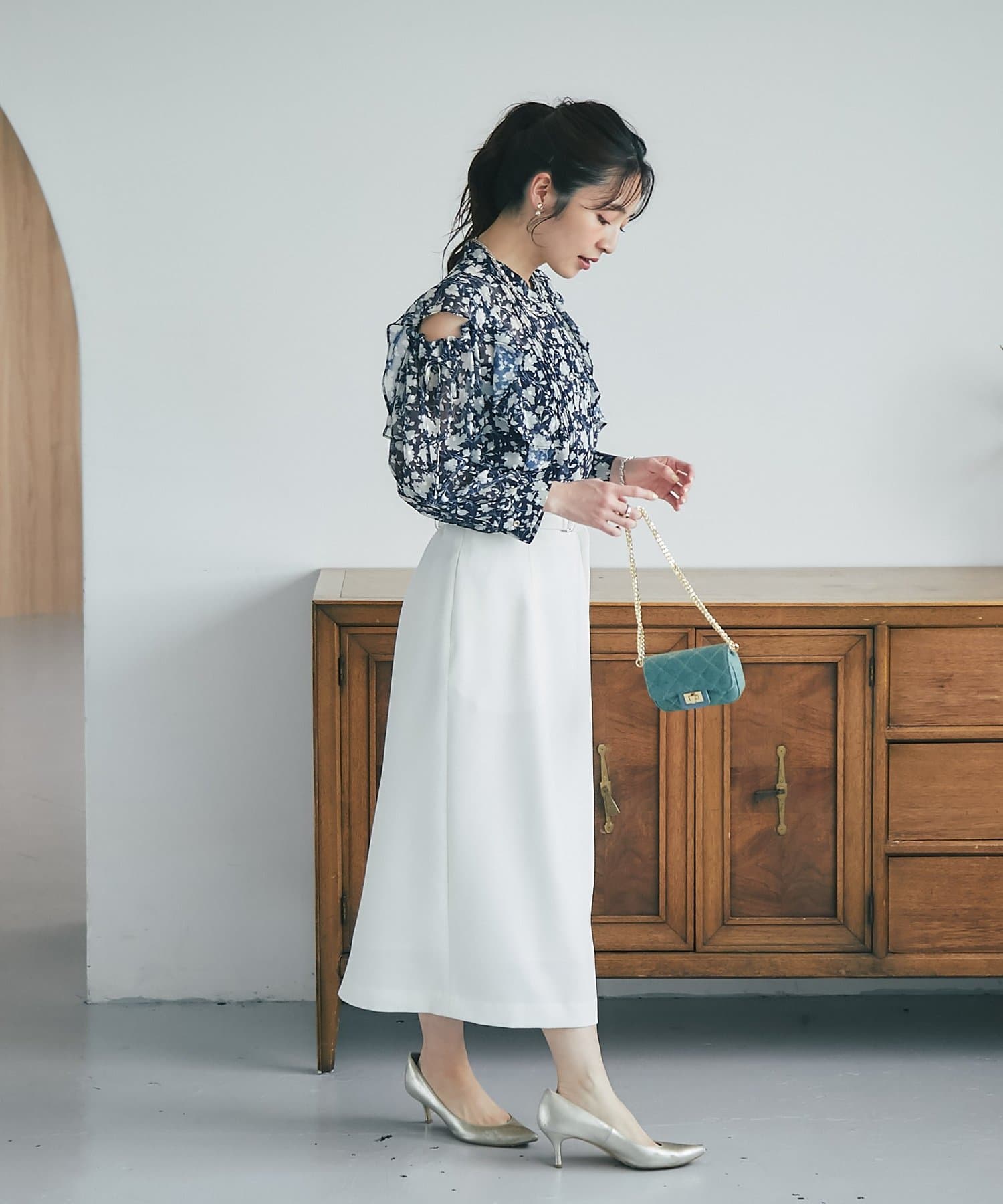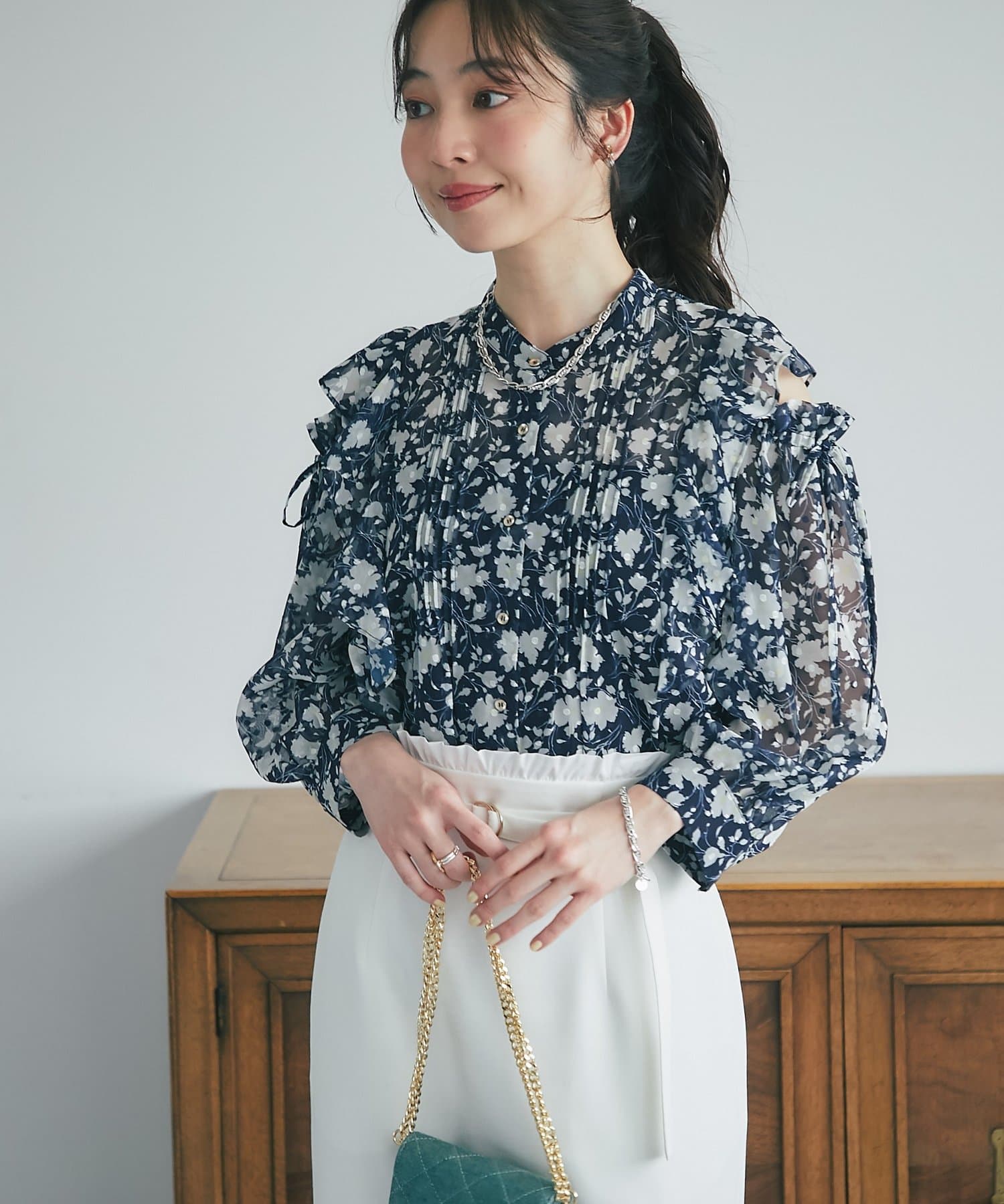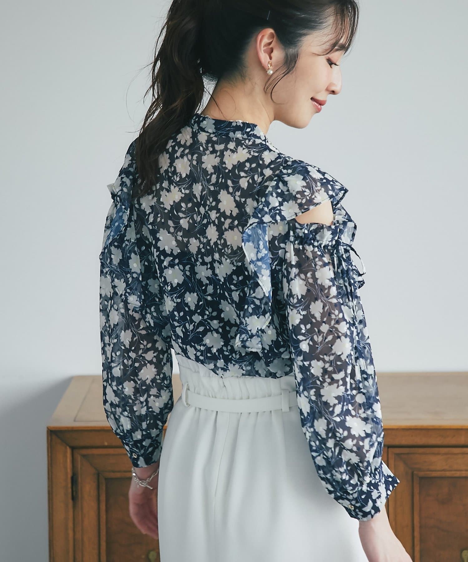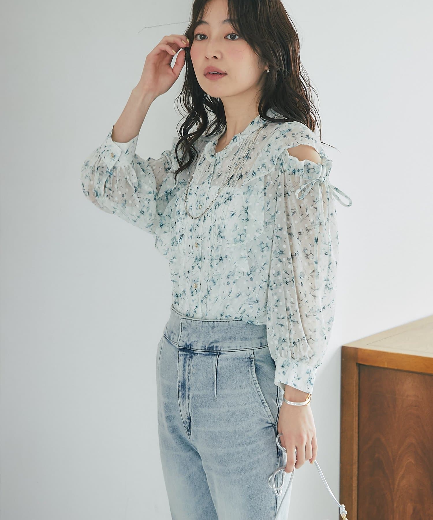 TOP > La boutique BonBon > レディース > トップス > シャツ/ブラウス(ボタン) > フラワープリントカットジャガードオープンショルダーブラウス