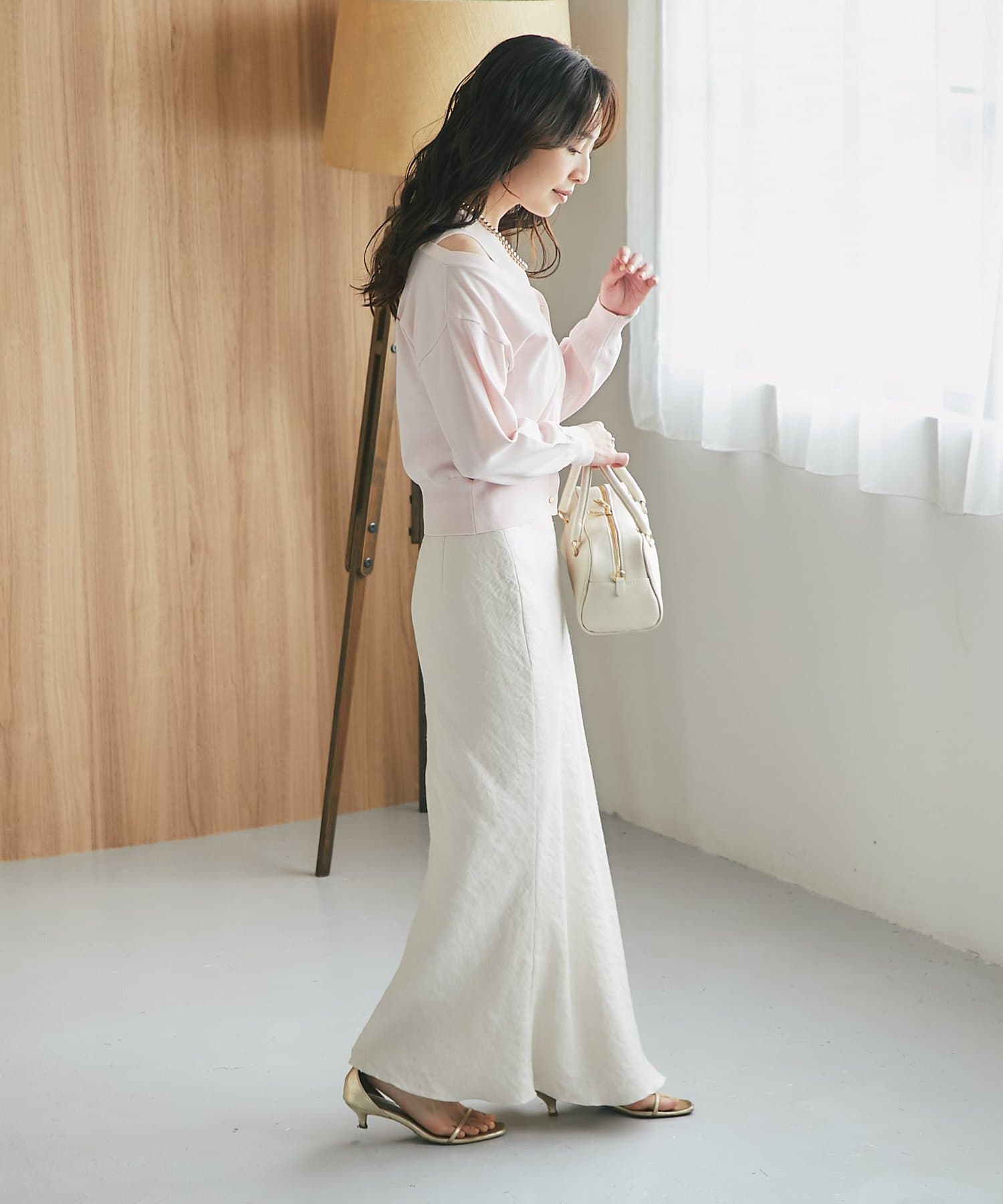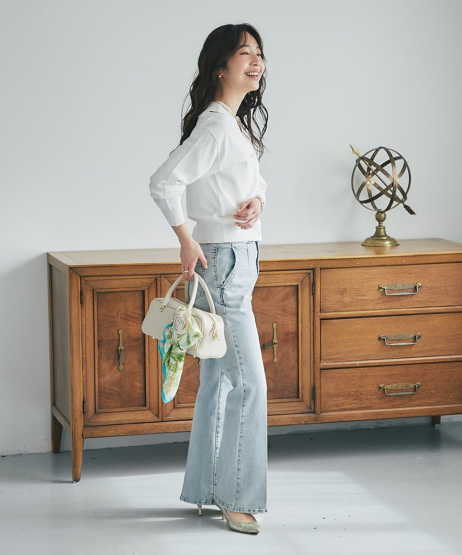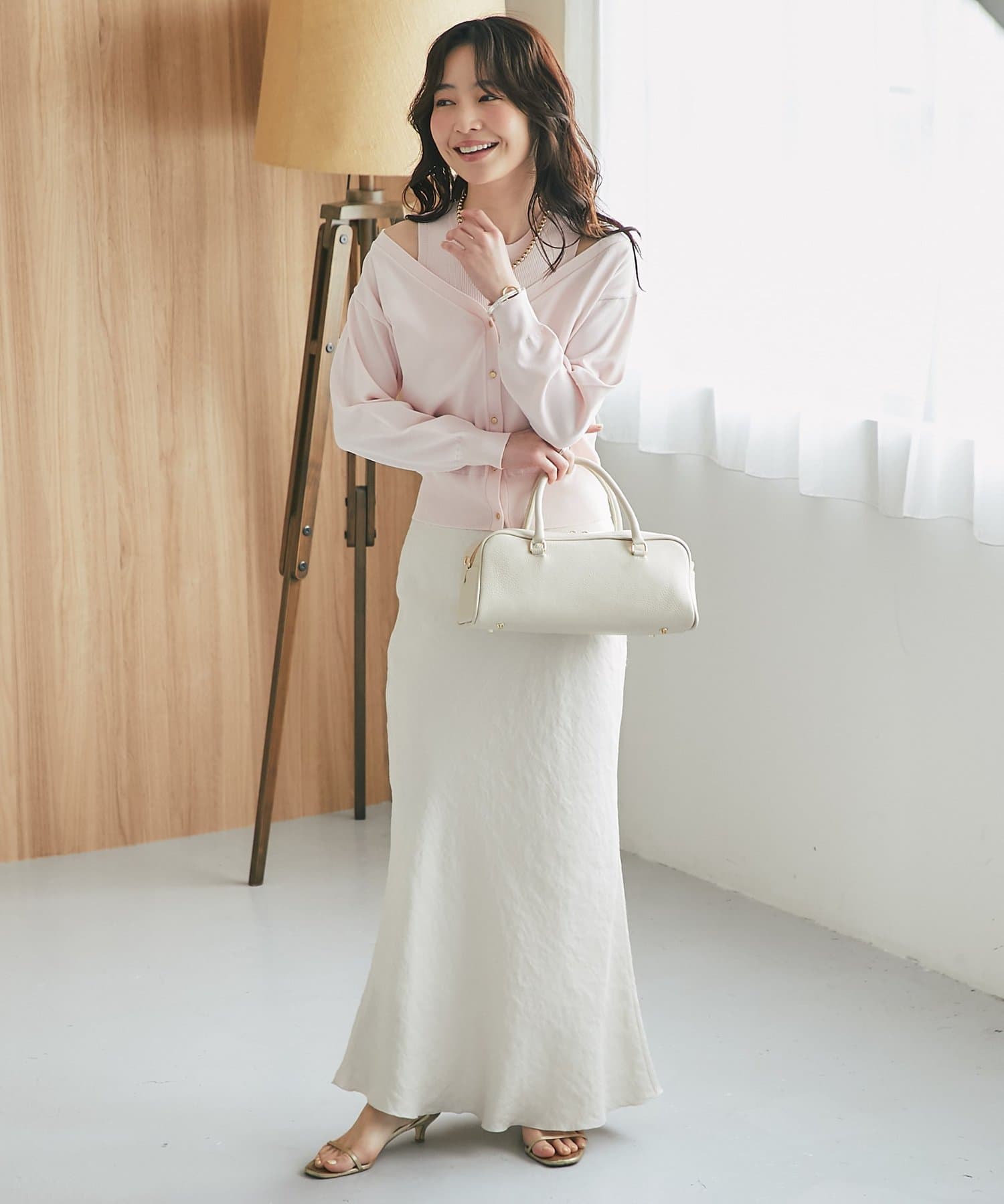 フレアスカートやワンピースと合わせれば、フェミニンで上品な印象で着こなせます。