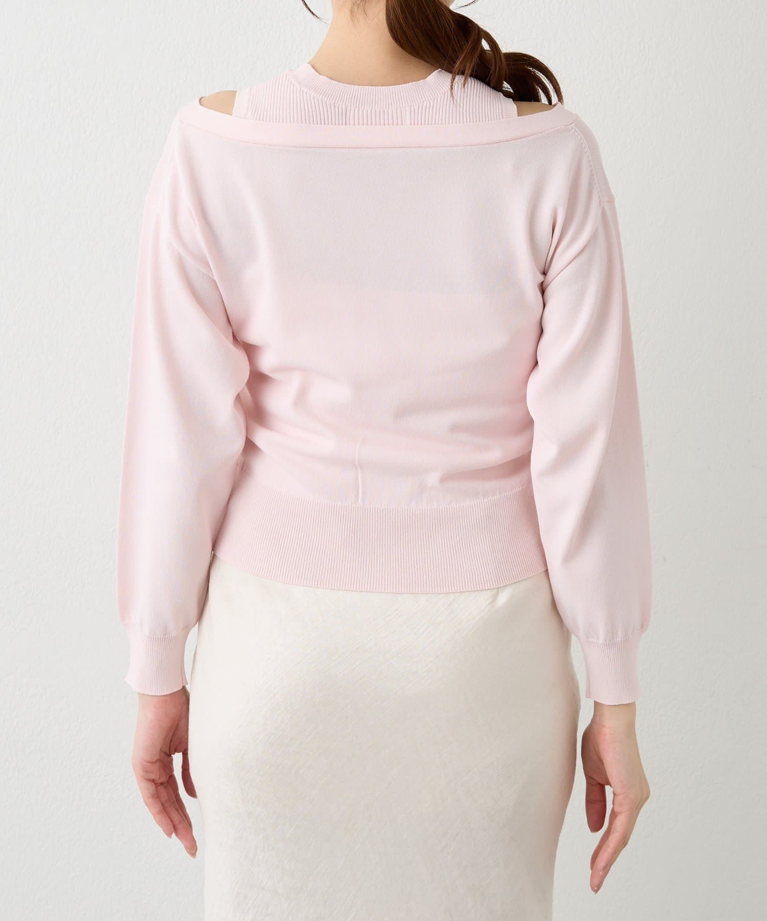 まるで重ね着をしているかのような、フェイクレイヤードデザインのニットです。