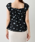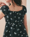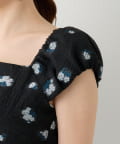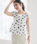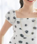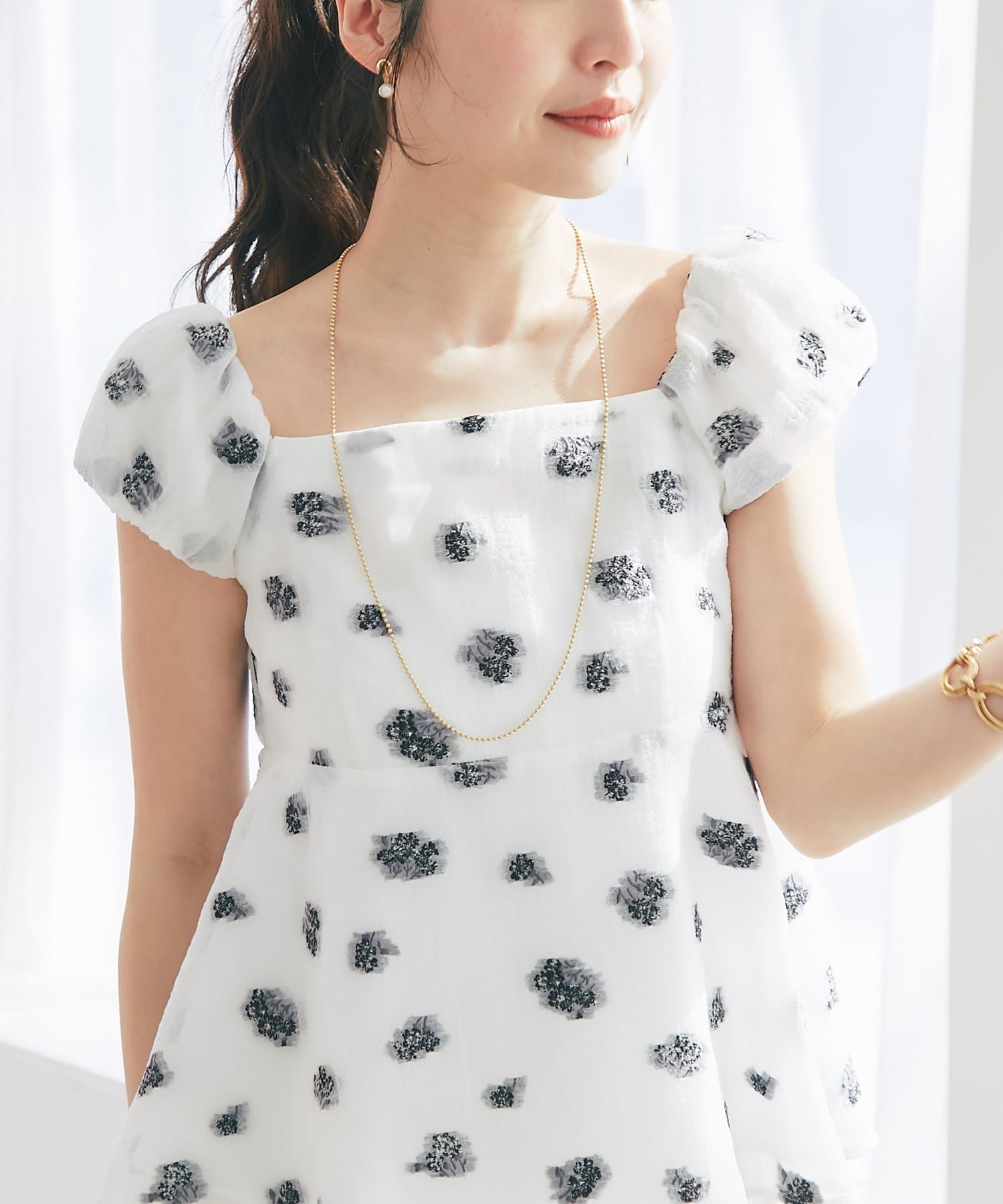 スクエアネックでデコルテが綺麗に見えて、パフっとしたふくらみのあるフレンチスリーブがデザインポイント。