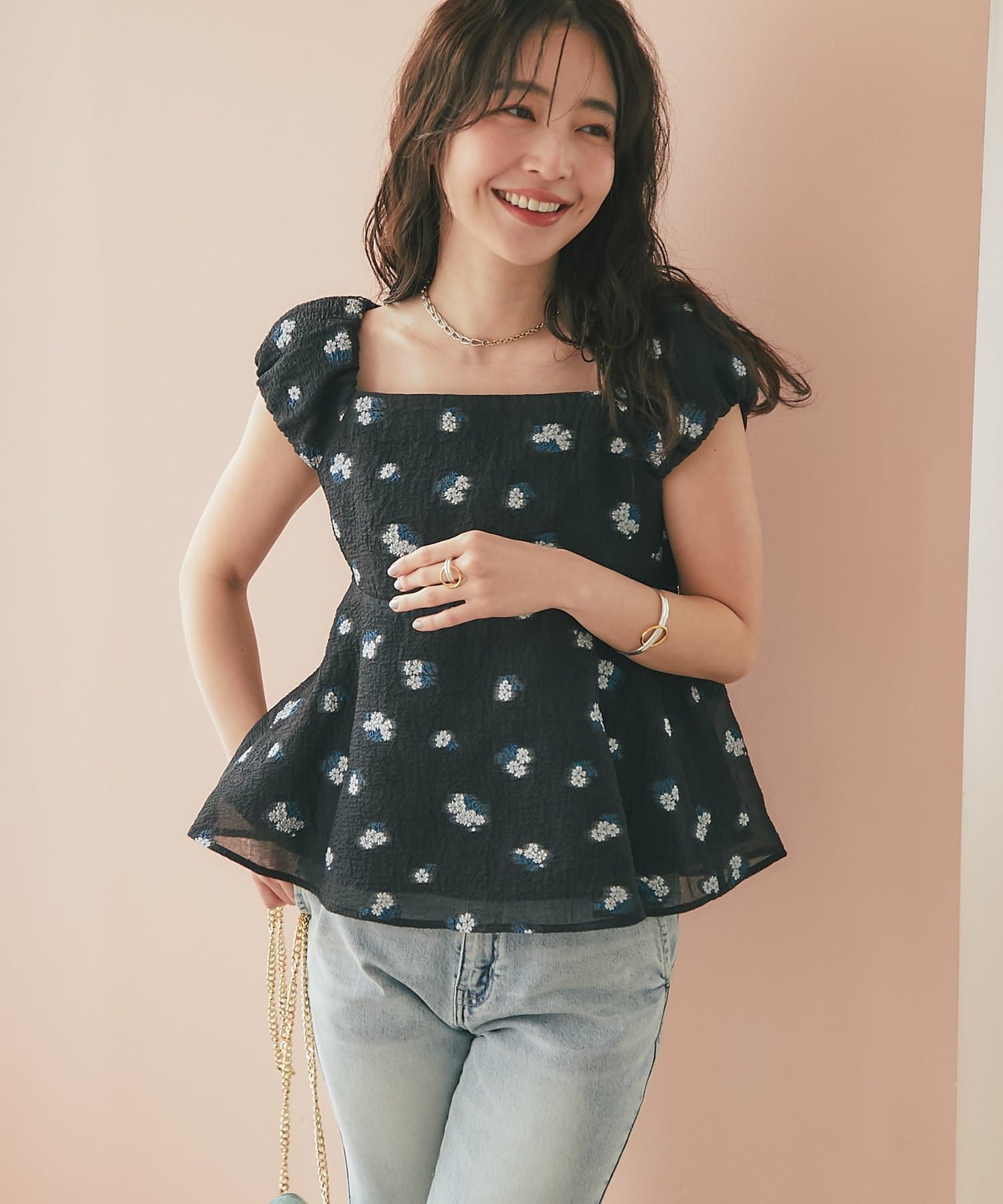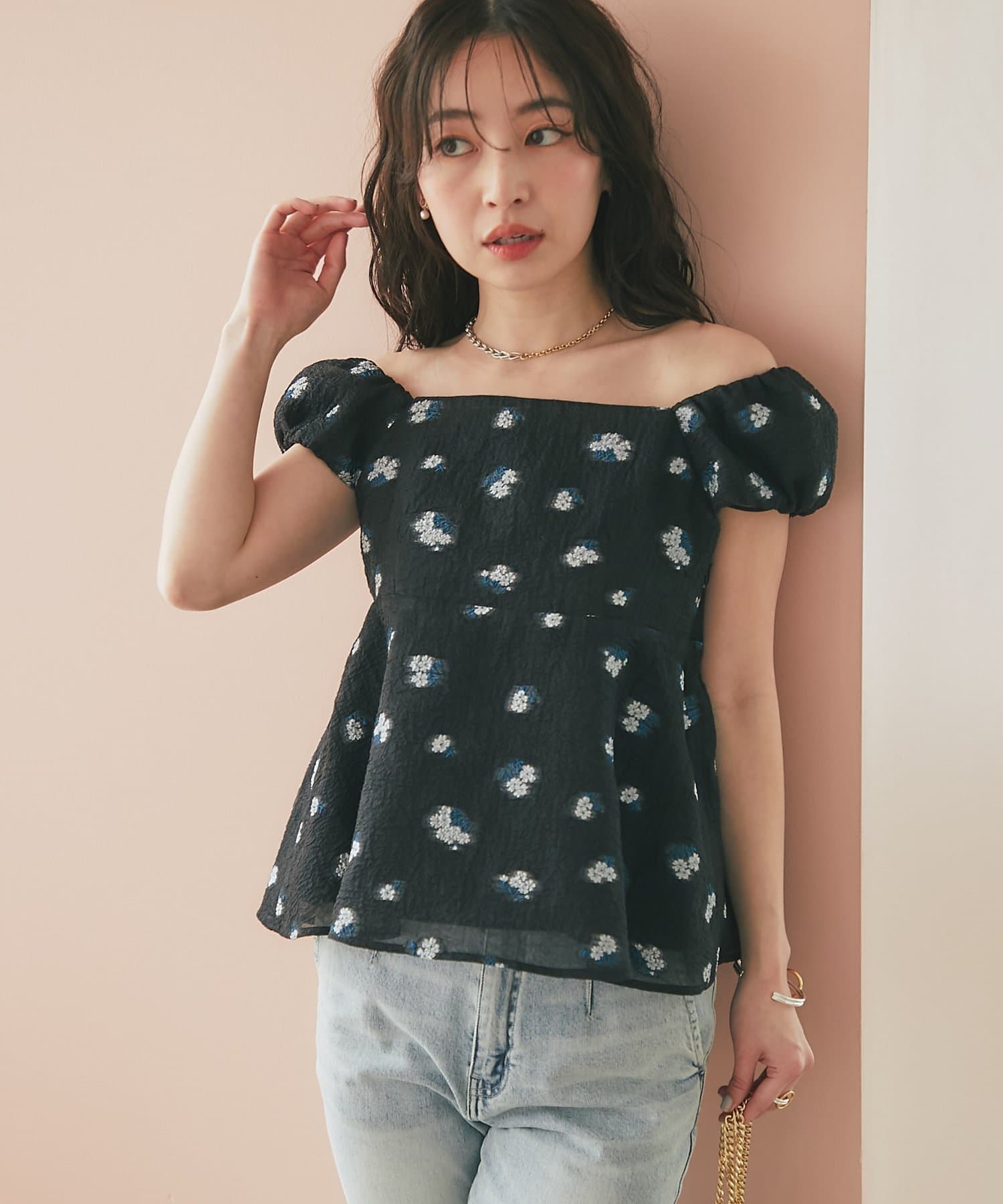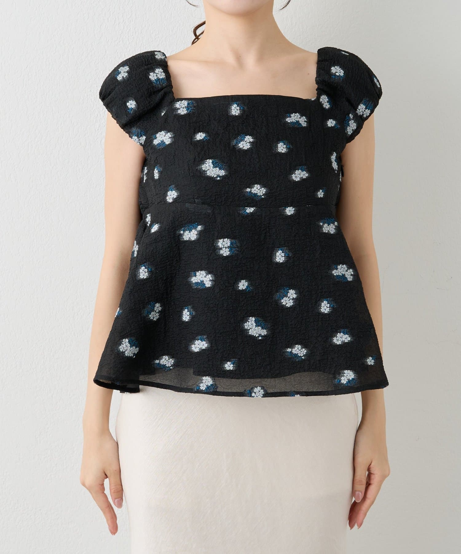 【最強モテブラウス】小花ラメジャガードペプラムブラウス