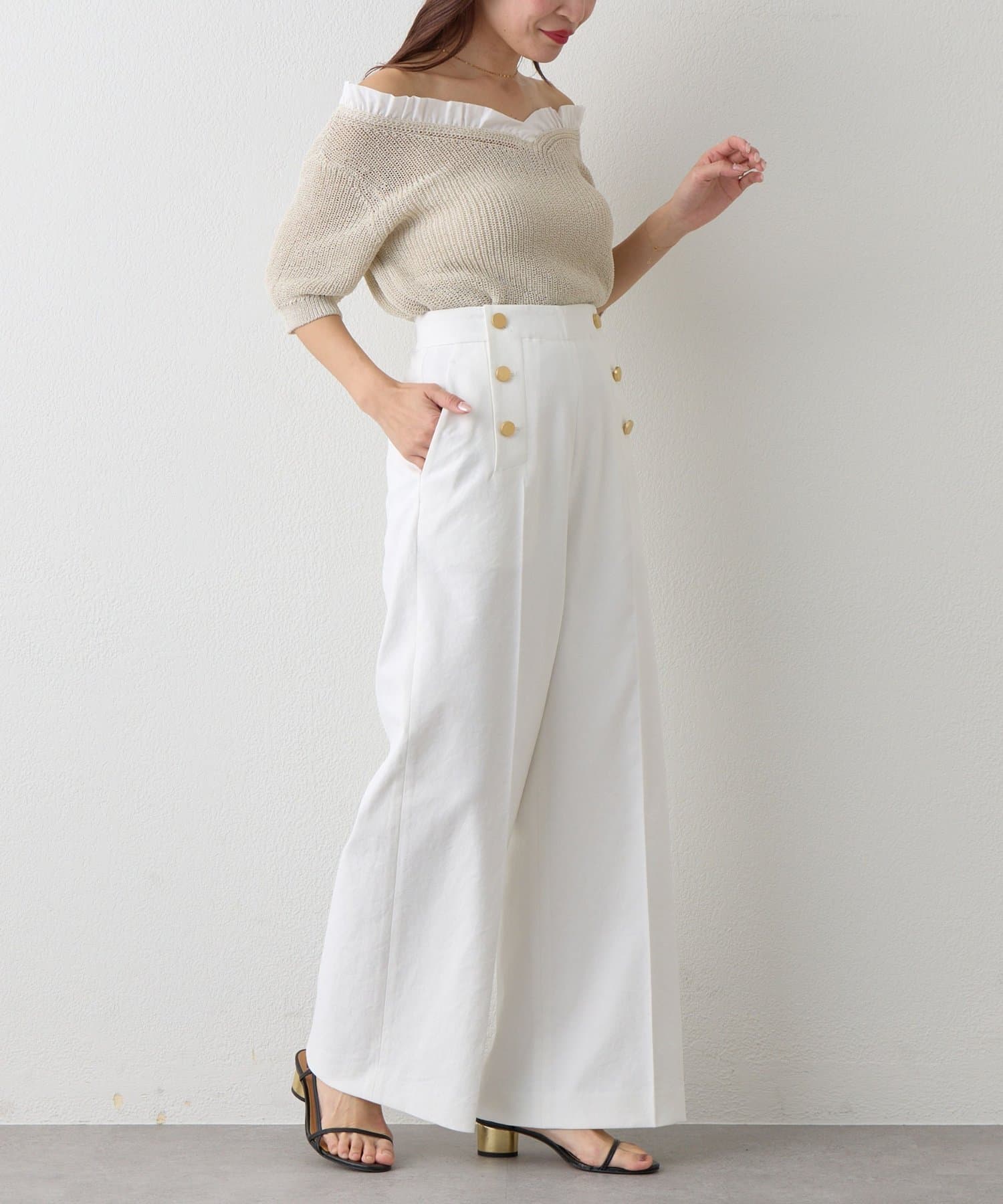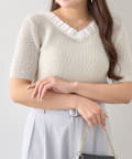 TOP > La boutique BonBon > レディース > トップス > ニット/セーター > ペーパーヤーンフリルVネックニット