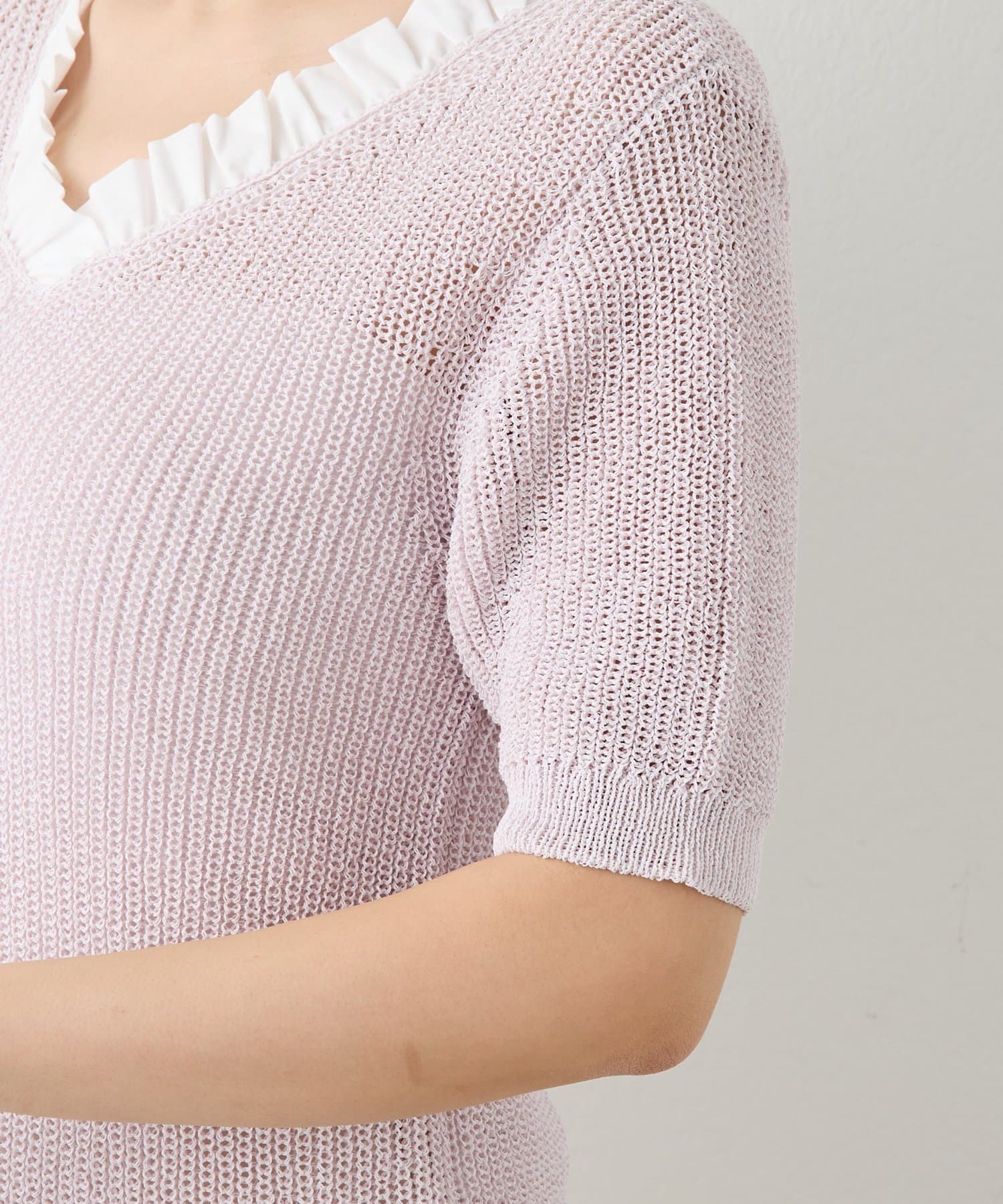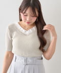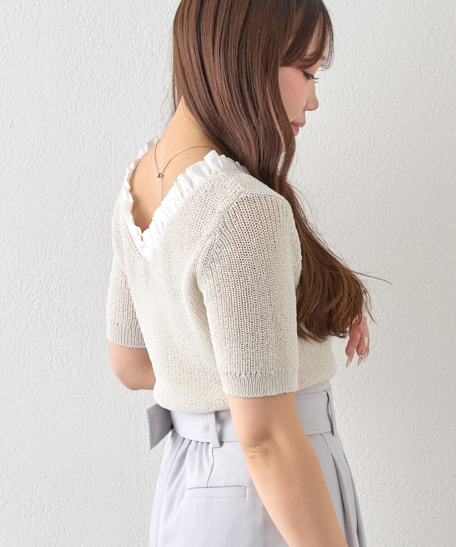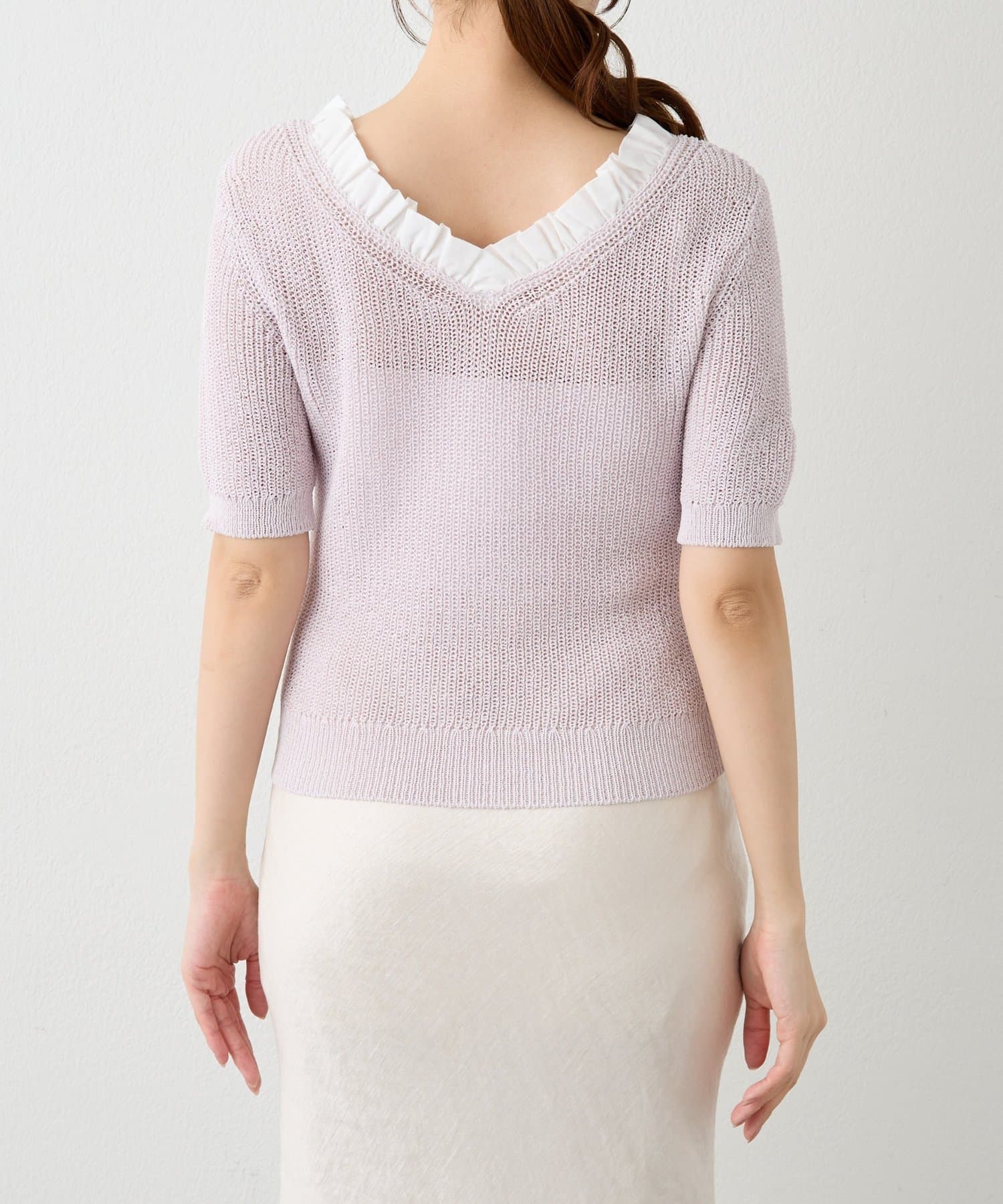 La boutique BonBon(ラブティックボンボン) ペーパーヤーンフリルVネックニット