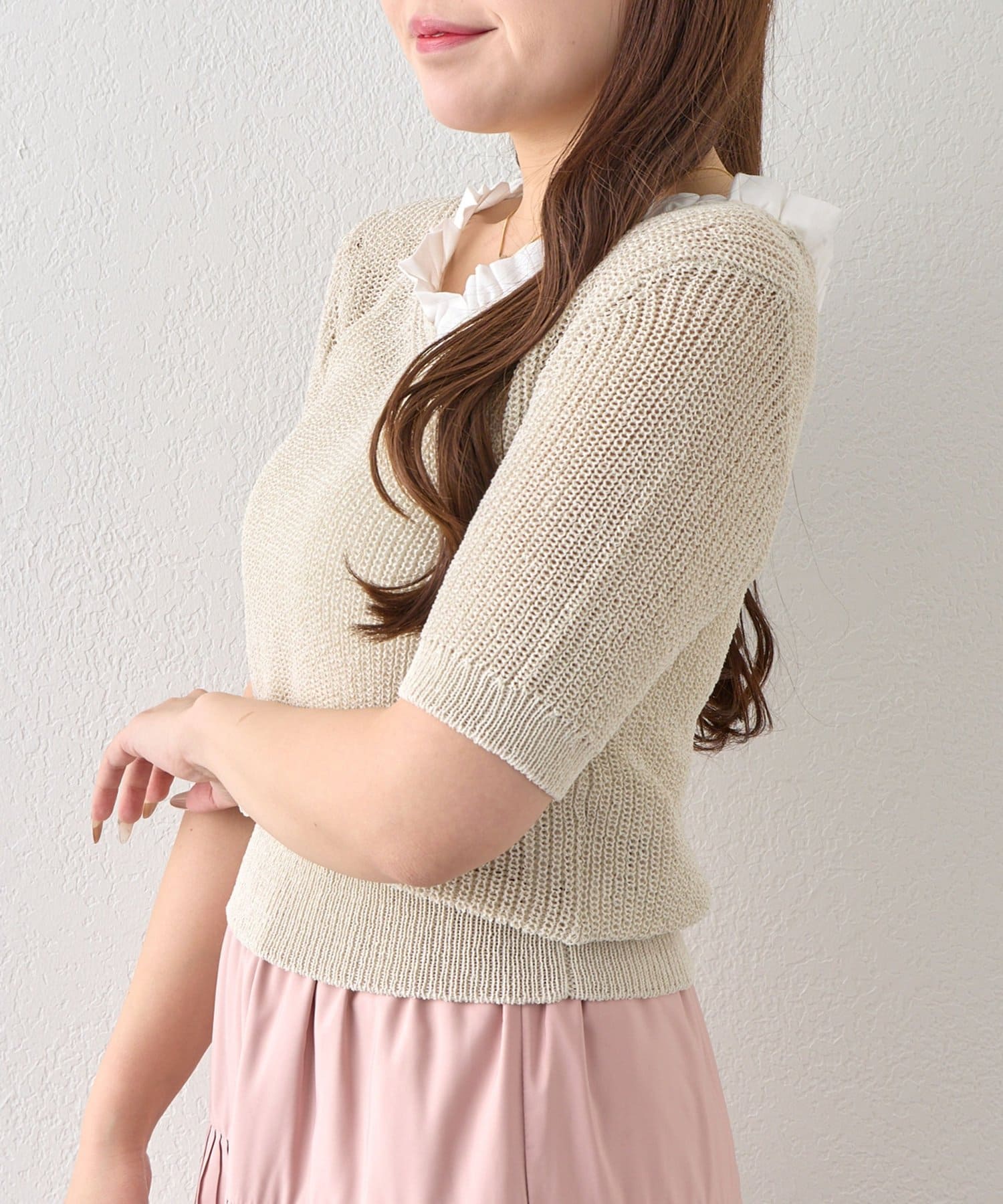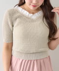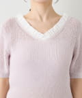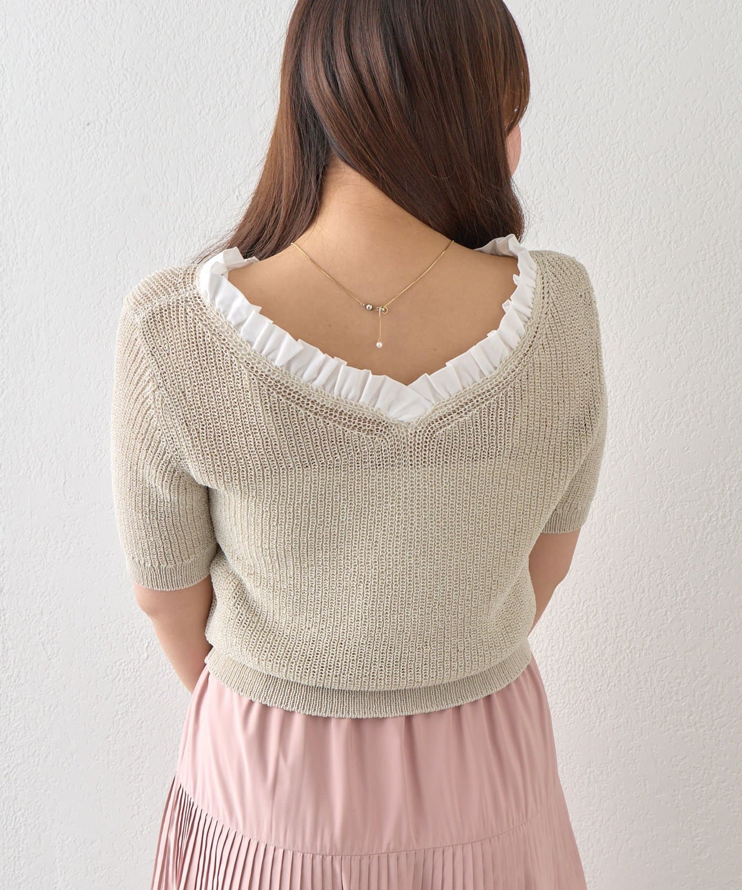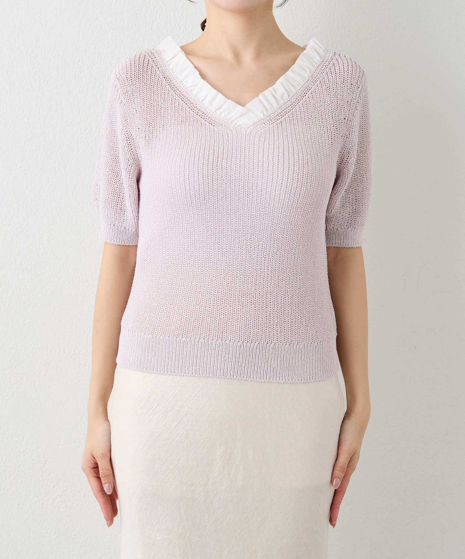 La boutique BonBon(ラブティックボンボン) ペーパーヤーンフリルVネックニット