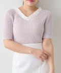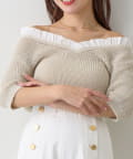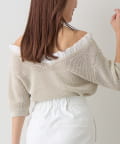 • La boutique BonBon(ラブティックボンボン) ペーパーヤーンフリルVネックニット