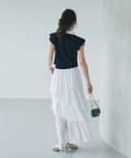 フレアスカートと合わせたフェミニンな着こなしもおすすめです。