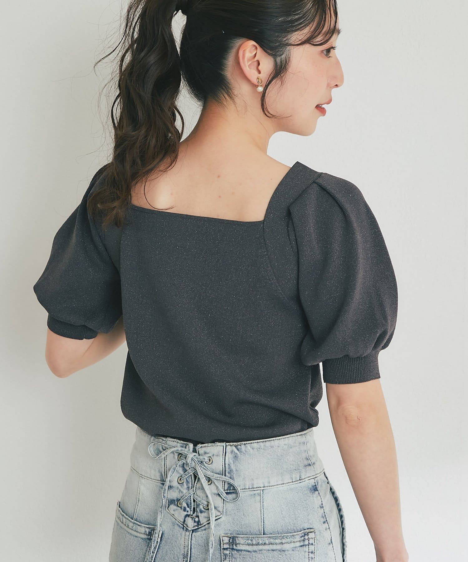 ふんわりとしたパフスリーブと、さりげなくきらめくラメが
