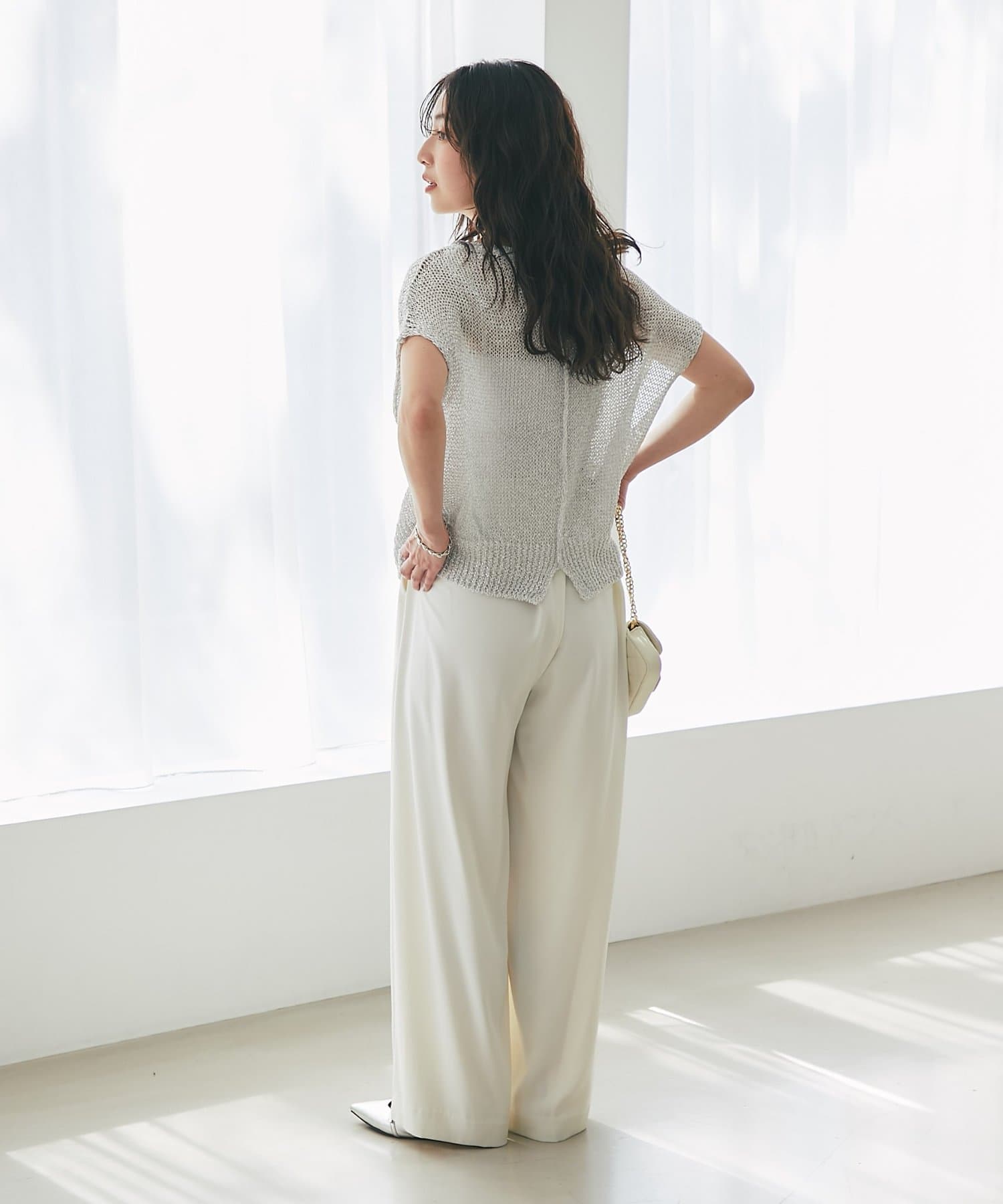 透け感のある繊細な編み地が、夏の暑さの中でも軽やかな着心地を実現。