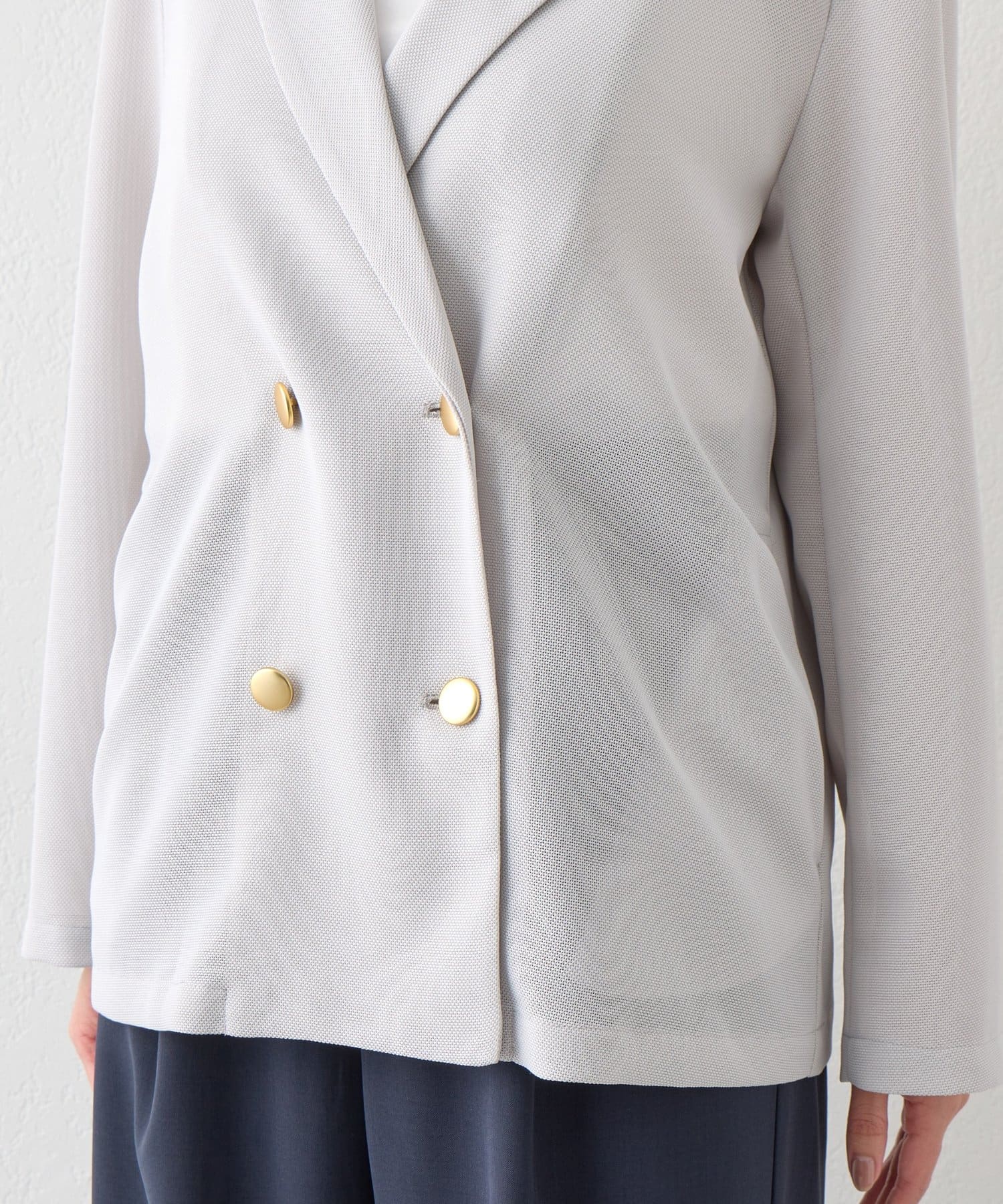 ダブルフロントデザインのゴールドボタンが、上品なアクセントを添えます。