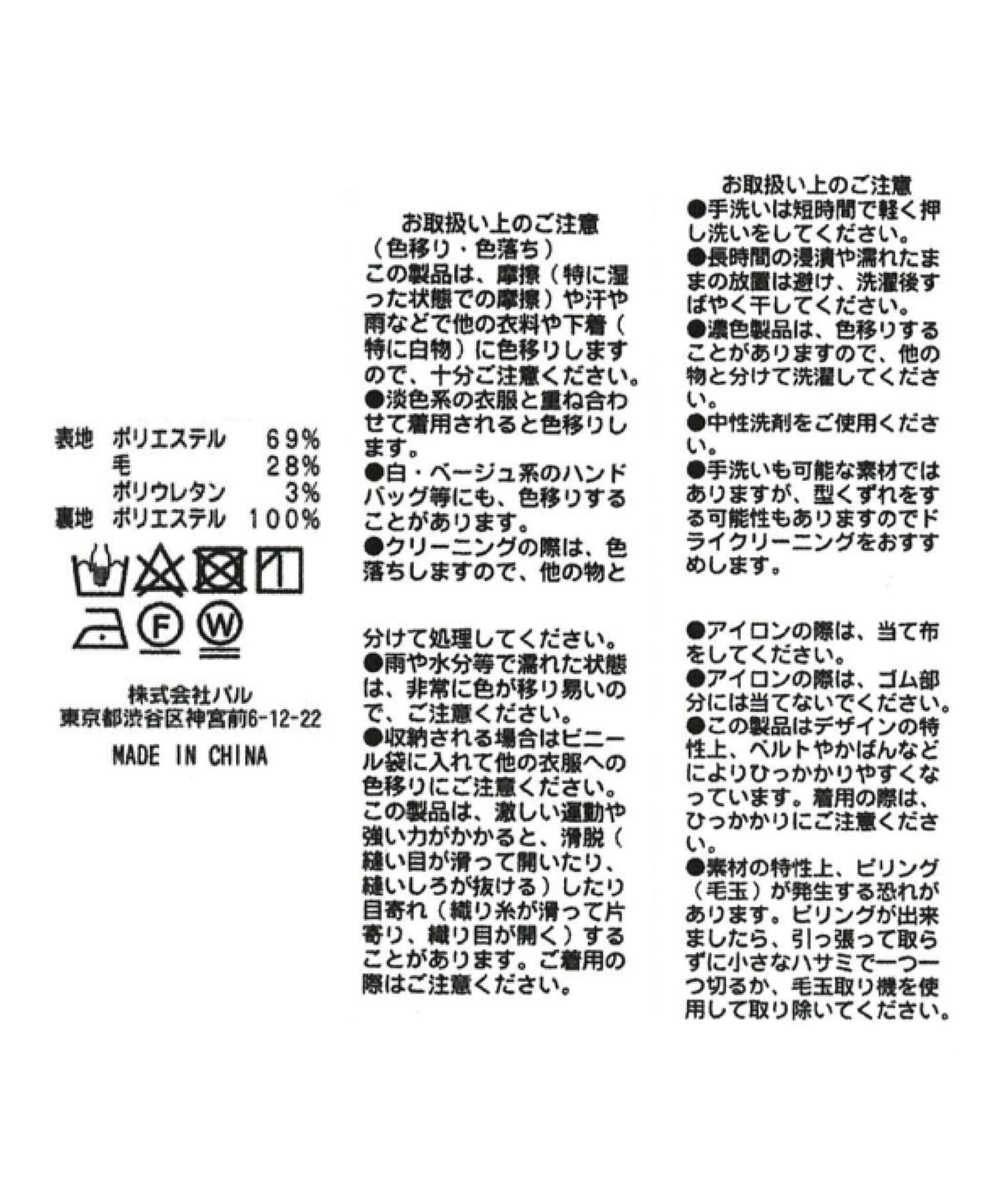 品番 LBZ10A2209A0001 素材 表地:ポリエステル69% 毛28% ポリウレタン3%