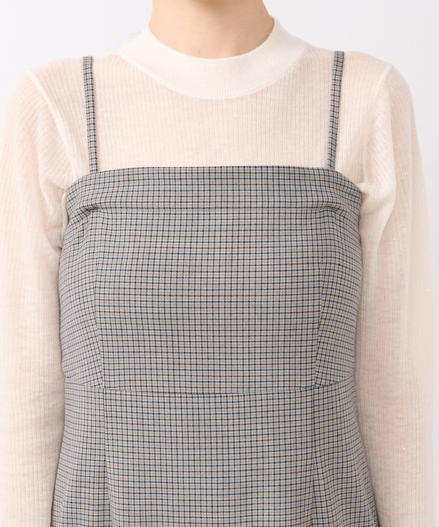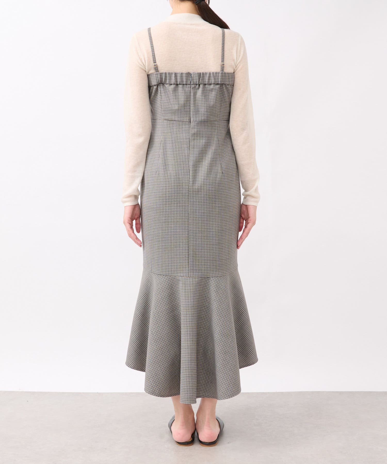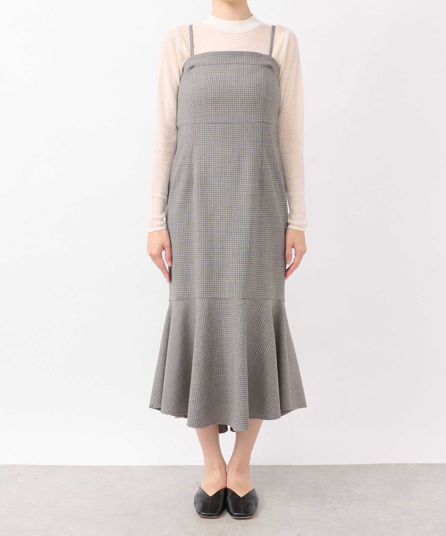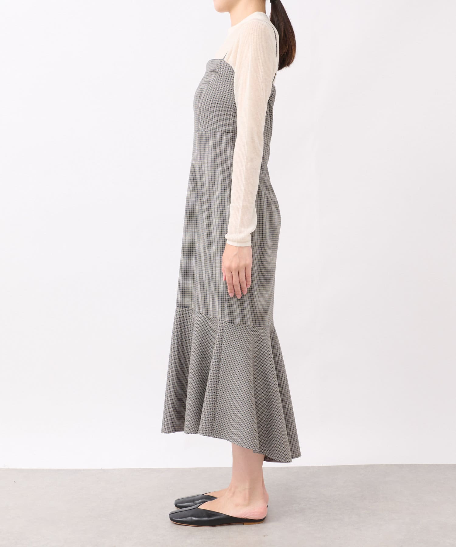秋のコーディネートにぴったりのチェックが魅力のキャミワンピース。