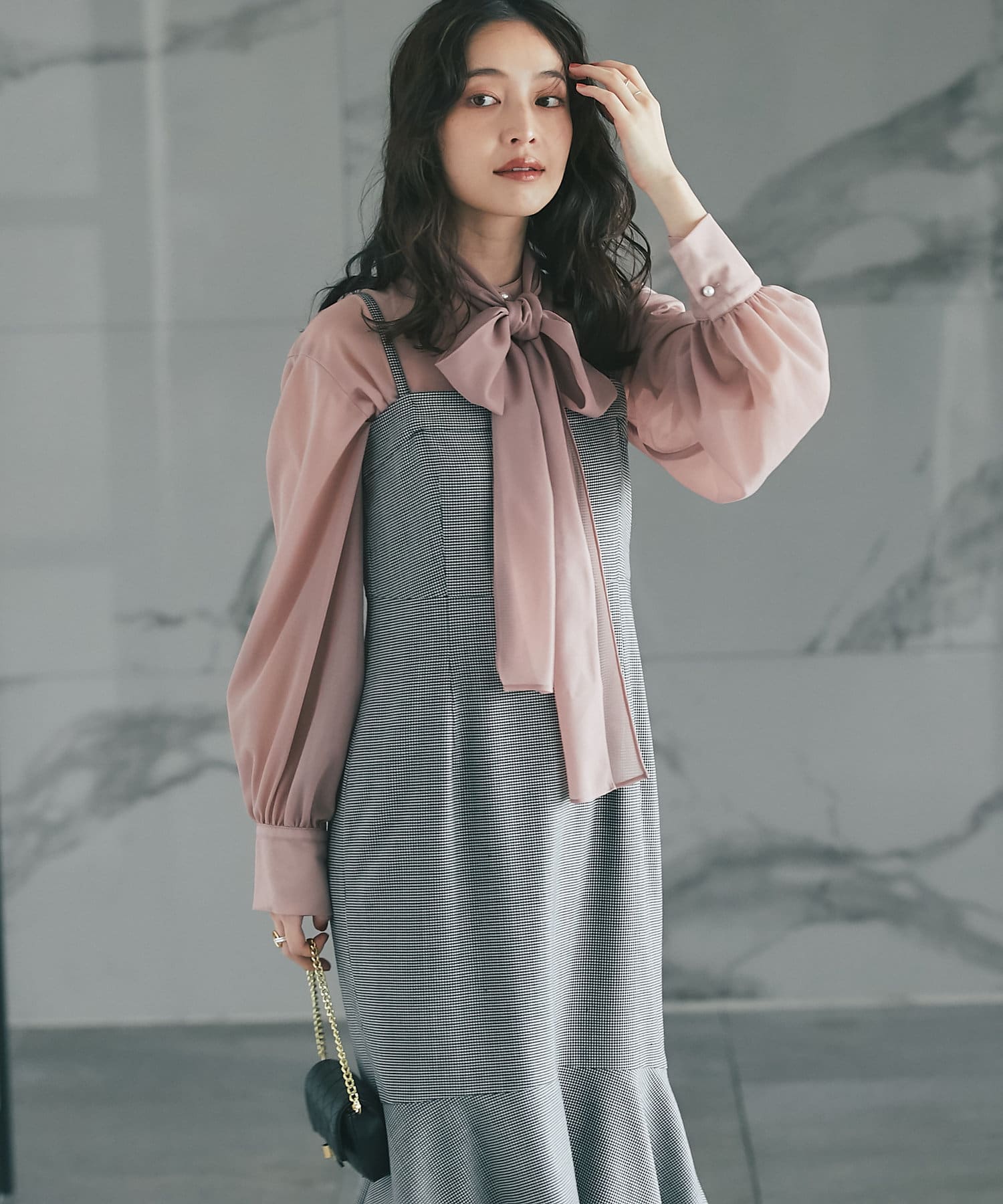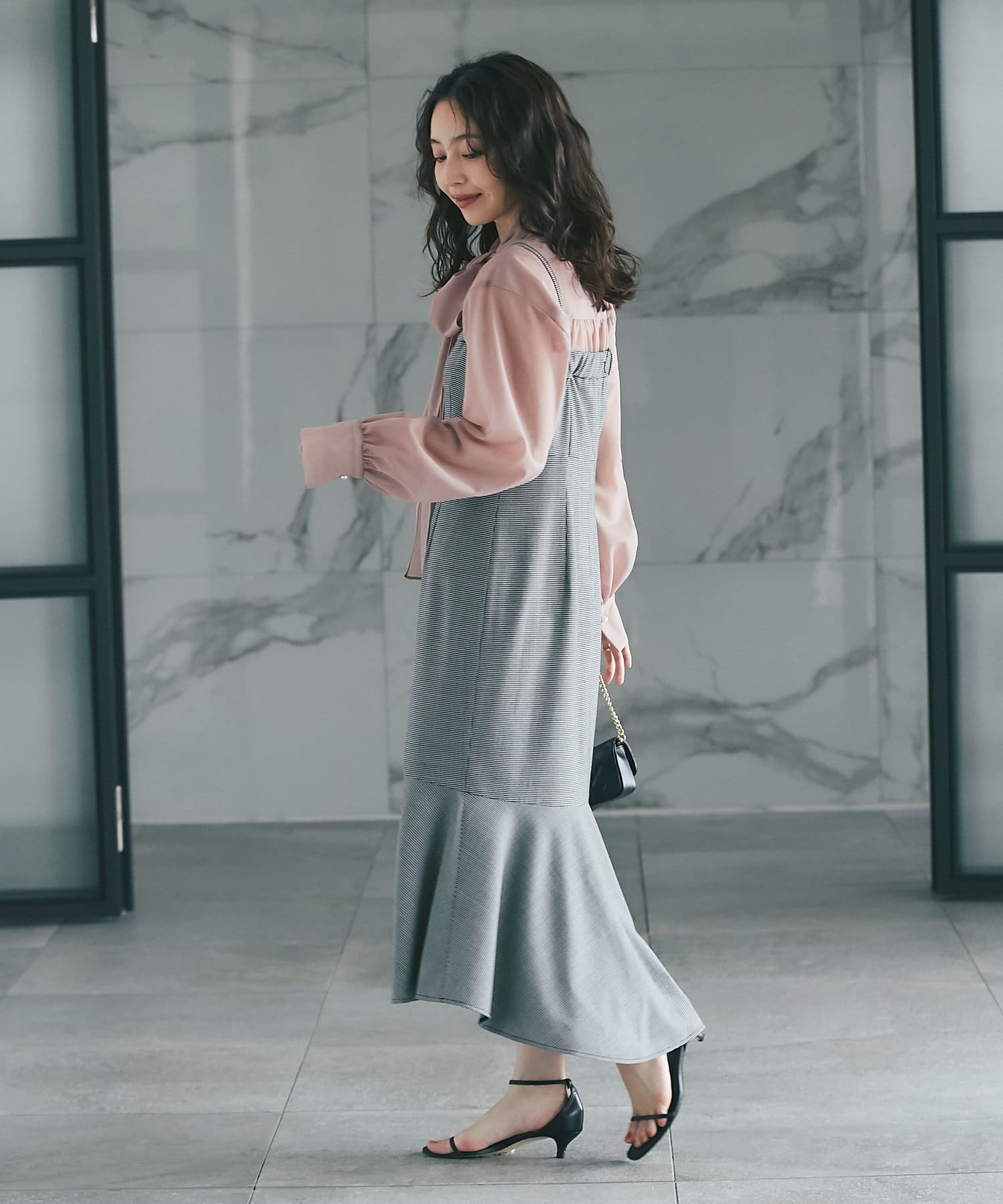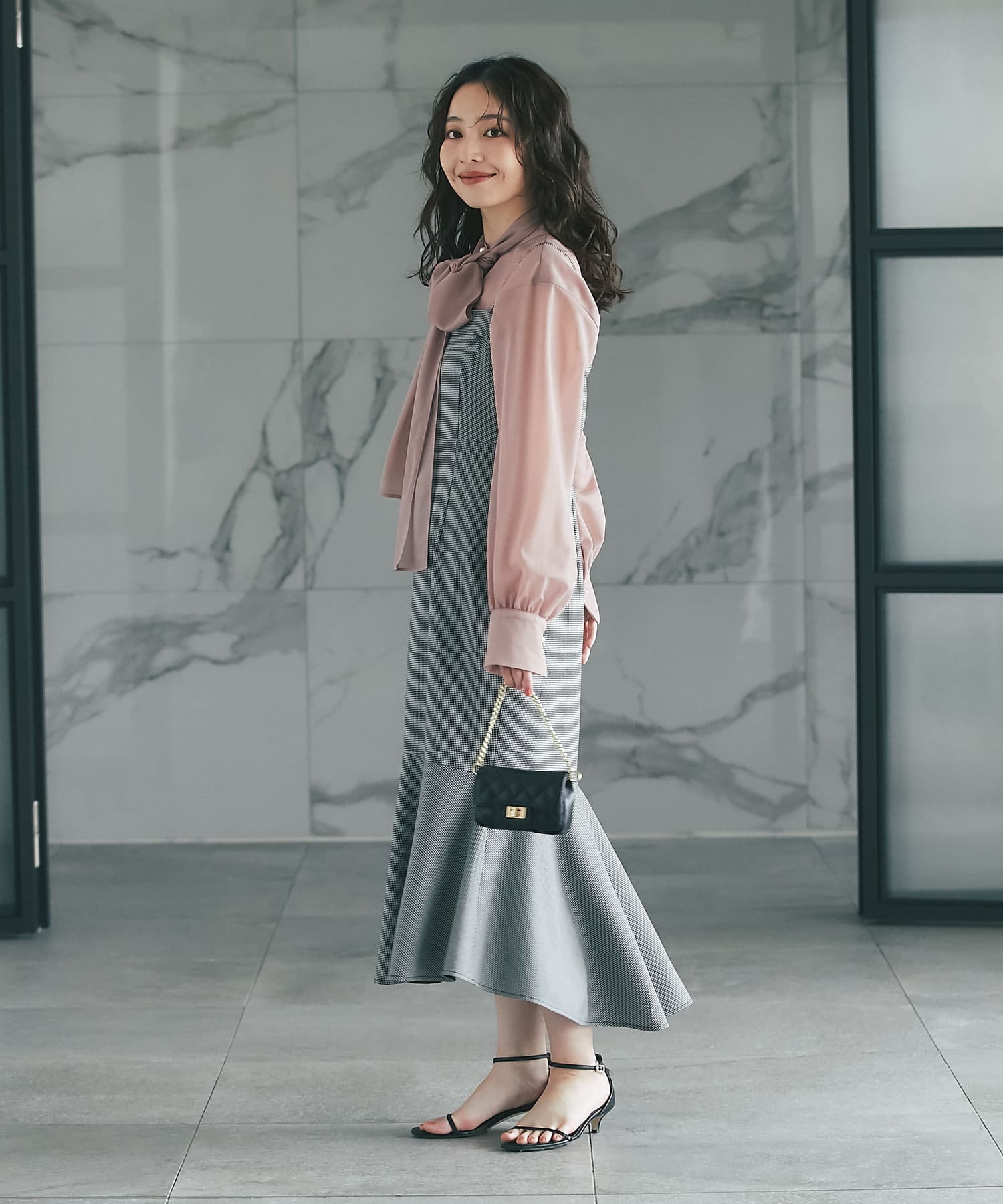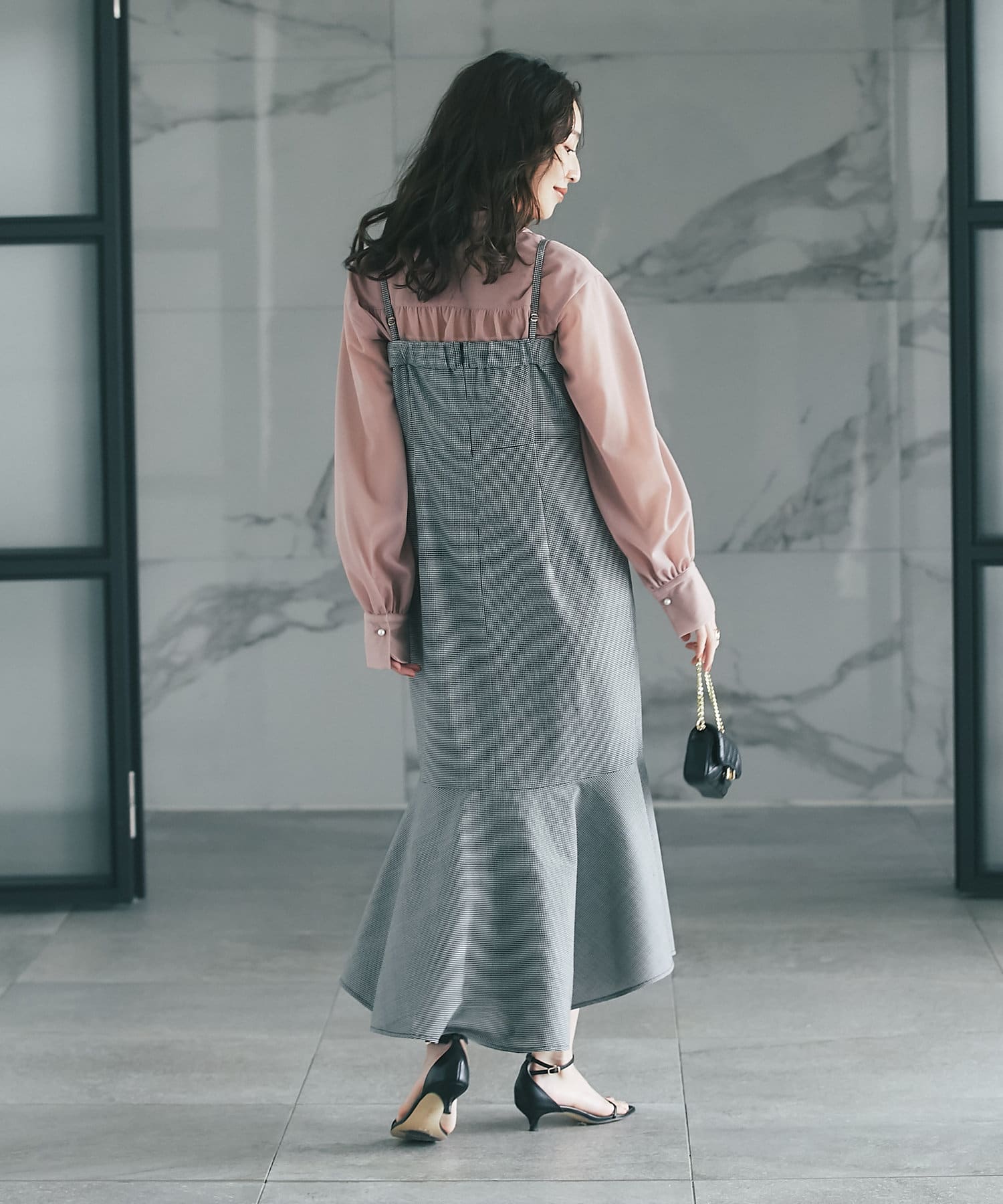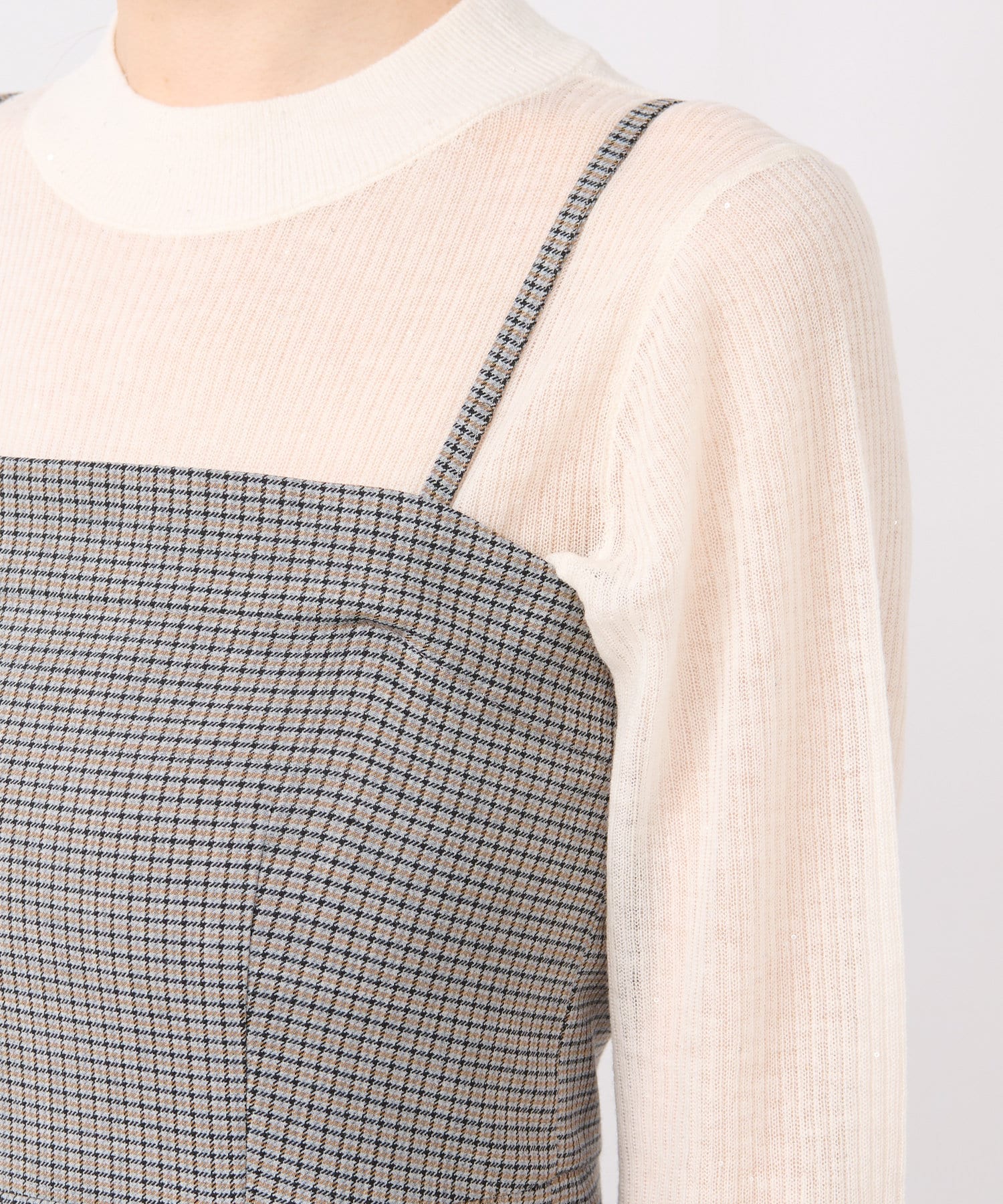 秋のコーディネートにぴったりのチェックが魅力のキャミワンピース。