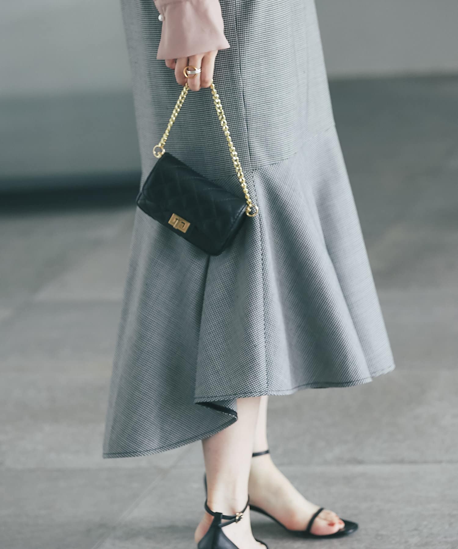 マーメイドの女性らしいシルエットのバックテールで歩くたびにゆれる裾が印象的。
