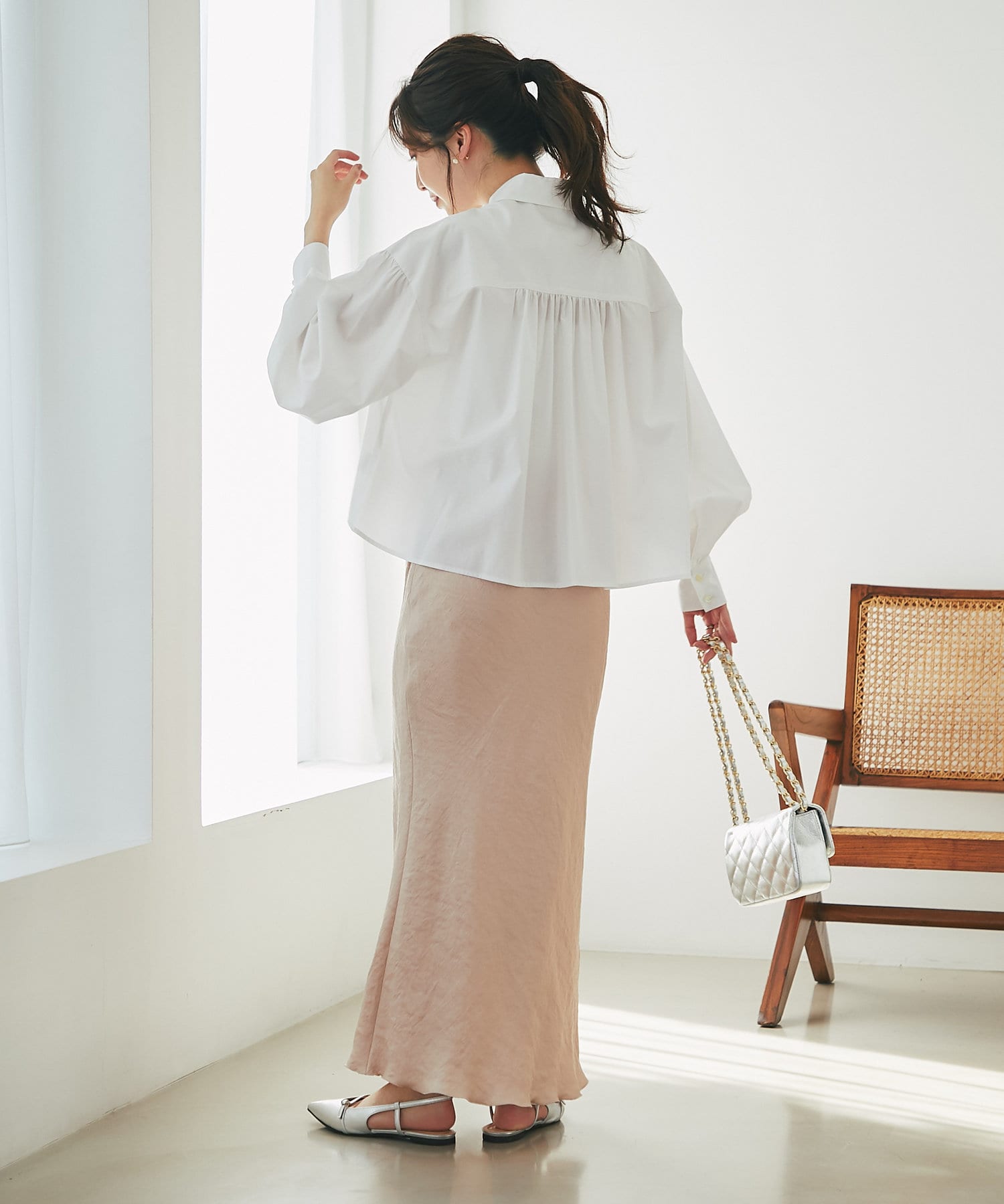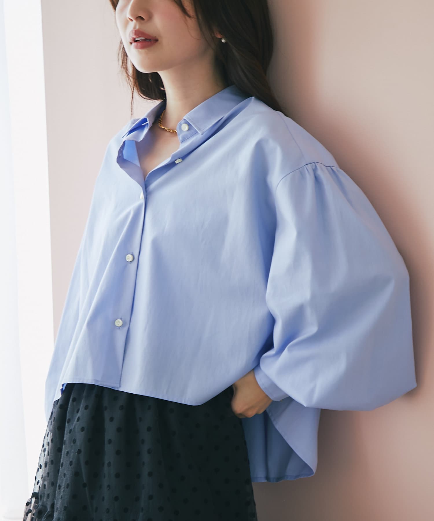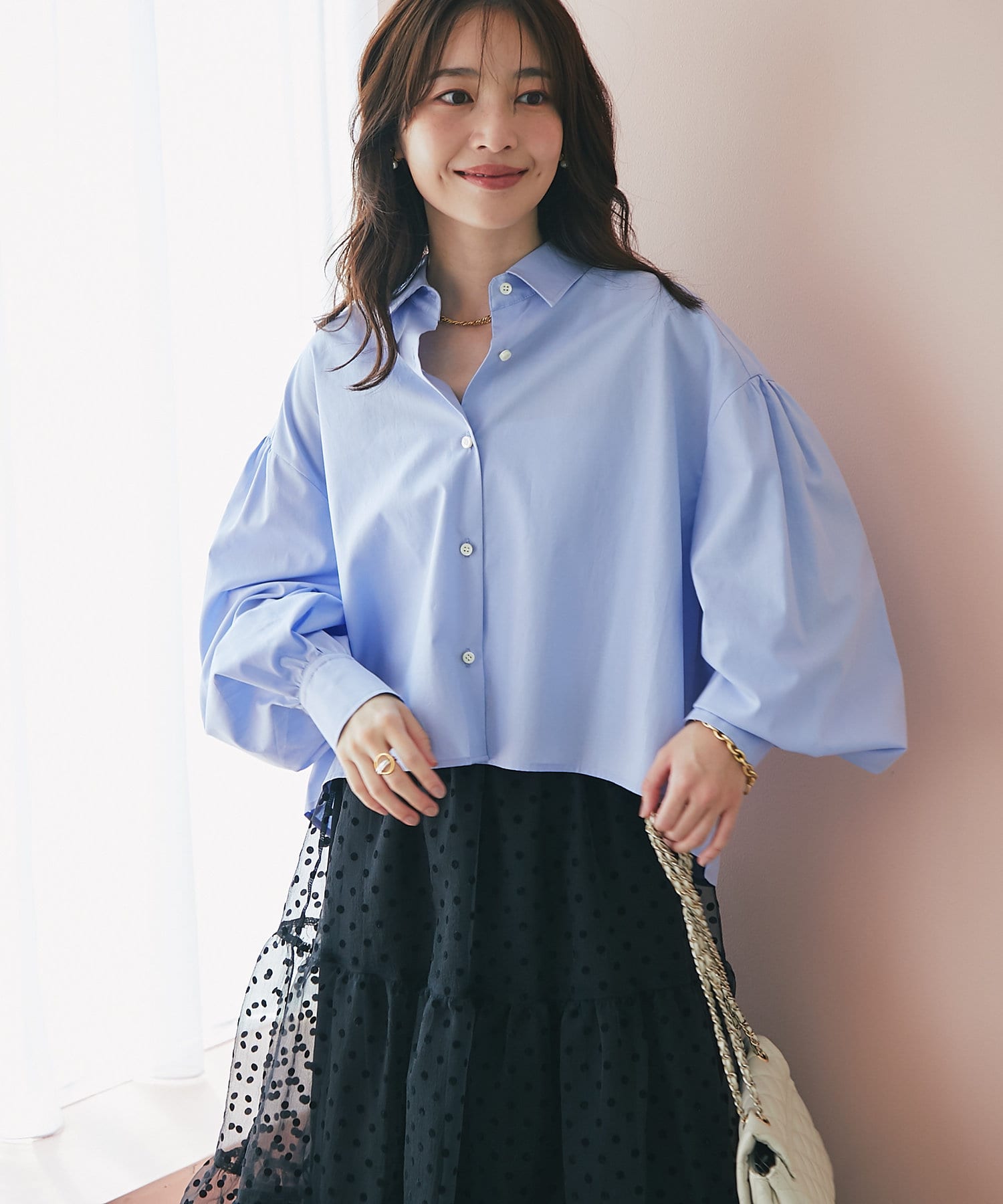 ふんわり袖とクロップド丈の組み合わせでトレンド感のあるシャツ。