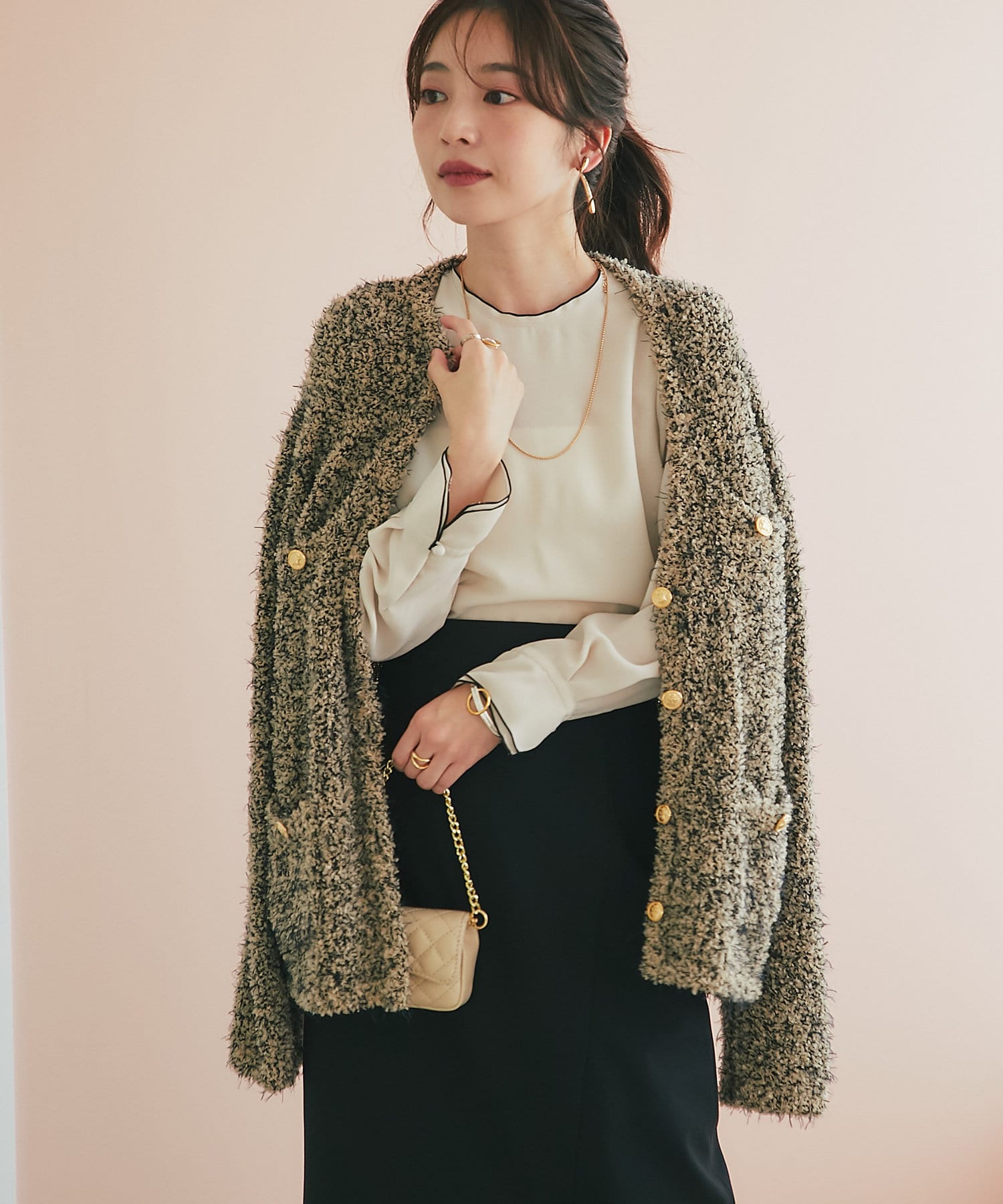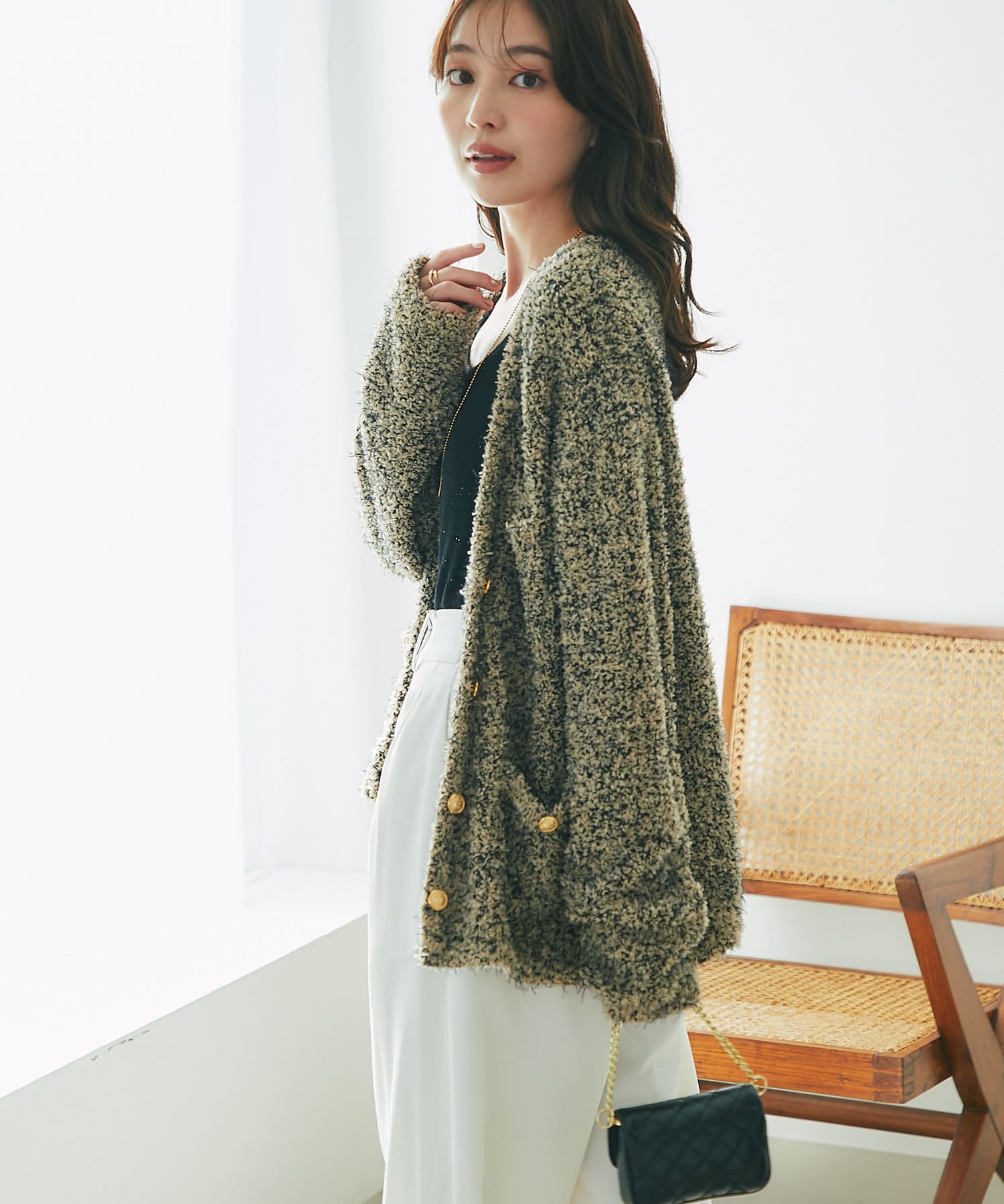 ジャケット感覚で着られるファンシーツイードカーディガン