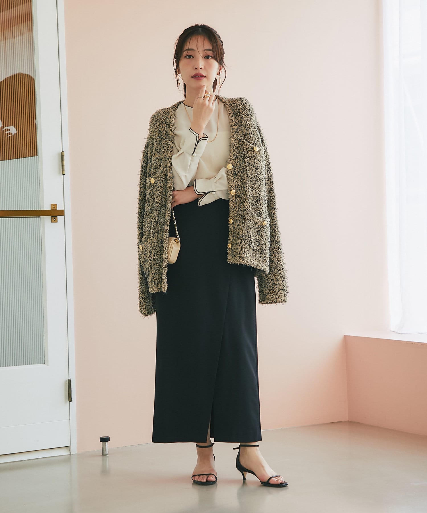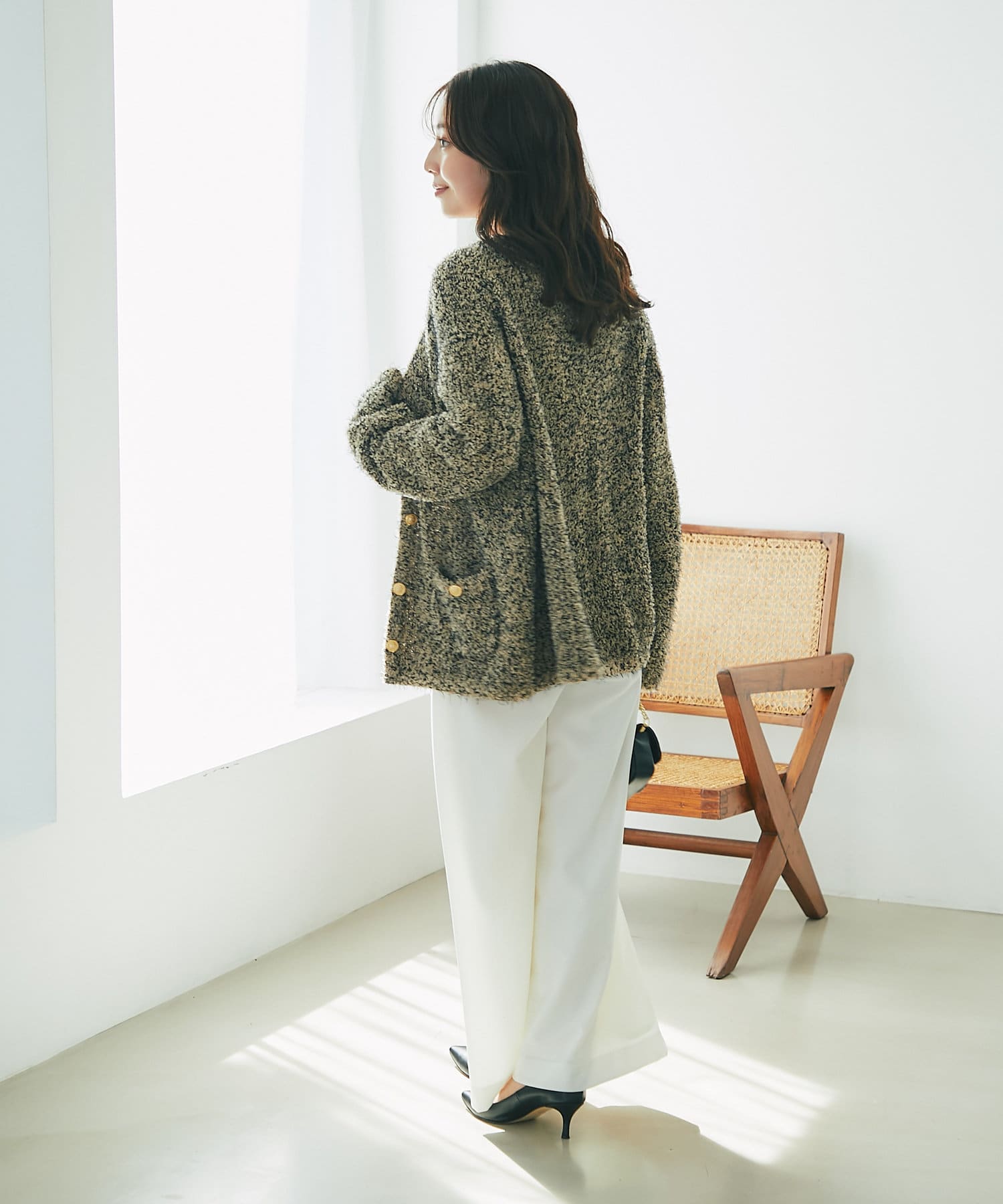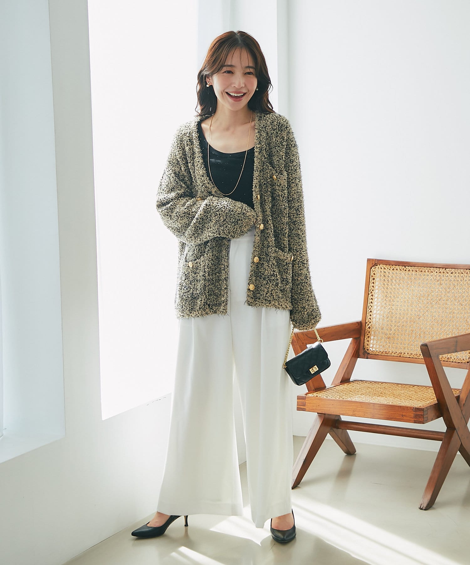 昨年好評だったファンシーツイードニットカーデを着丈を少し短くしてアップデート!