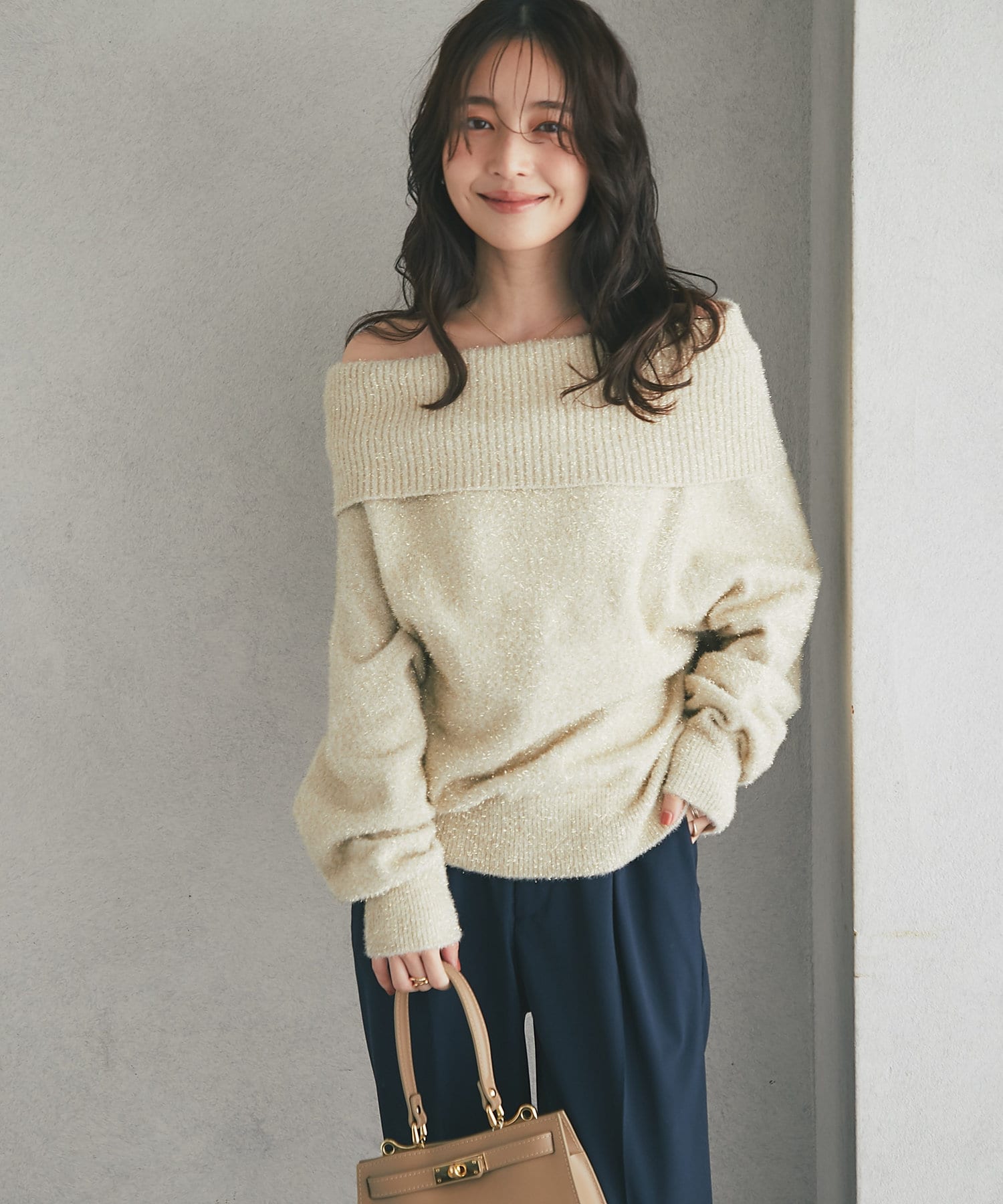 きらきらと輝くラメが存在感を発揮してくれる映えニット。