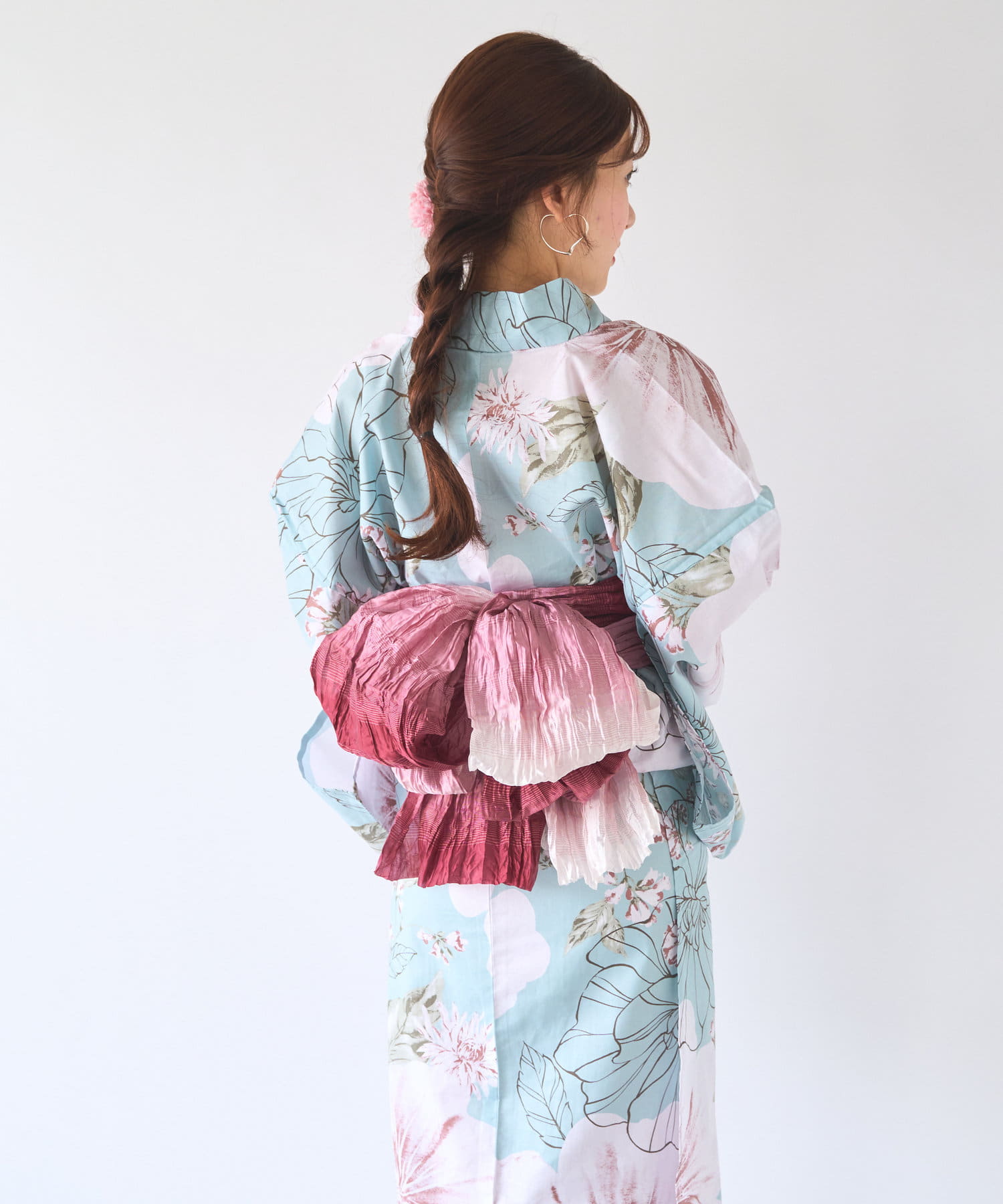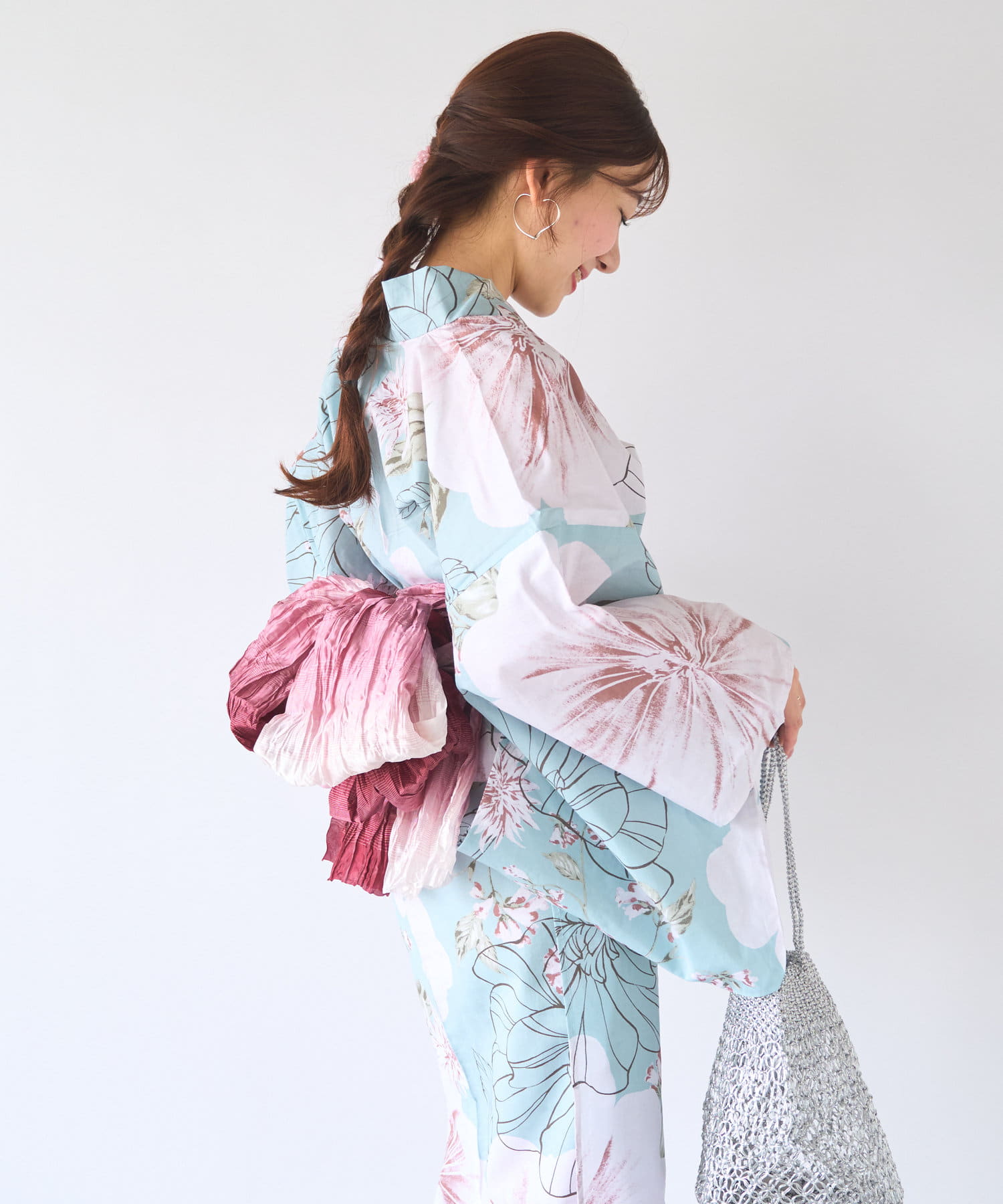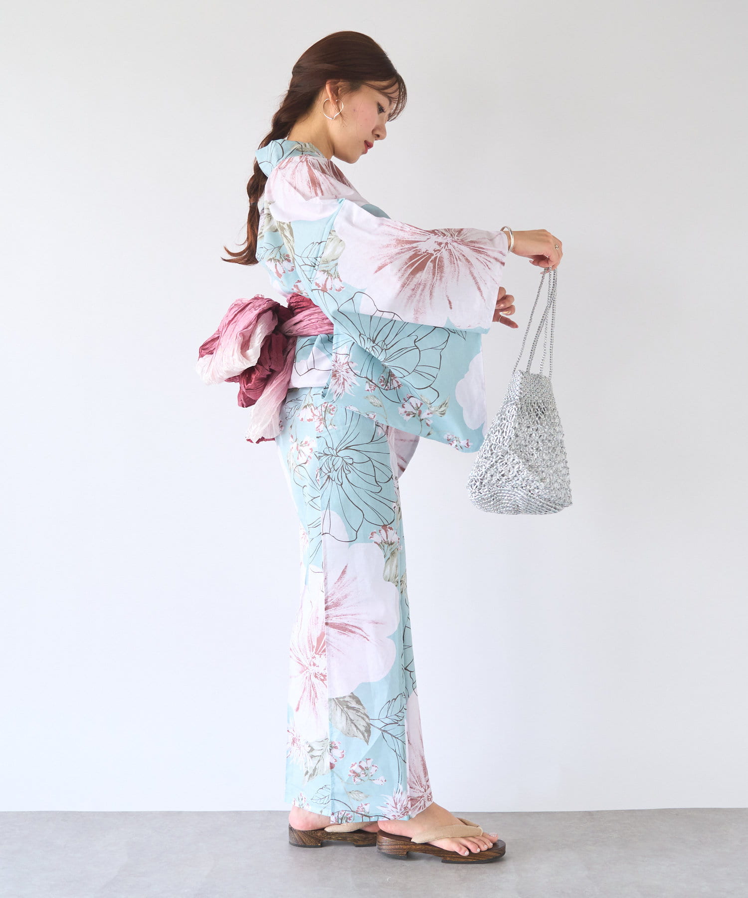 【mikiセレクト】はんなり芙蓉の花重ね/浴衣と帯2点セット