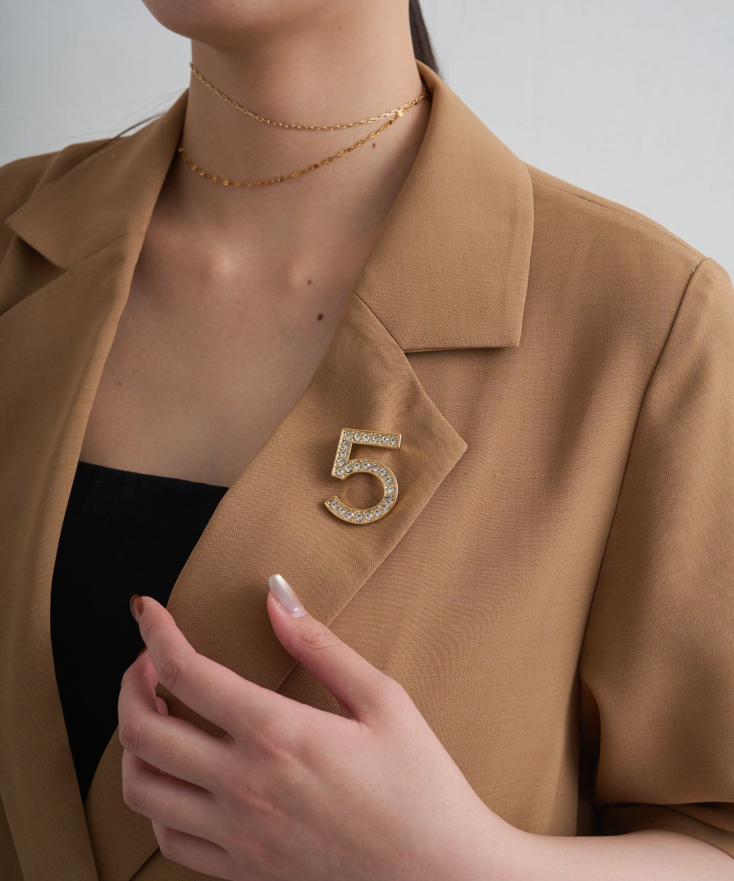 シンプルなニットやジャケット、バッグや帽子など、様々なアイテムに付けるだけで、個性的でエレガントなアクセントに。