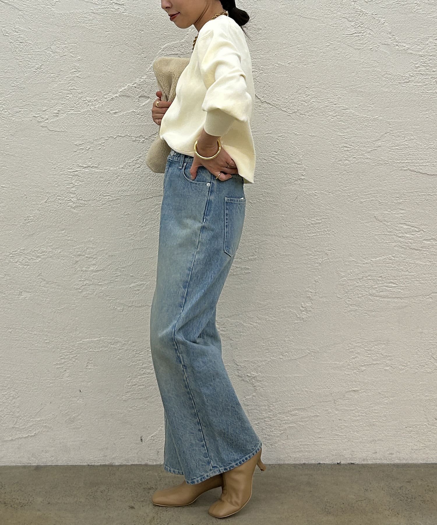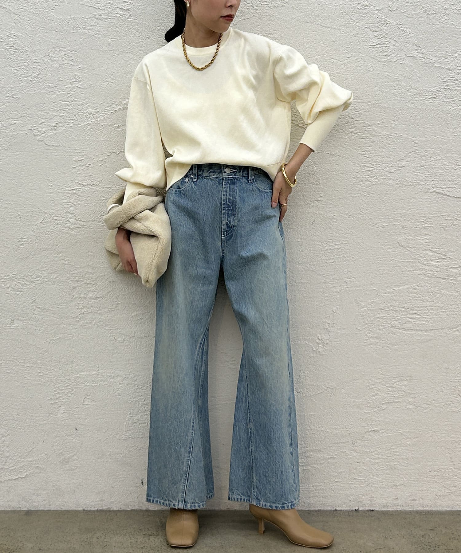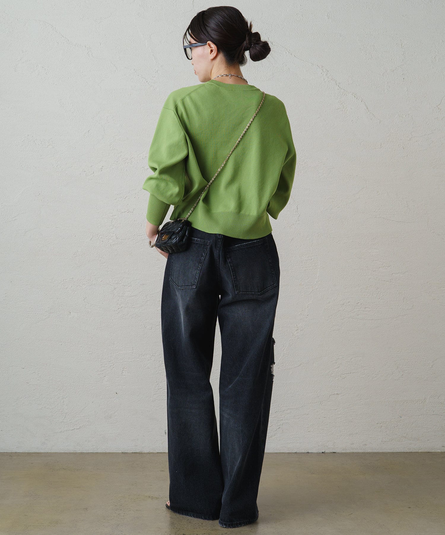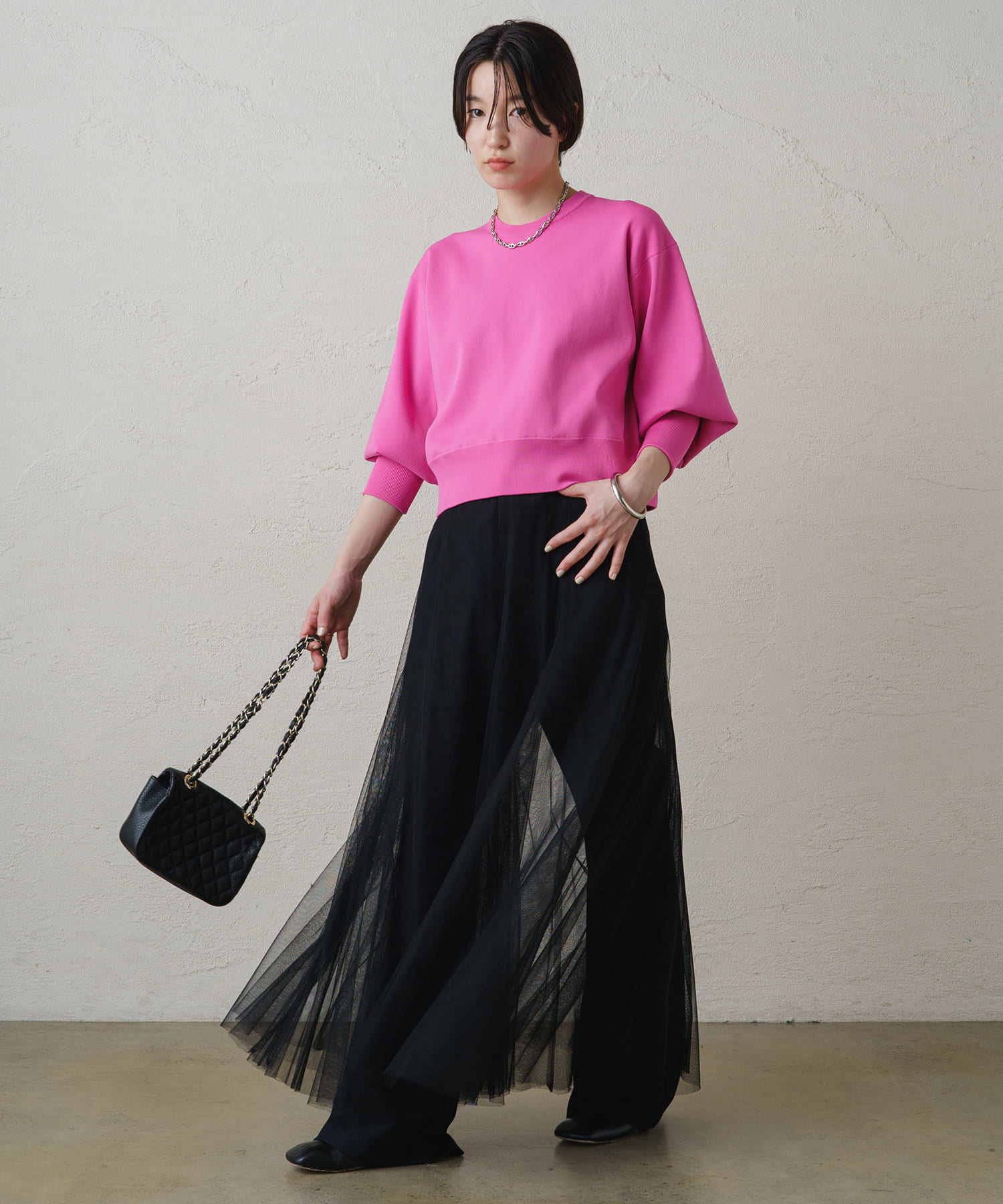 ボリュームのスカートやワイドパンツなどにもバランスよく、ウエスト位置が高くなるのでスタイルアップも叶います。