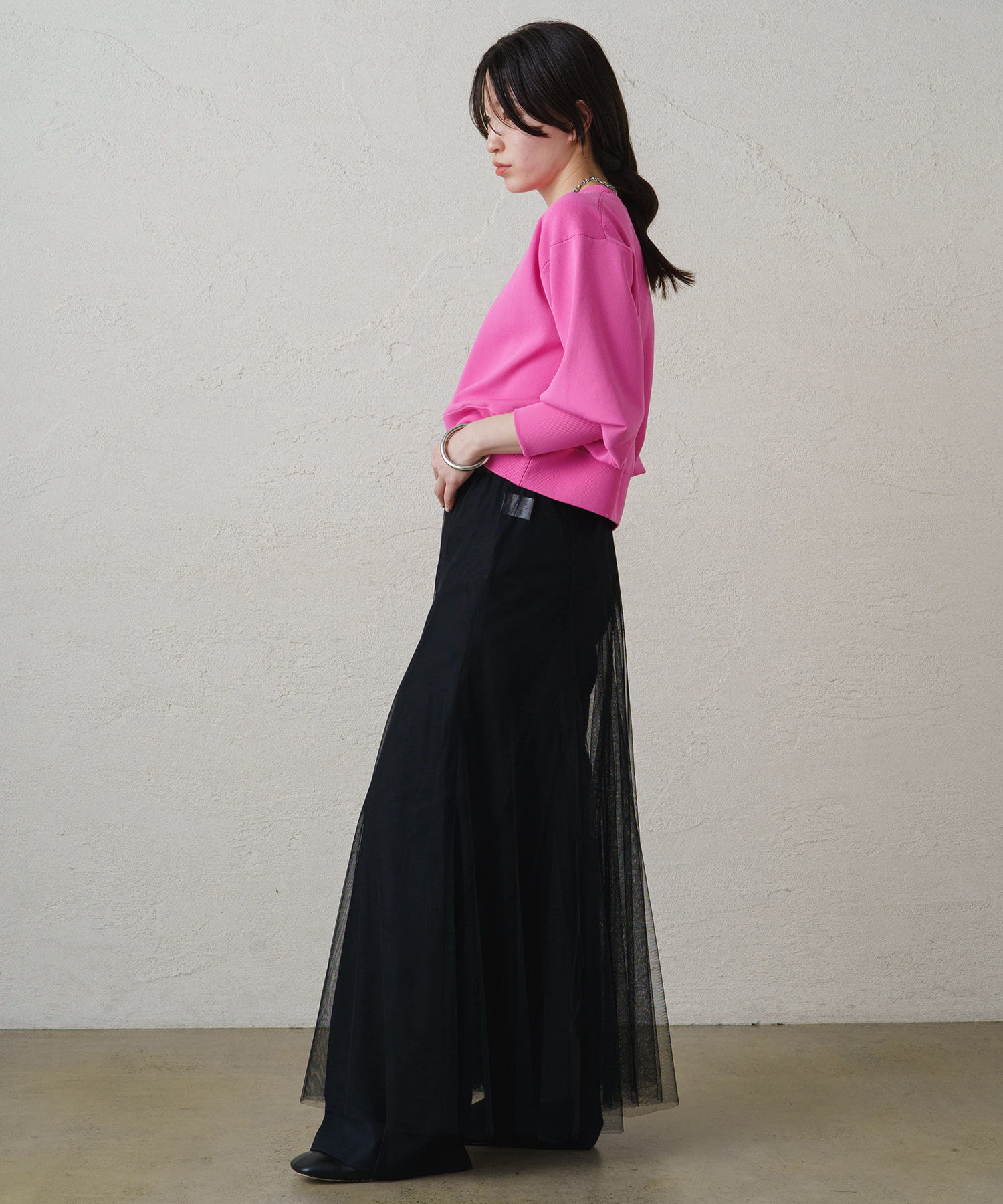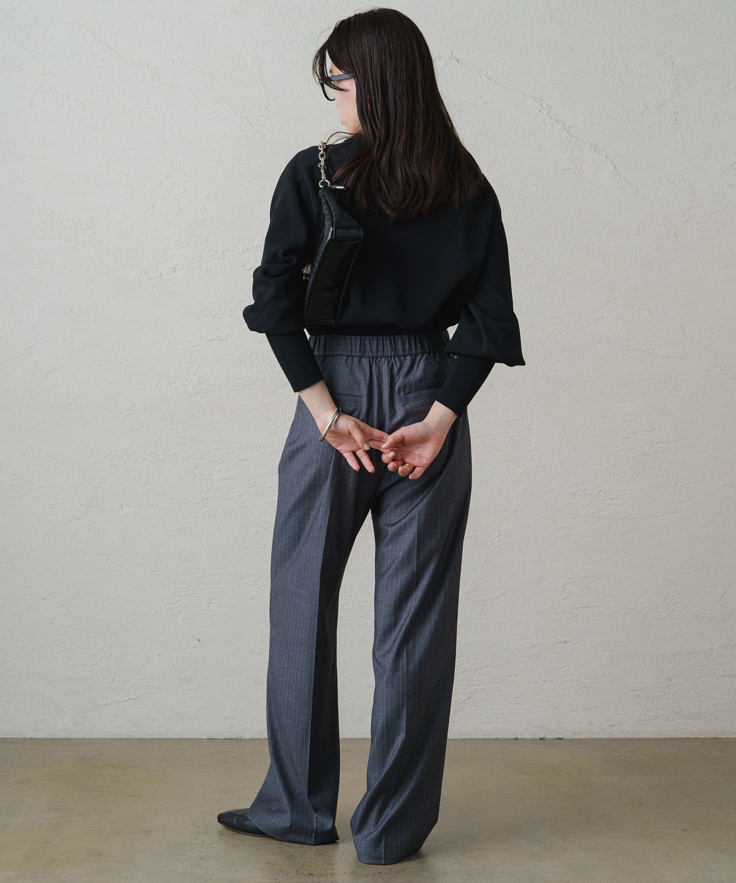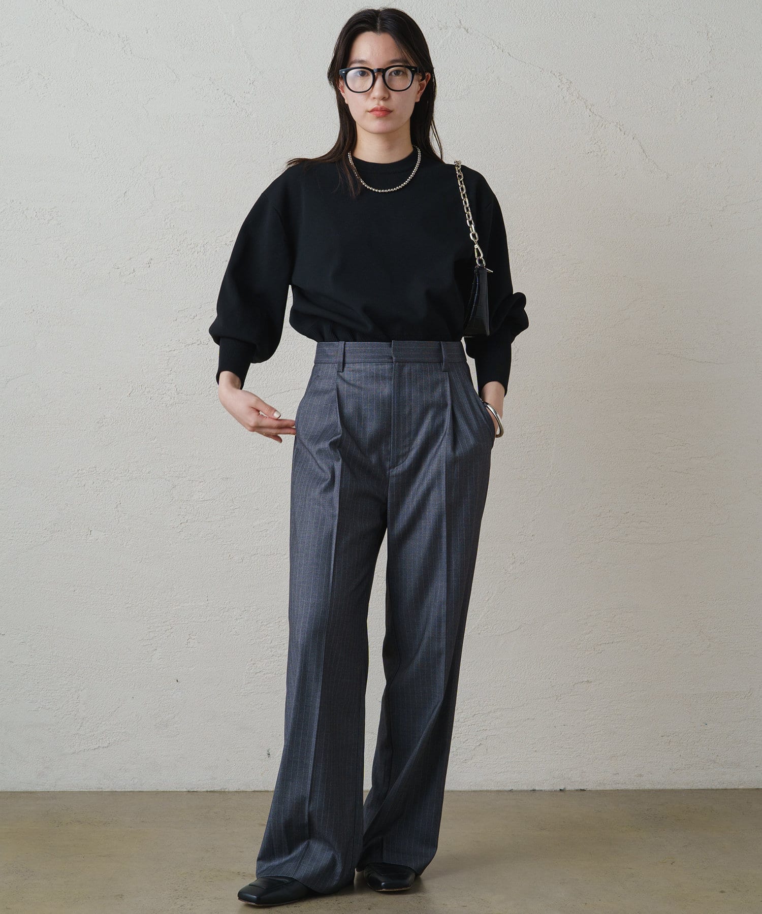 ボリュームのスカートやワイドパンツなどにもバランスよく、ウエスト位置が高くなるのでスタイルアップも叶います。