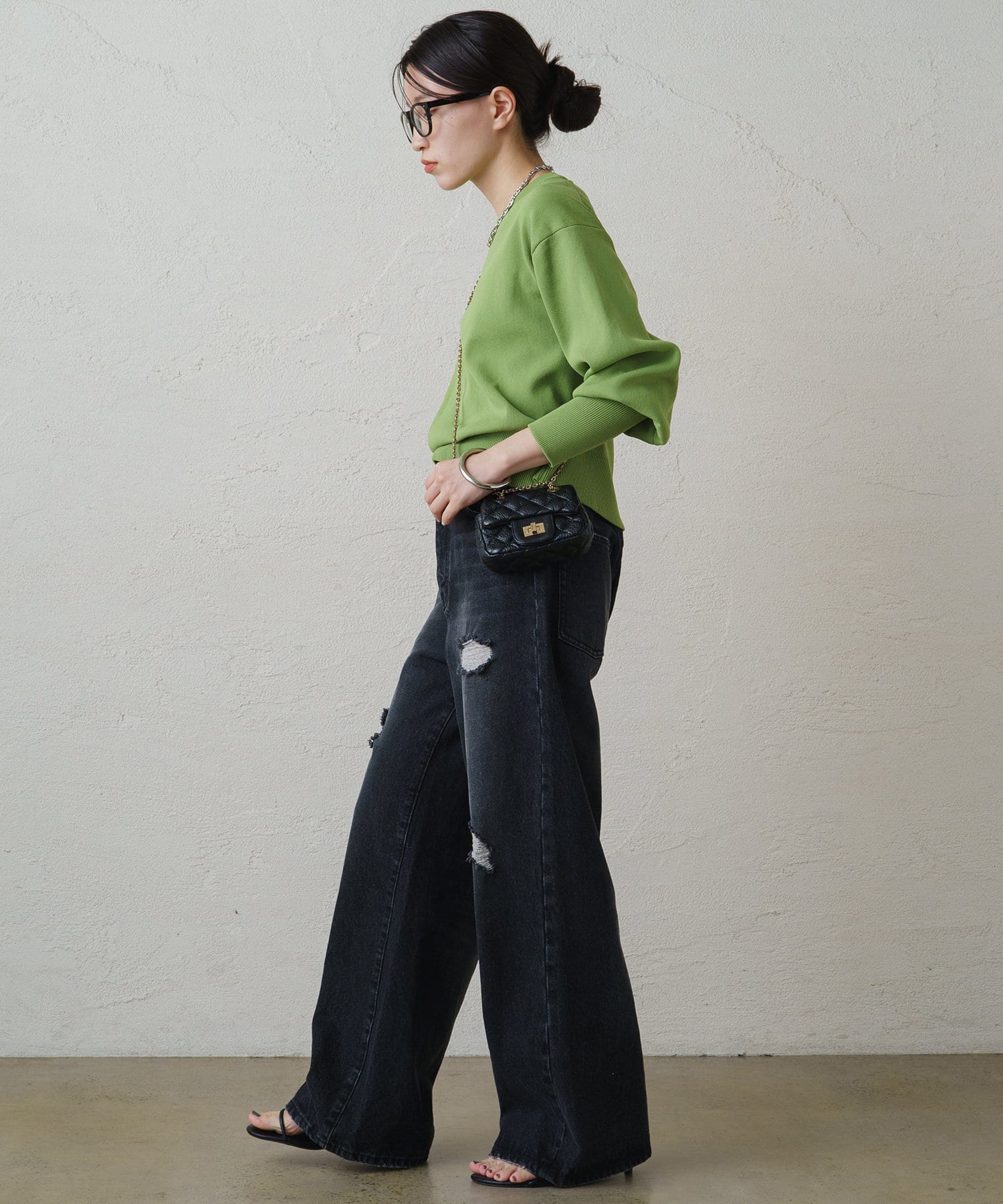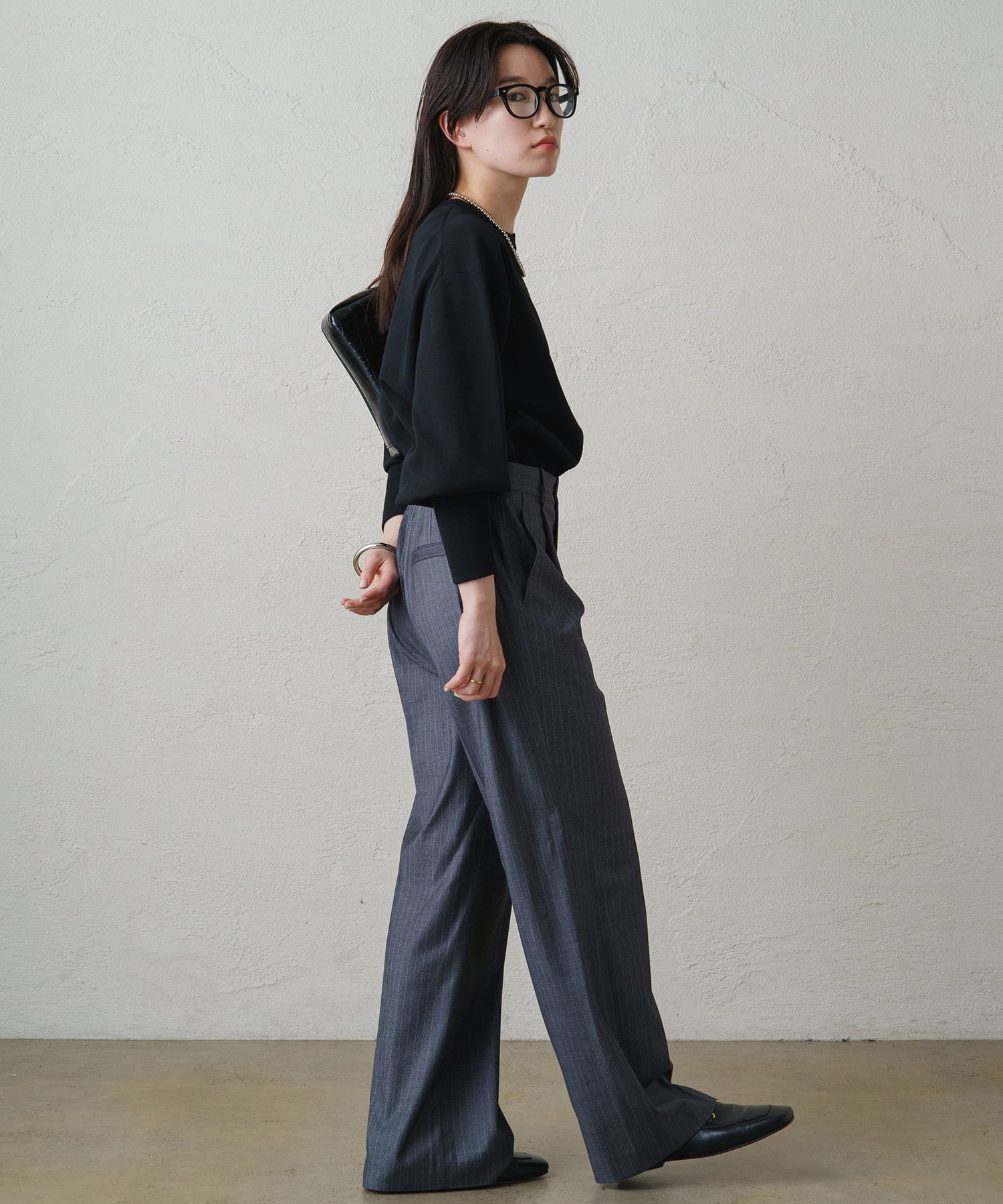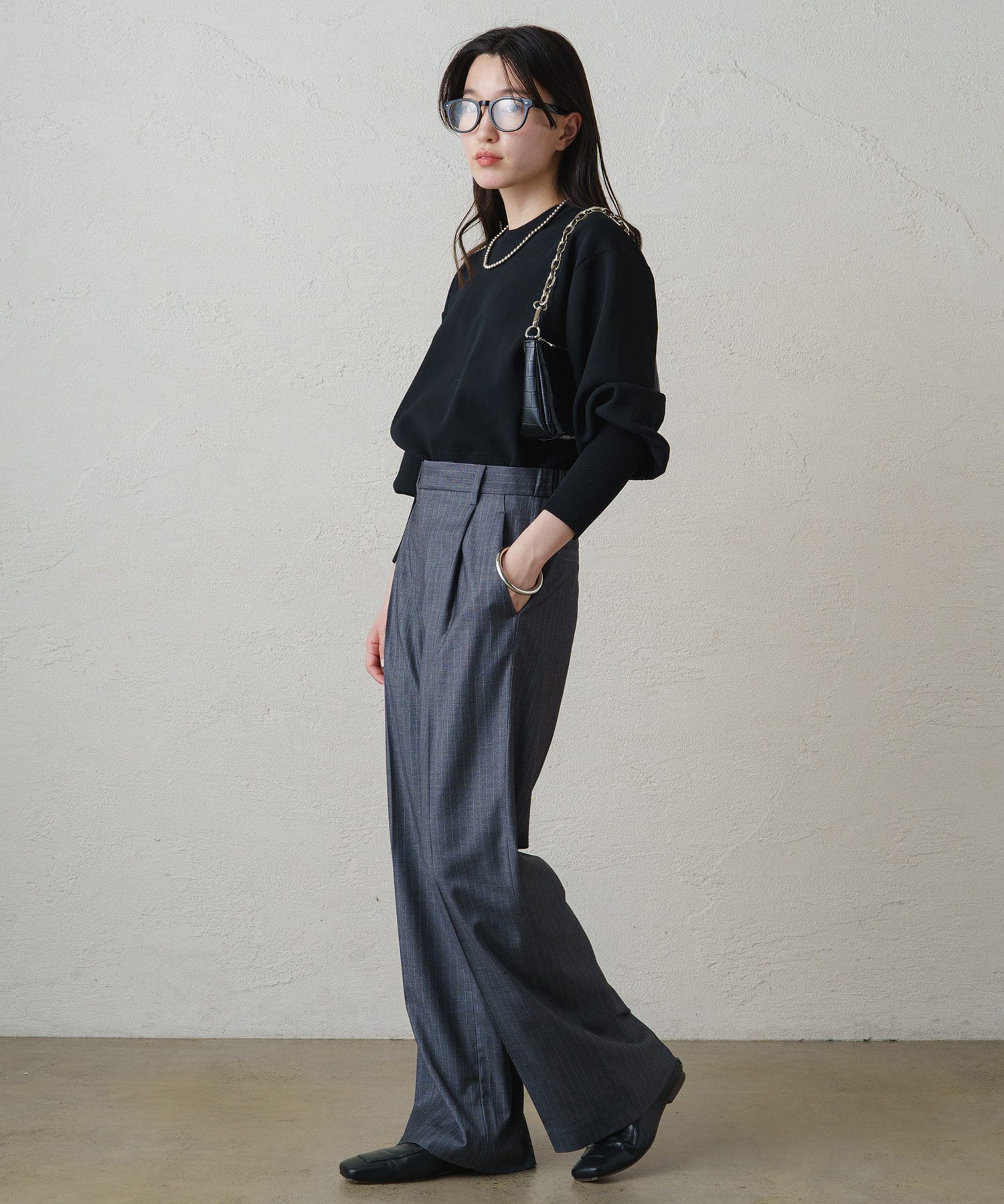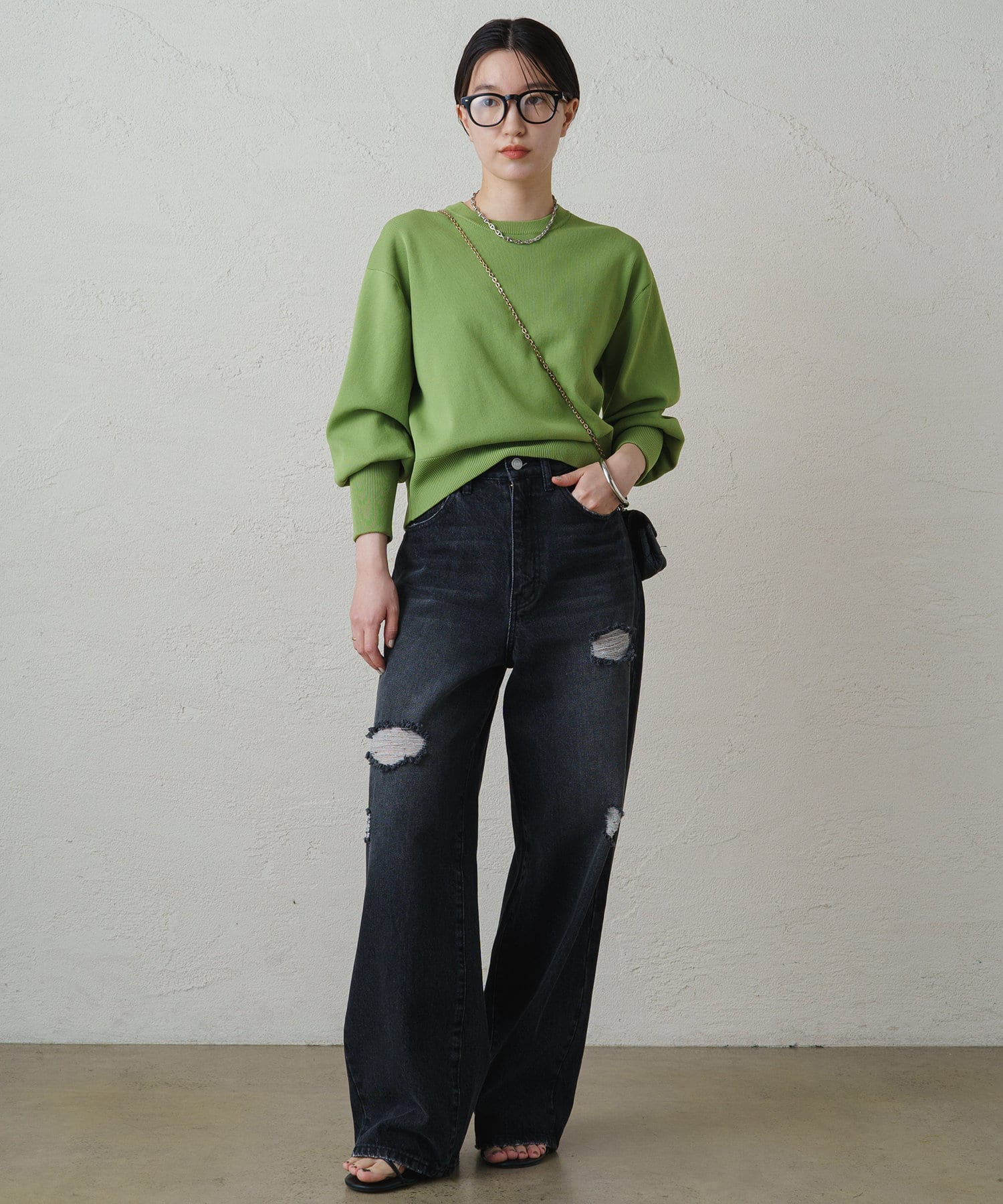 ボリュームのスカートやワイドパンツなどにもバランスよく、ウエスト位置が高くなるのでスタイルアップも叶います。