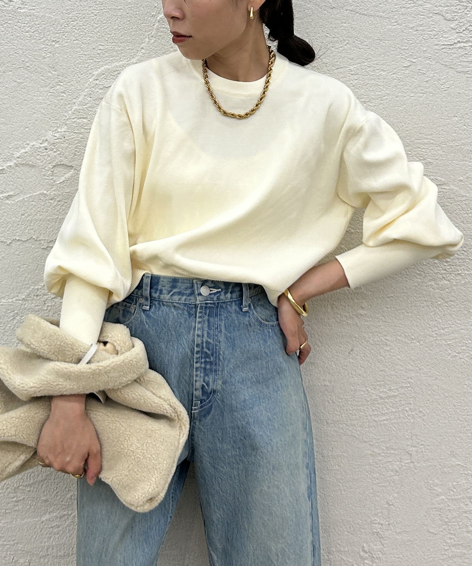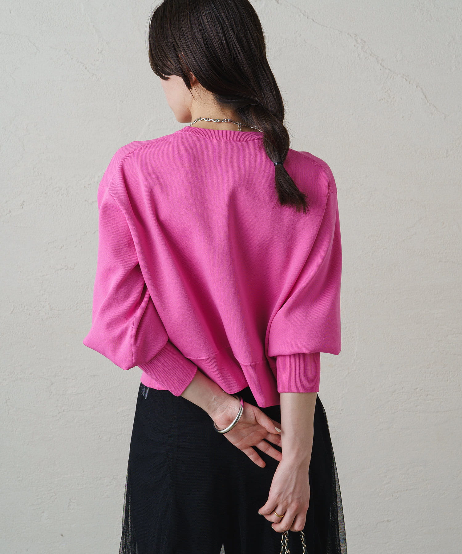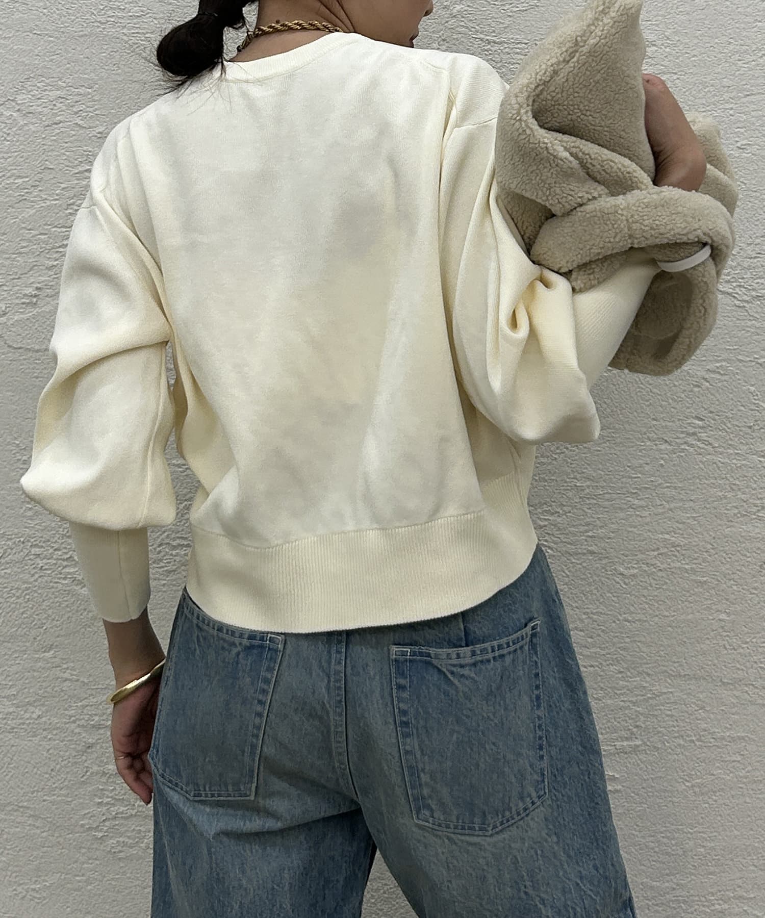 パフスリーブのデザインですが、コンパクトですっきりしているので上からジャケットを羽織ったスタイリングもおすすめ。