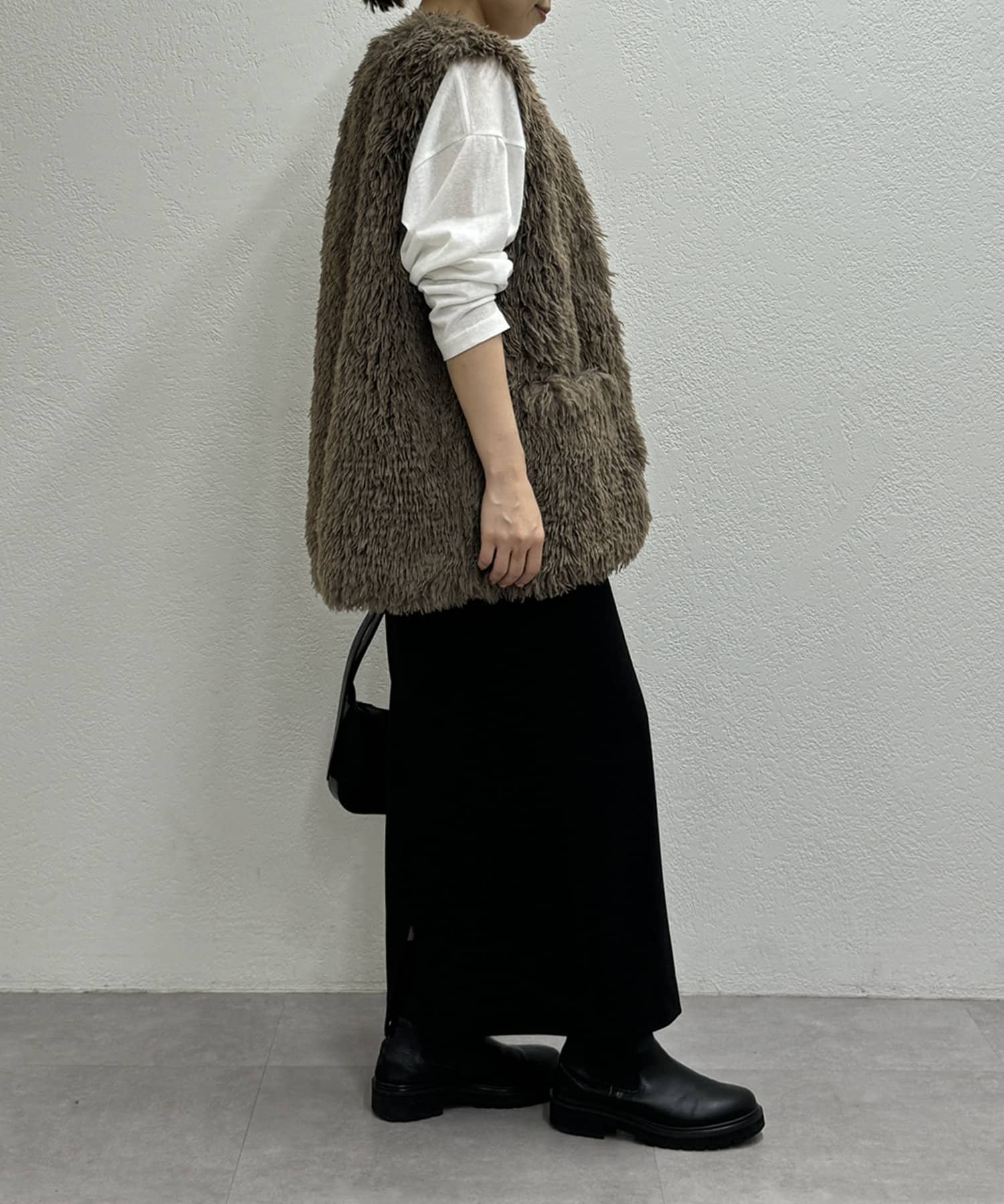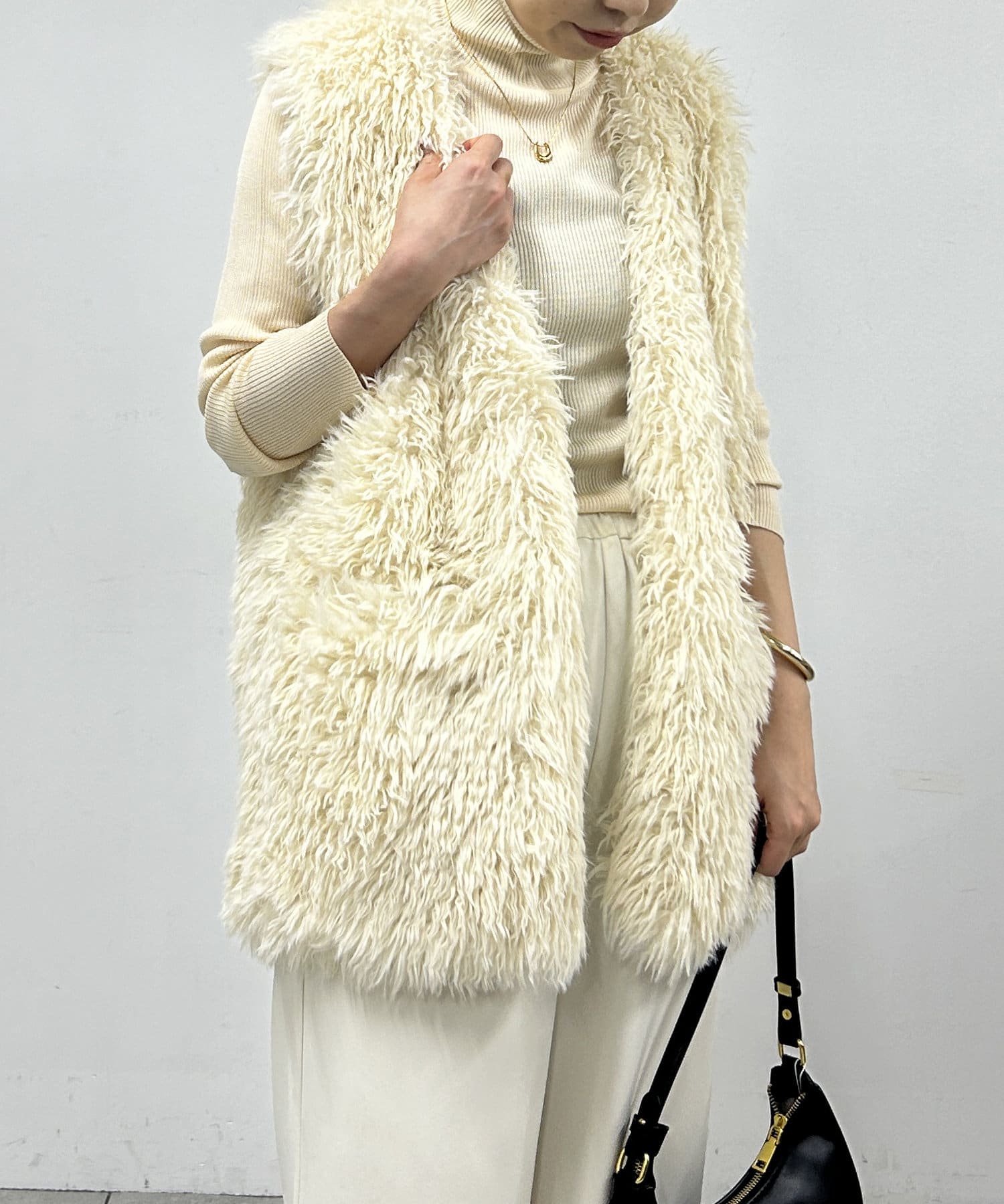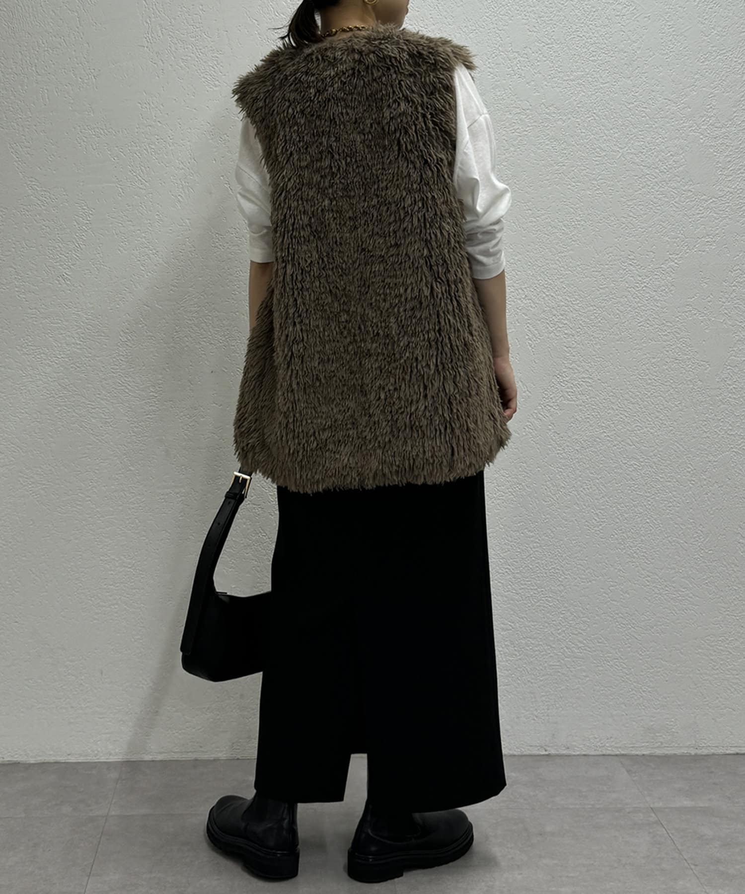 秋冬のレイヤードスタイルには欠かせないファーベスト。