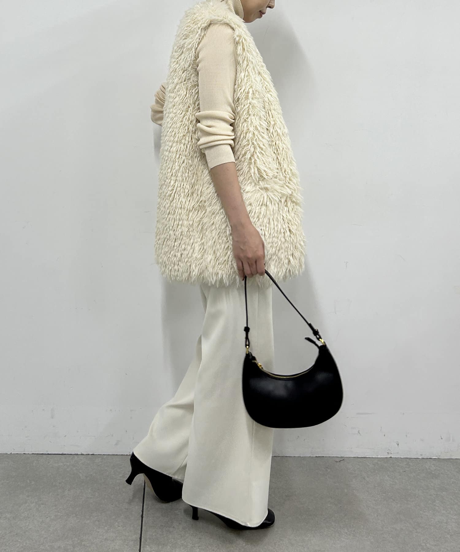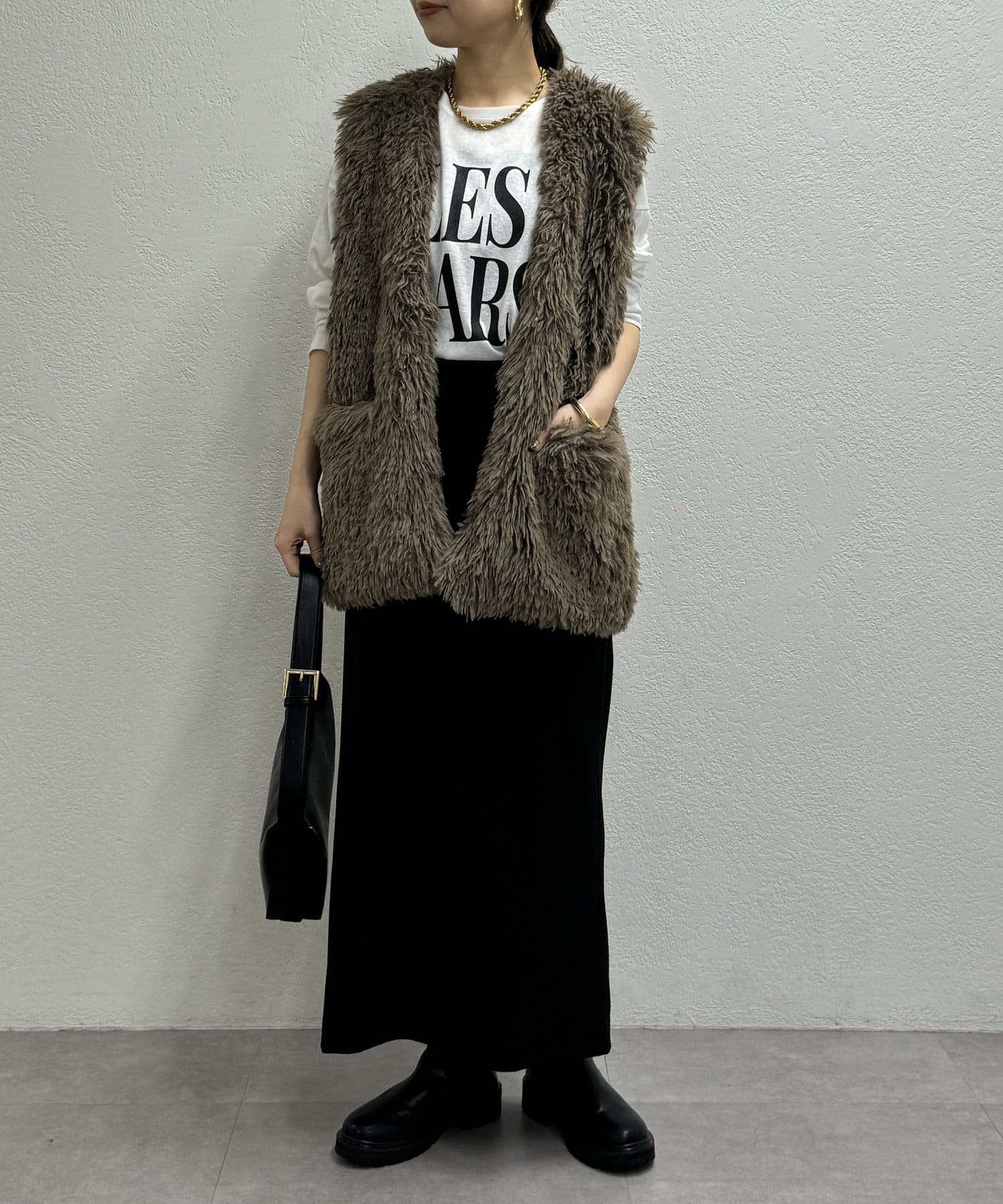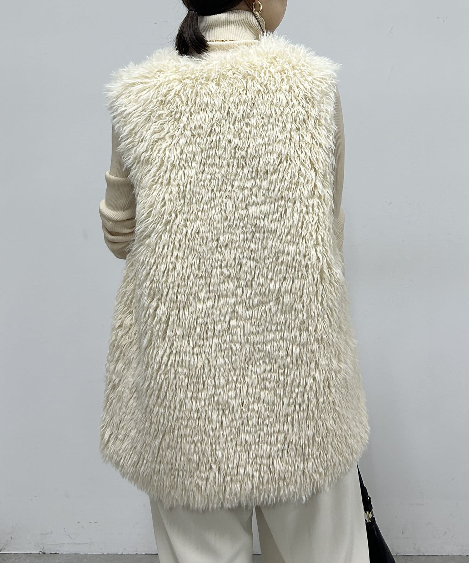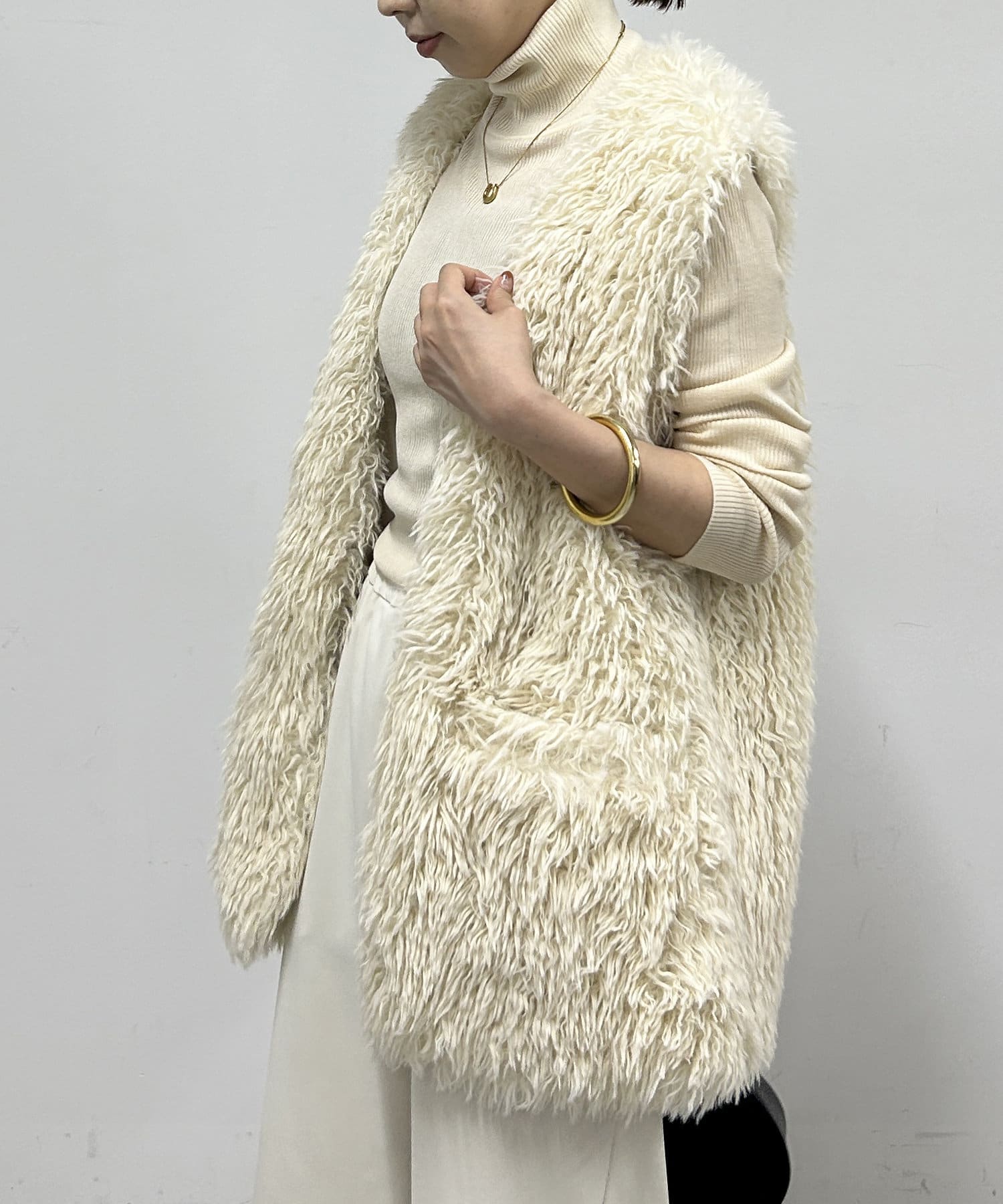 秋冬のレイヤードスタイルには欠かせないファーベスト。