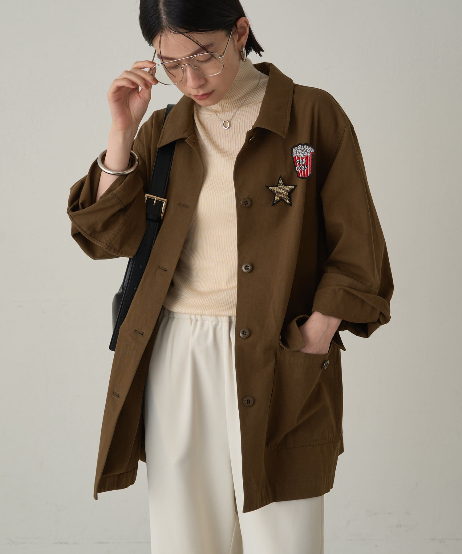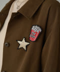 ハンサムなミリタリーシャツに遊び心のあるピンバッジをプラス!