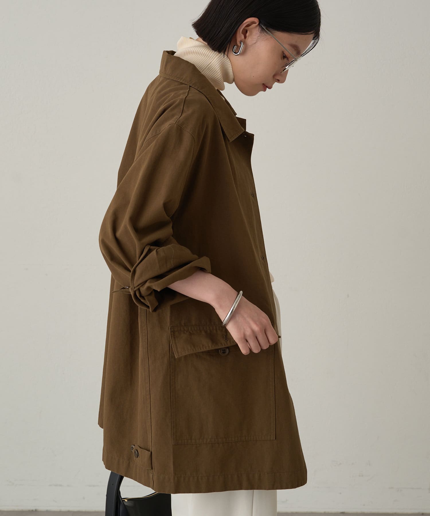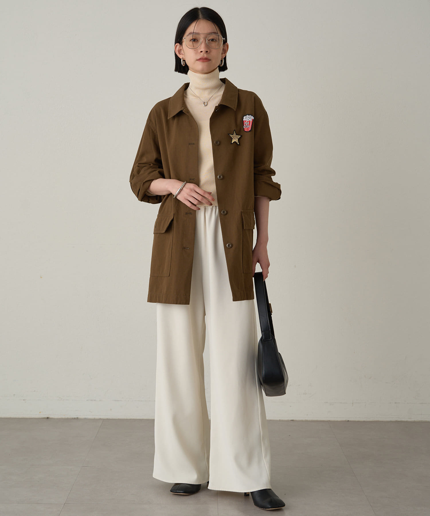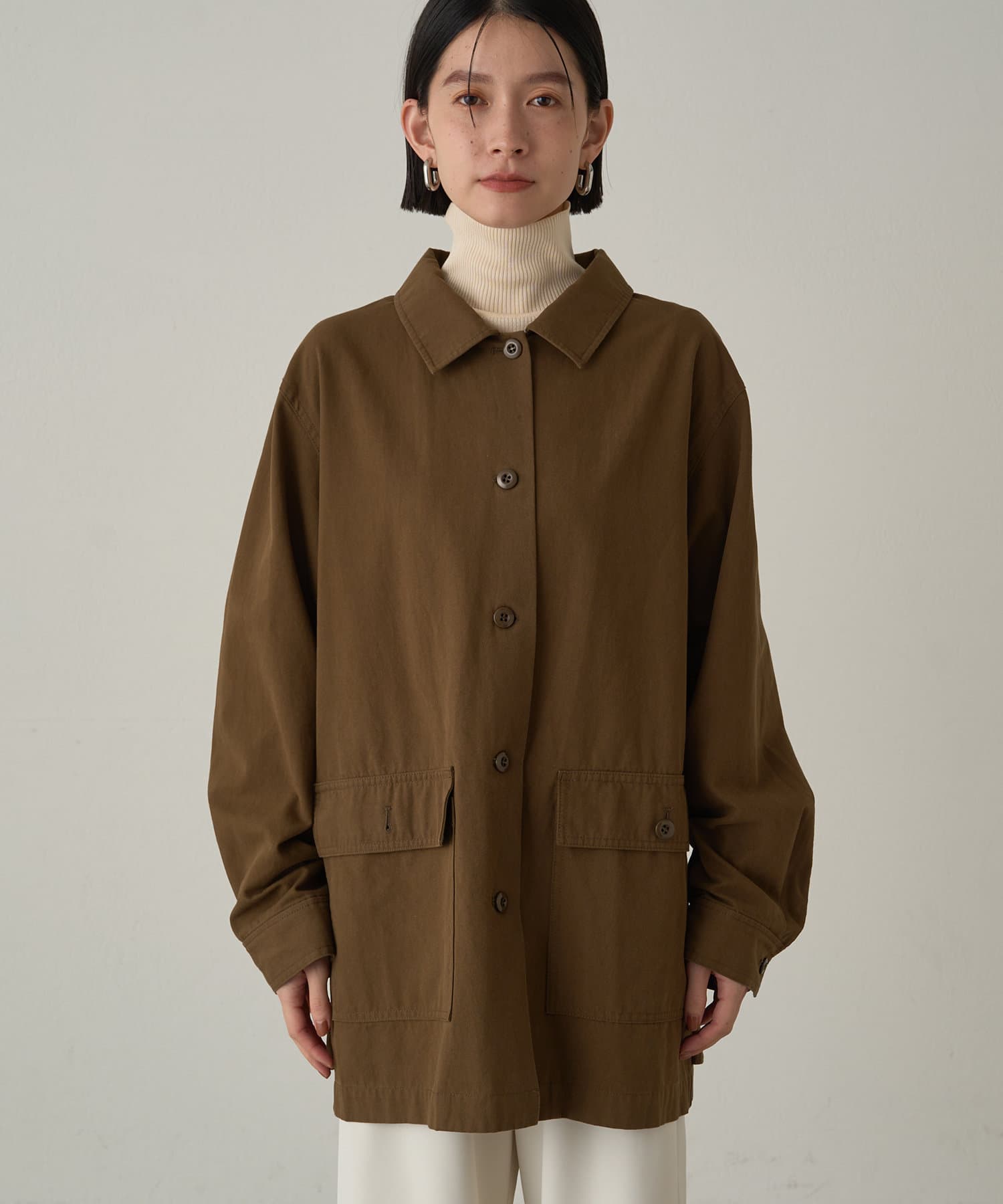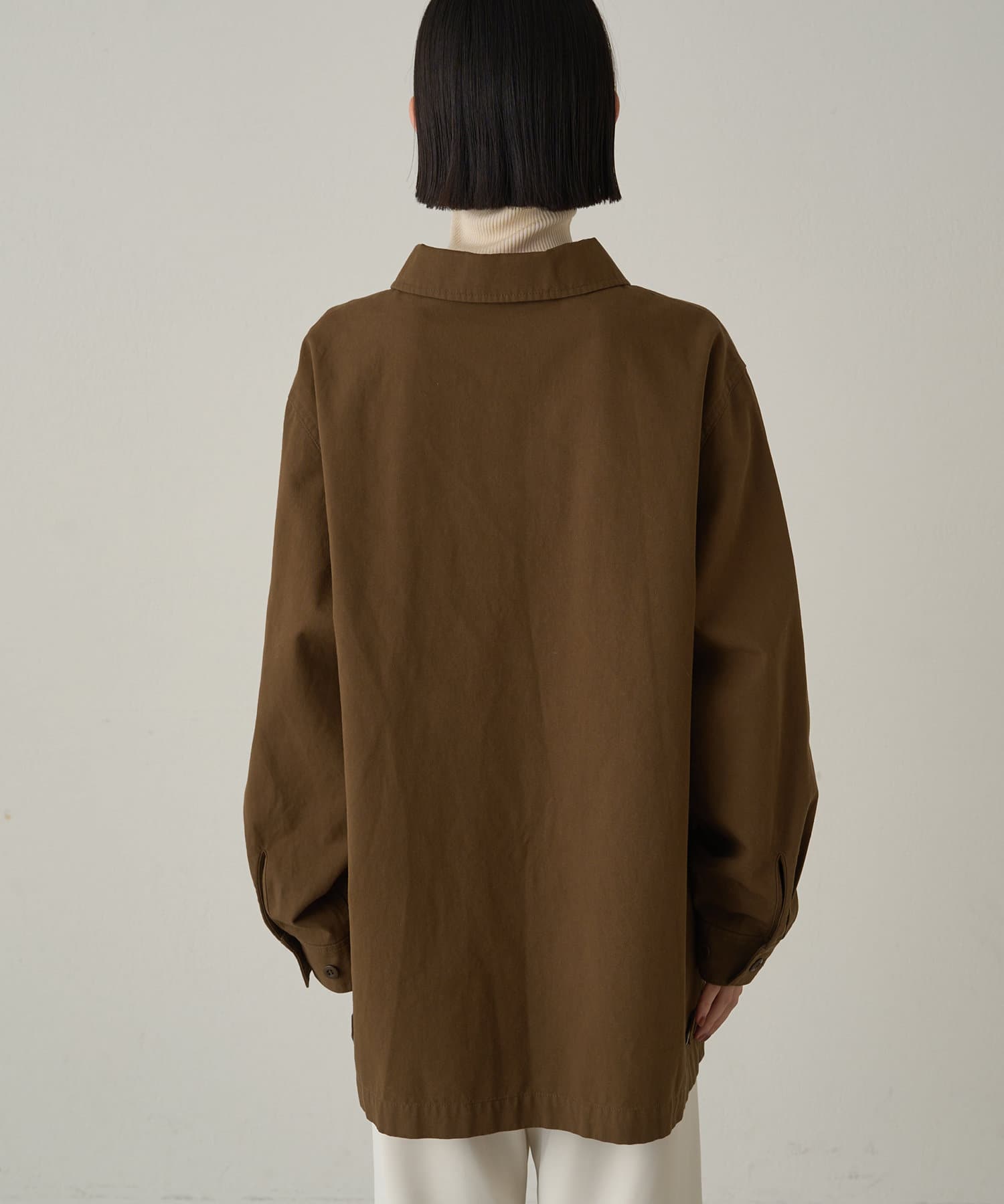 ボックスシルエットのミリタリーシャツ。