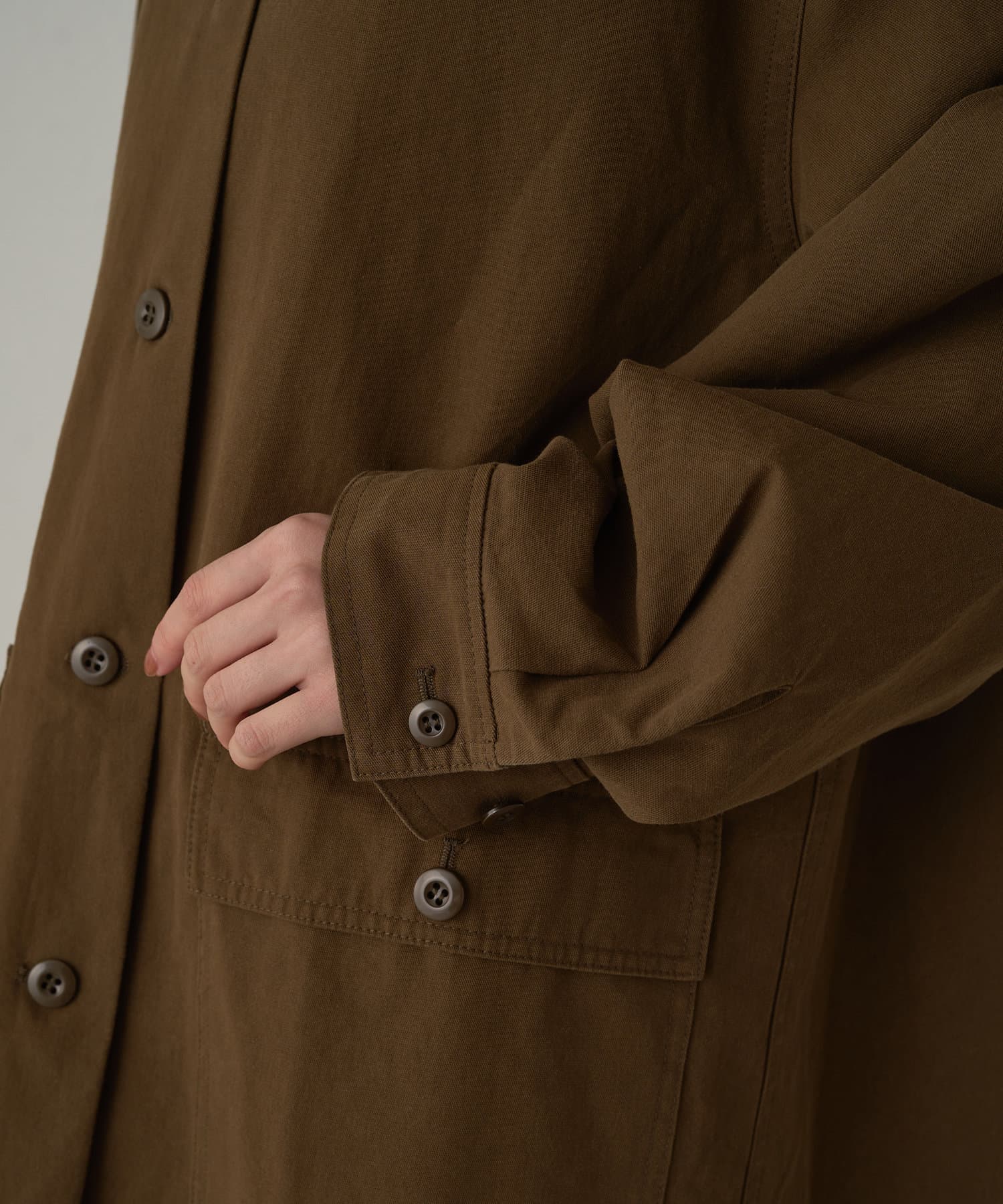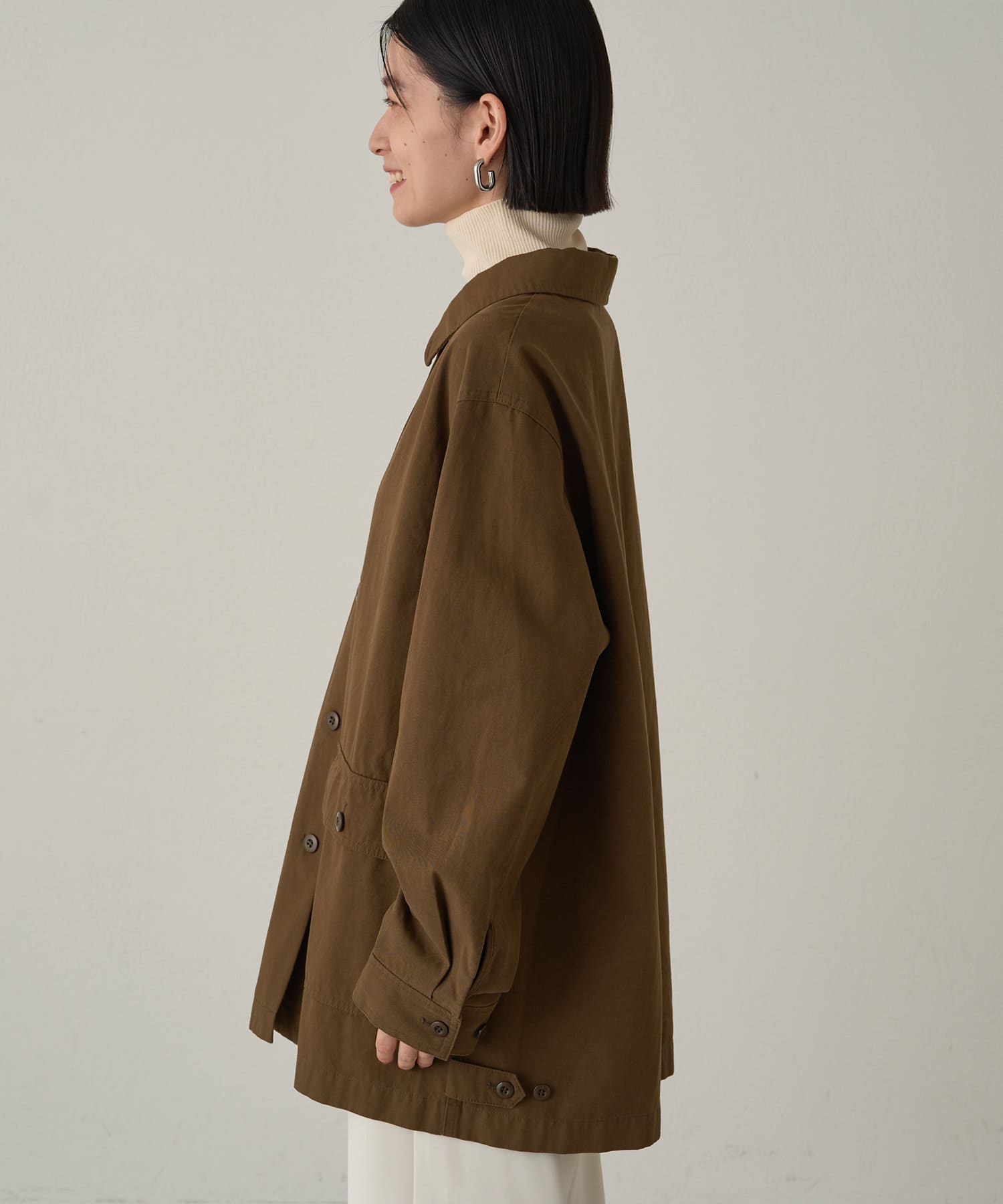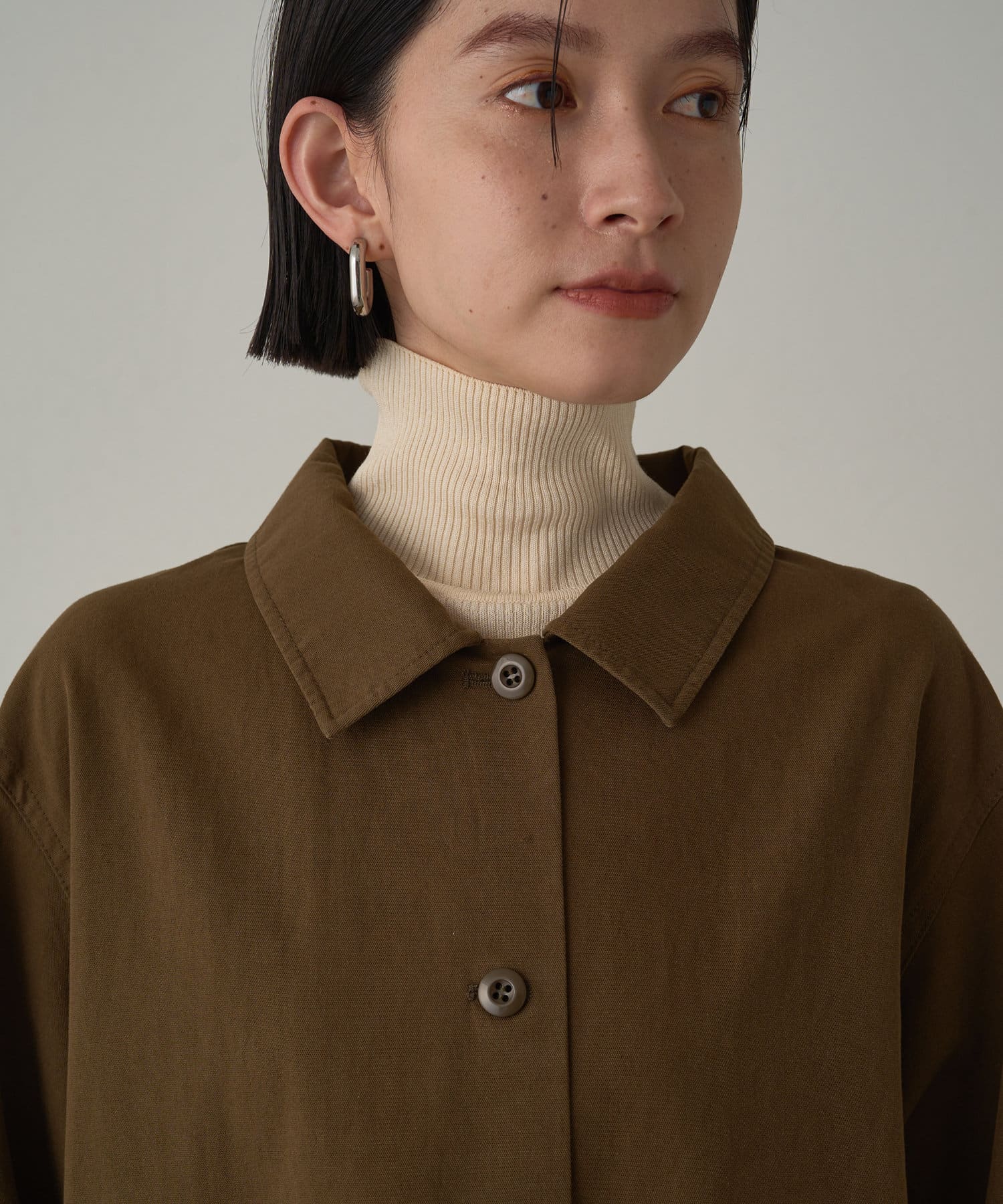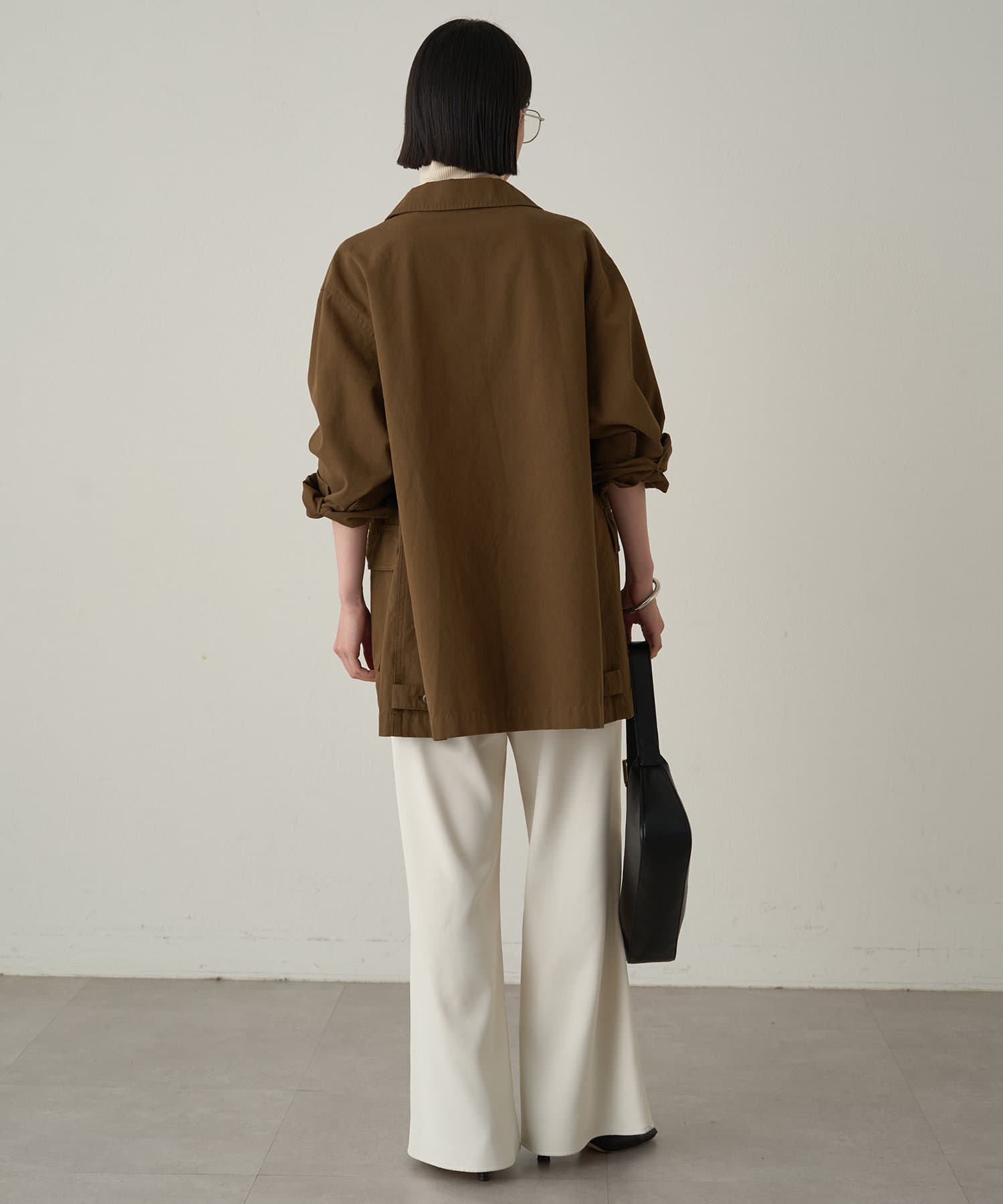 ボックスシルエットのミリタリーシャツ。