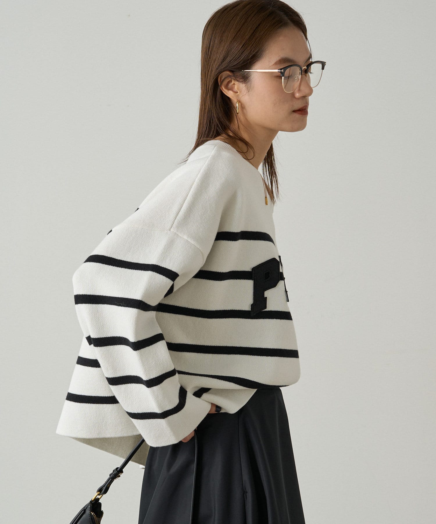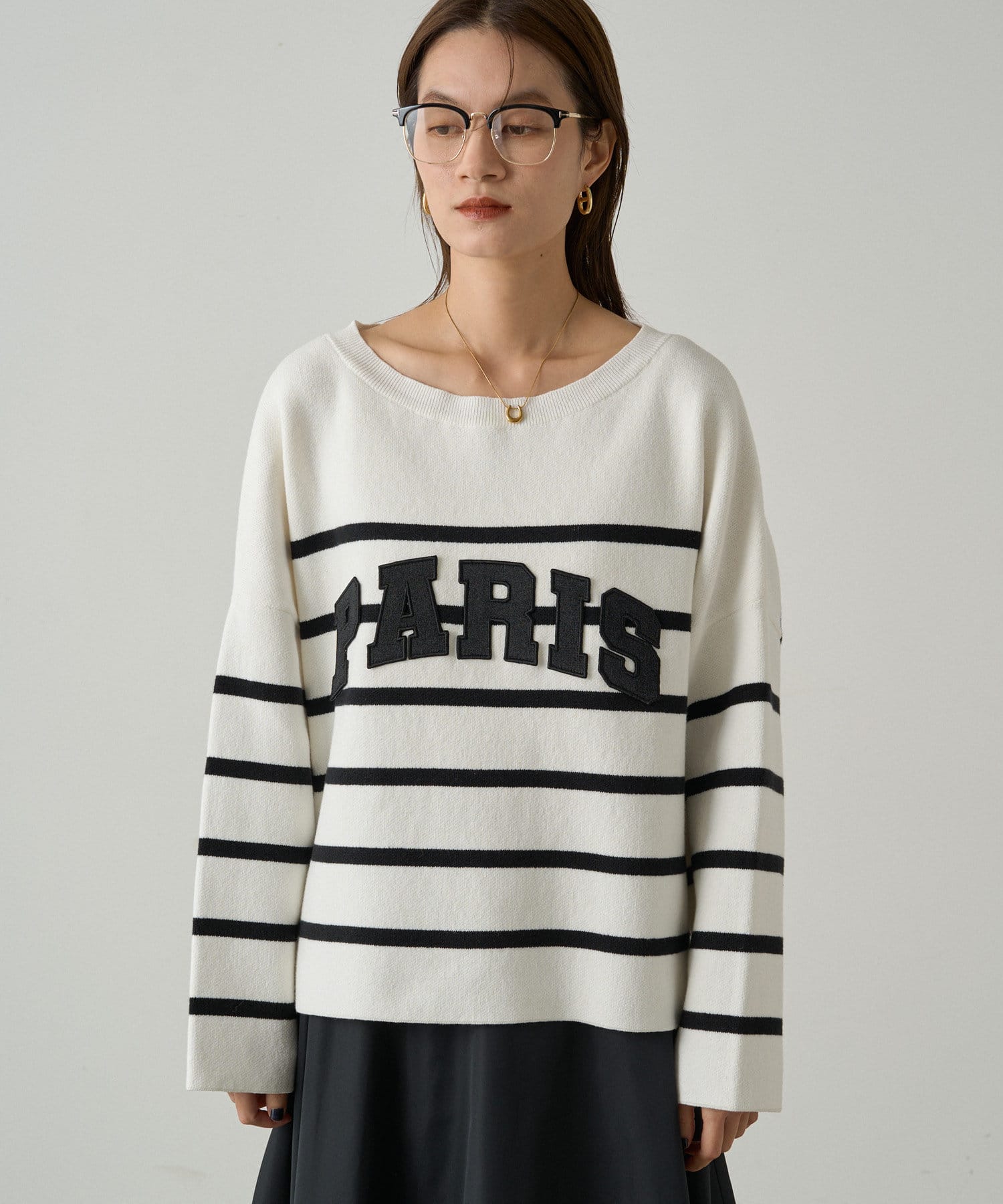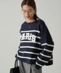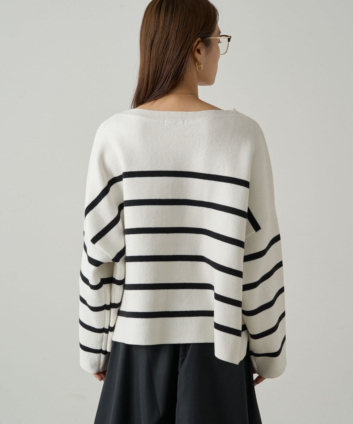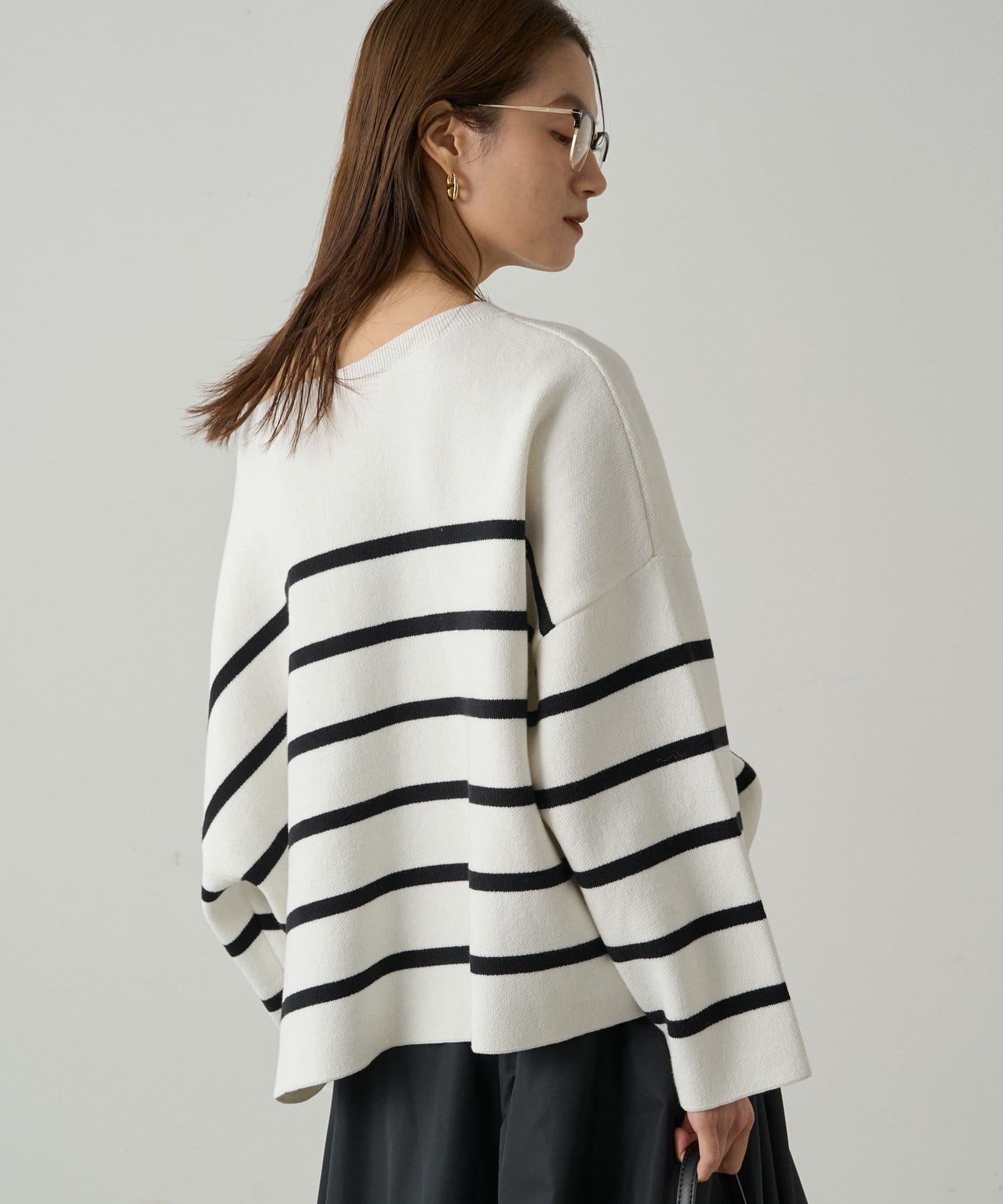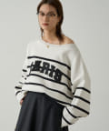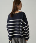ボーダーの入ったゆったりシルエットのニット。