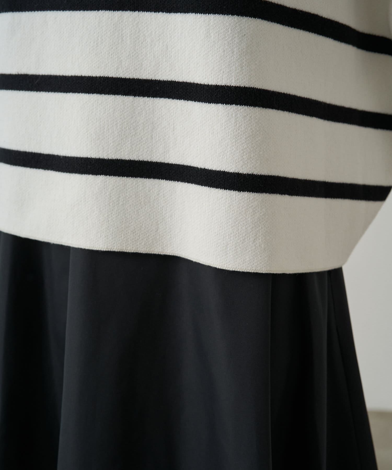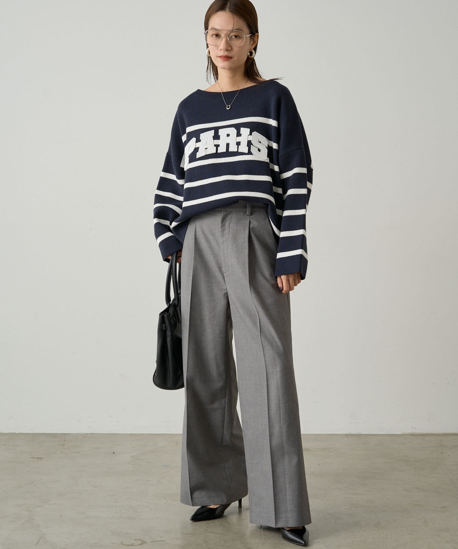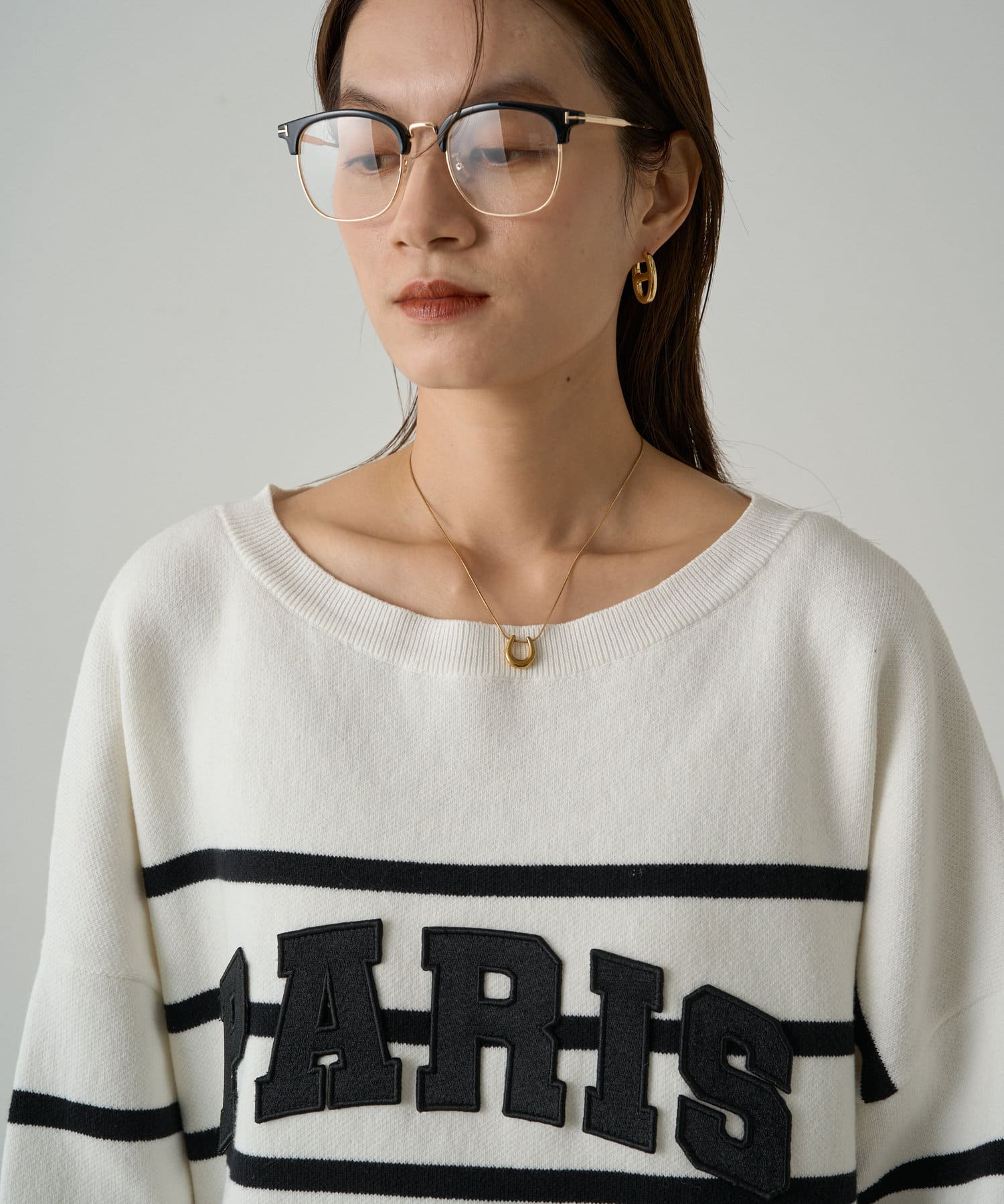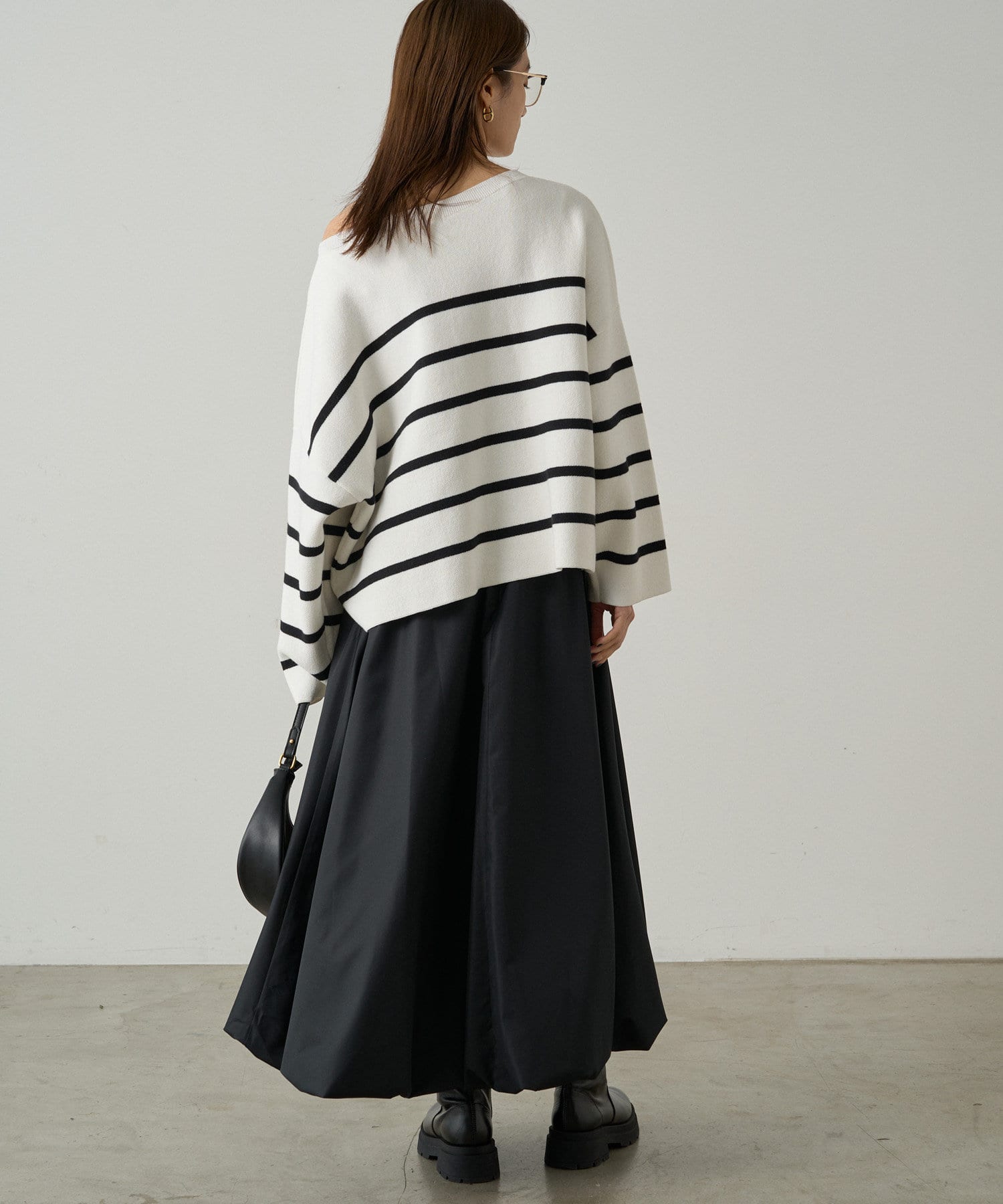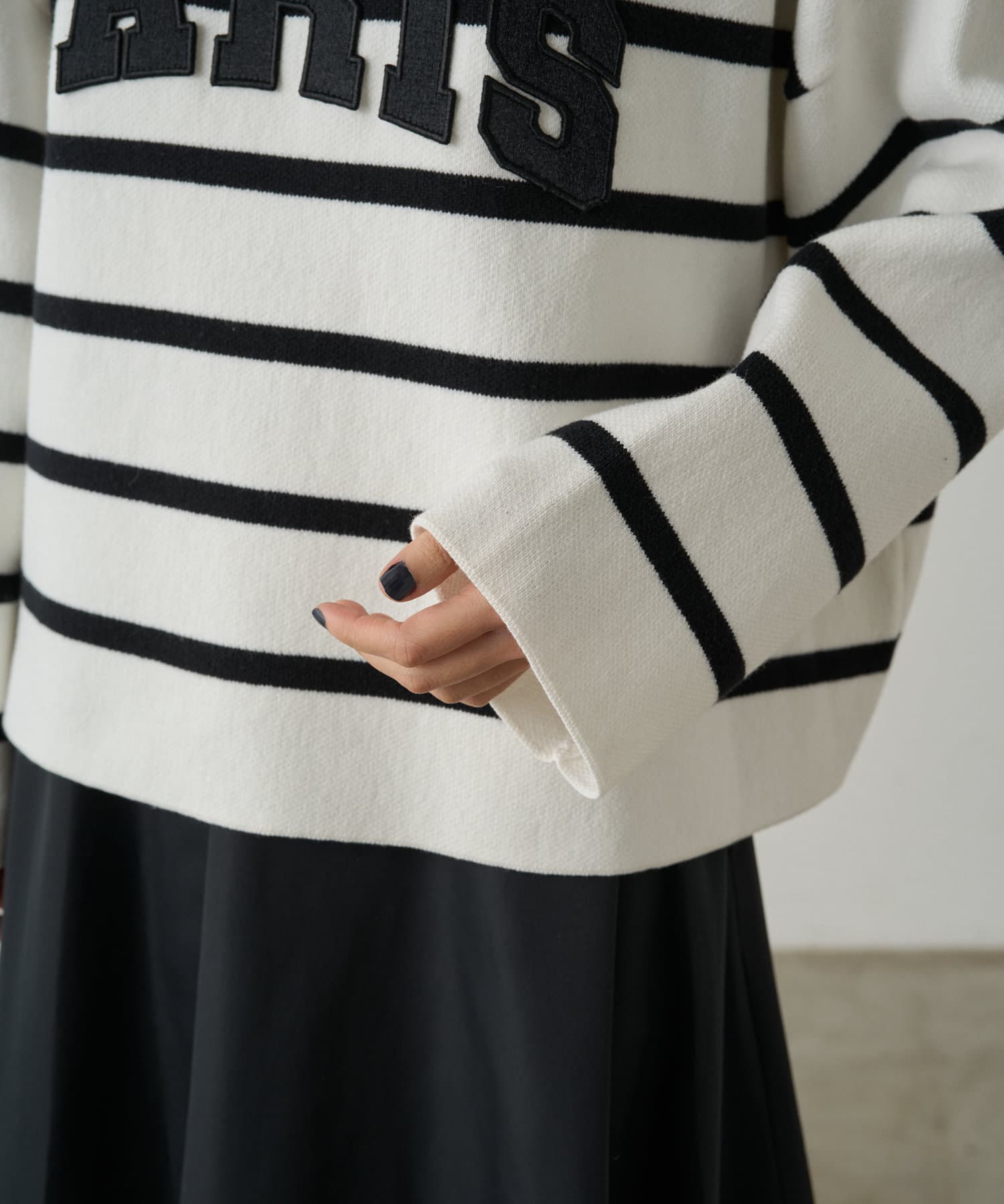 ボーダーの入ったゆったりシルエットのニット。