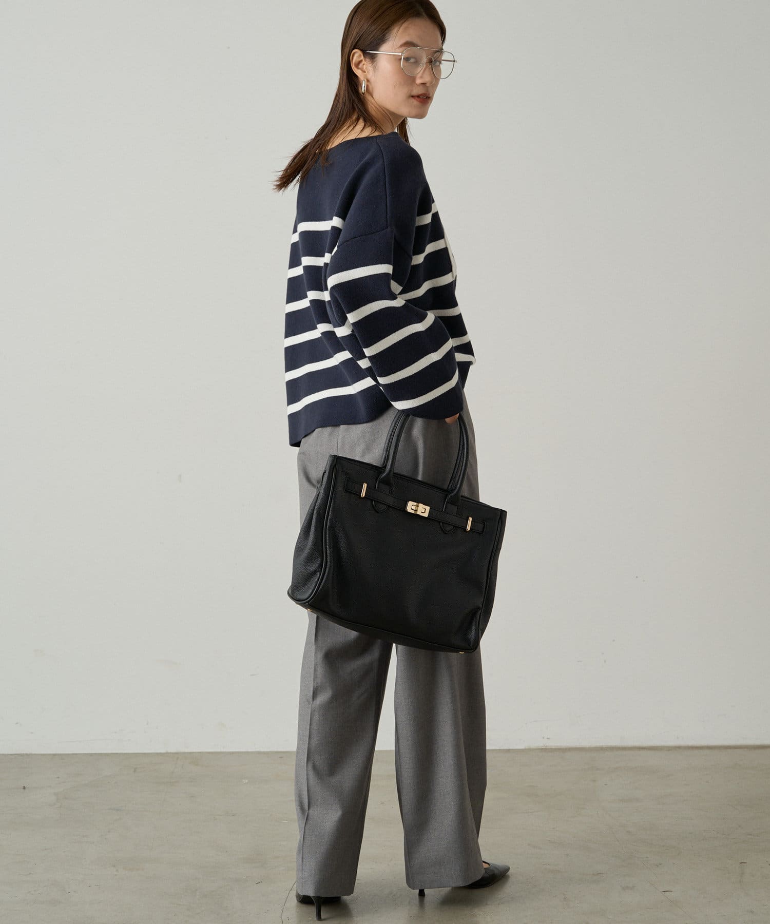 ボーダーがトレンド感たっぷりの着映えるオーバーサイズニット