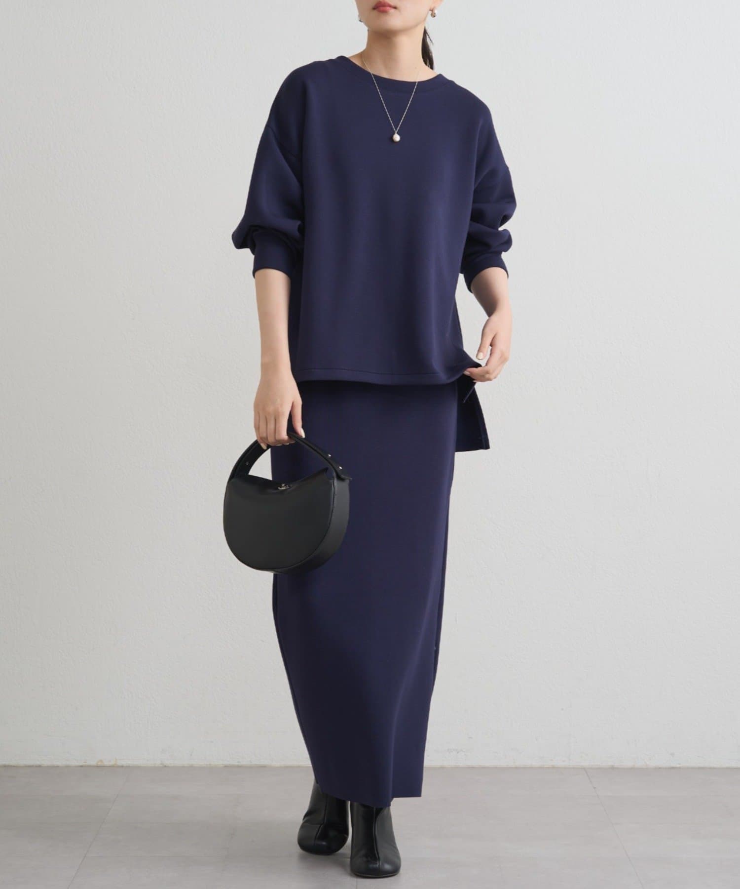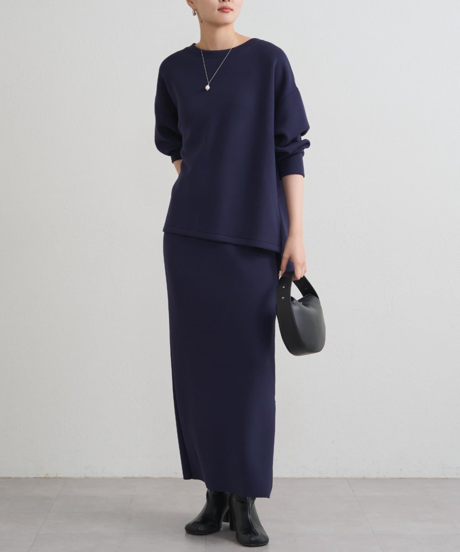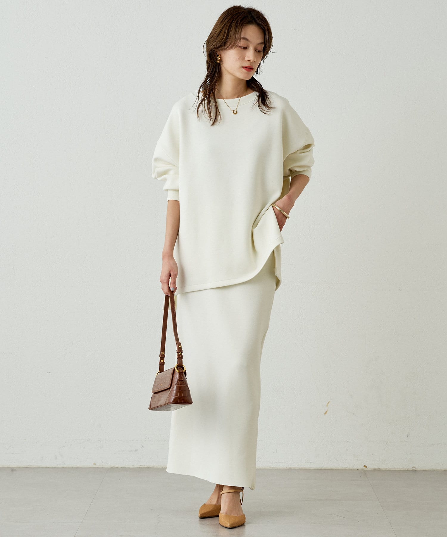 ラウンジドレスの名品、ポンチZIPスカートとセットアップでお召し頂けます。