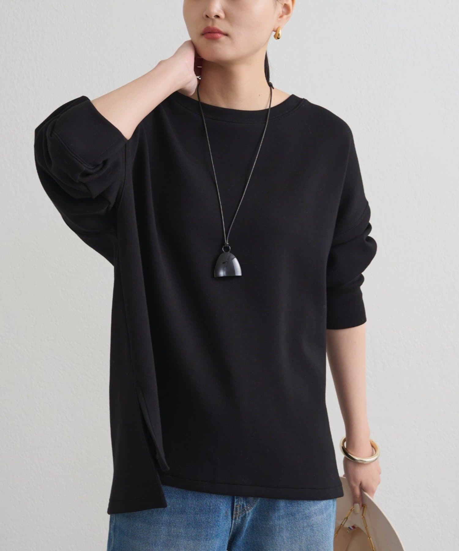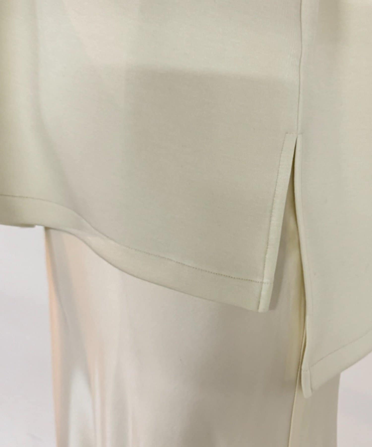 艶のある素材感できれい見えしながらも楽に着て頂けるトップスです。