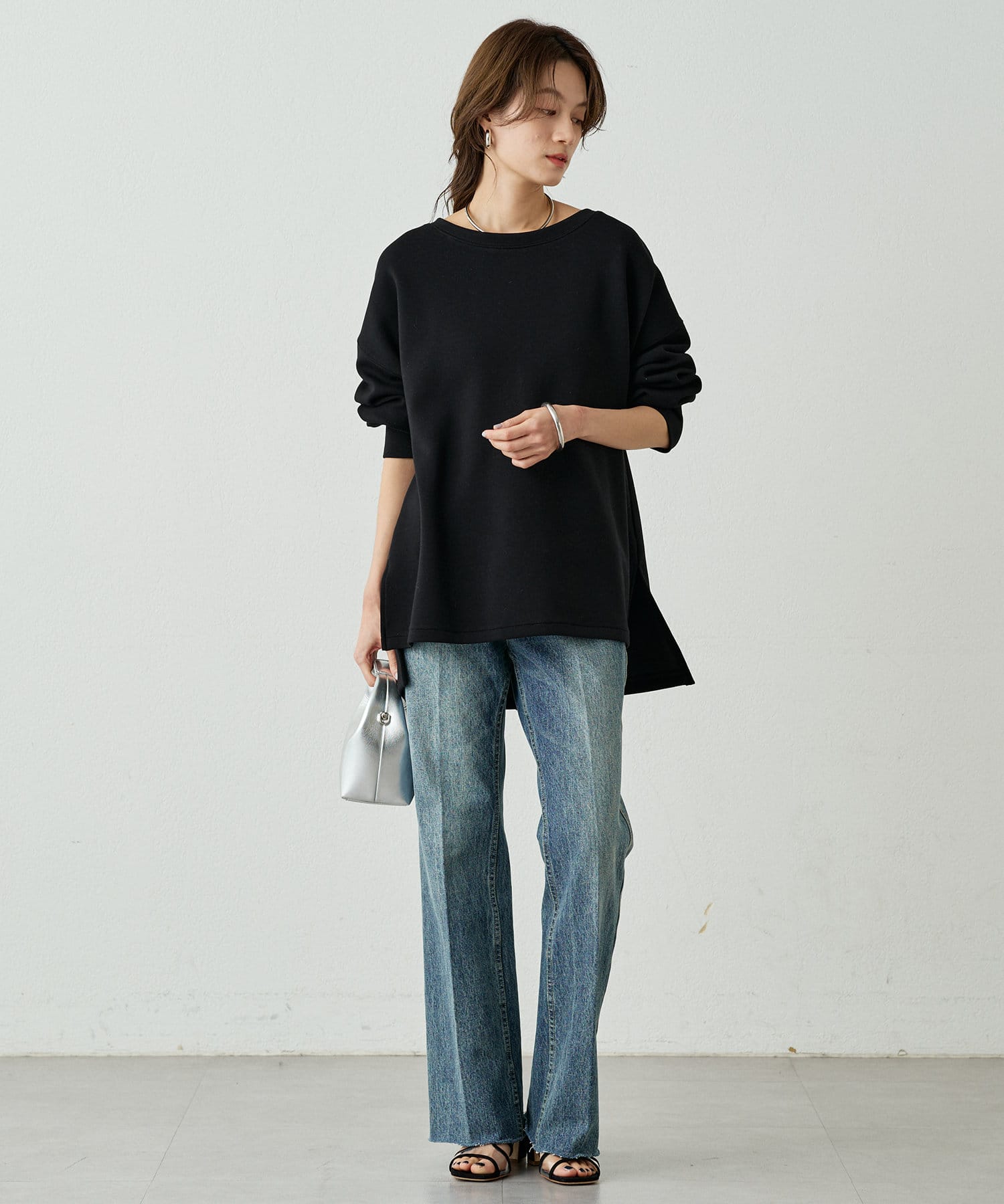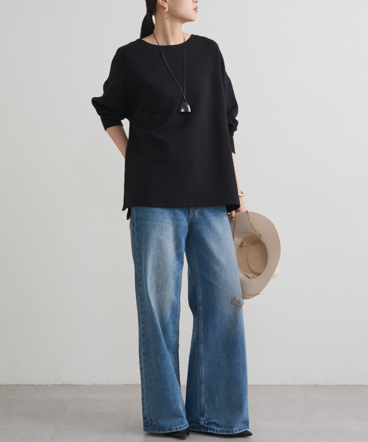 カジュアルなデニムスタイルや、タイトスカートやワイドパンツなどきれいめボトムスとも好相性。