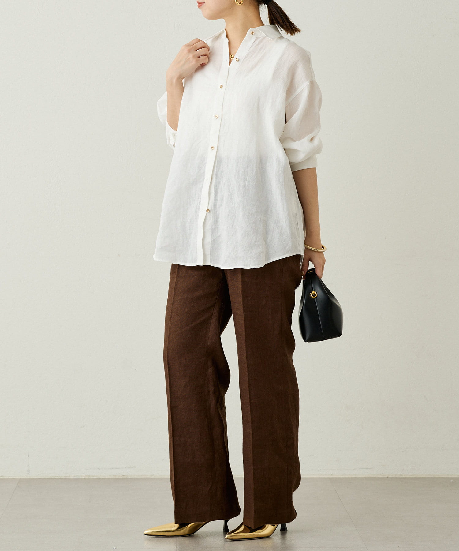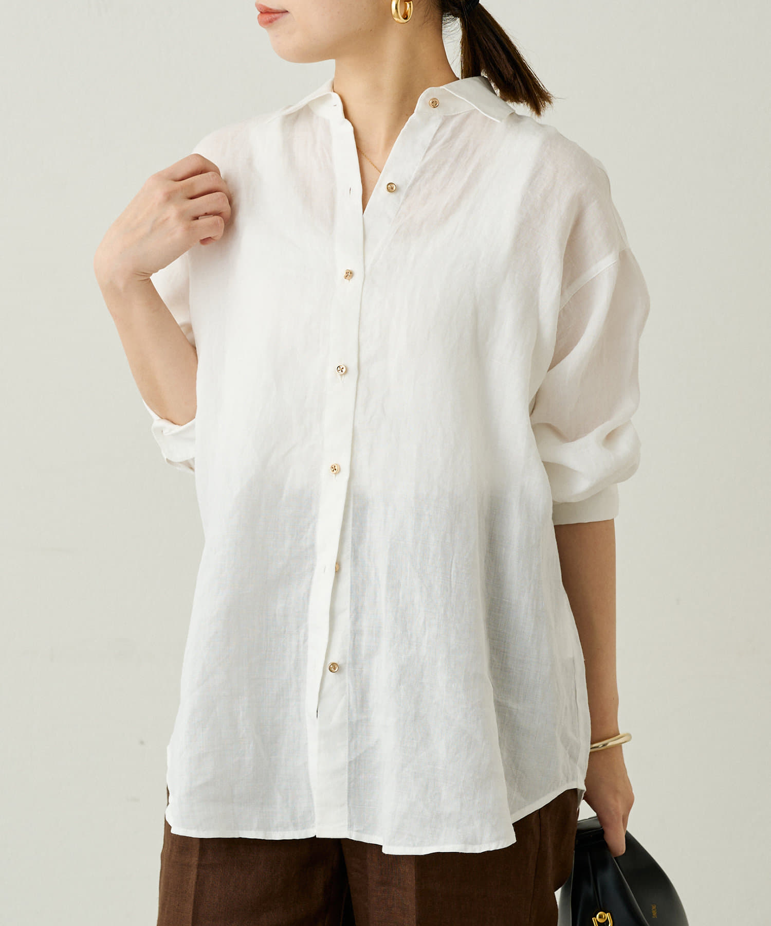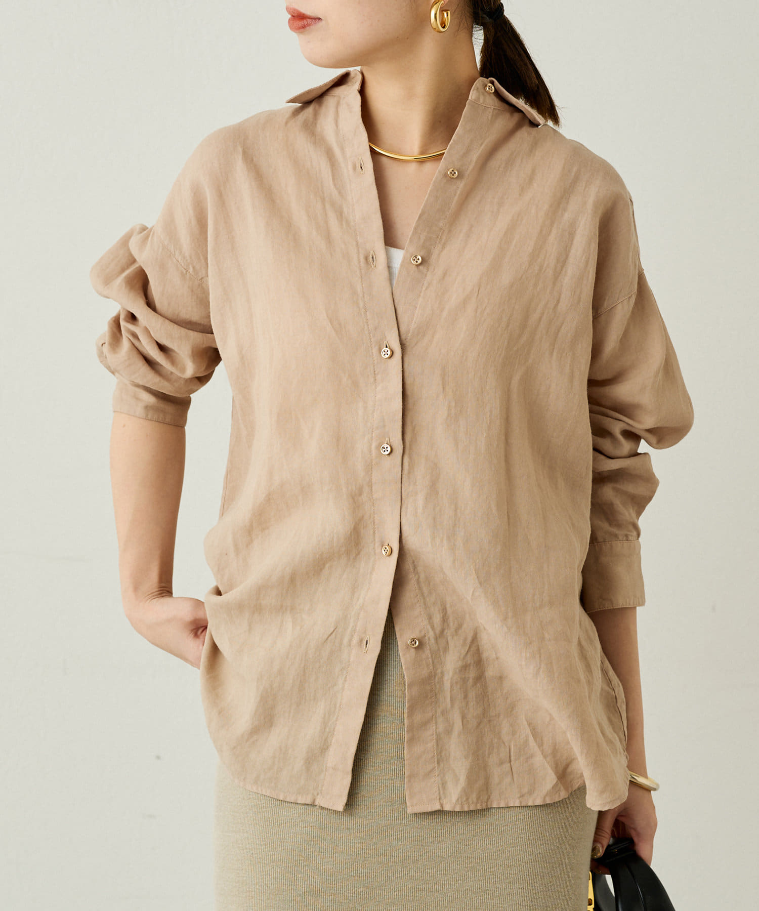 TOP > OUTLET > レディース > トップス > シャツ/ブラウス(ボタン) > 【Loungedress】リネンバックタイシャツ