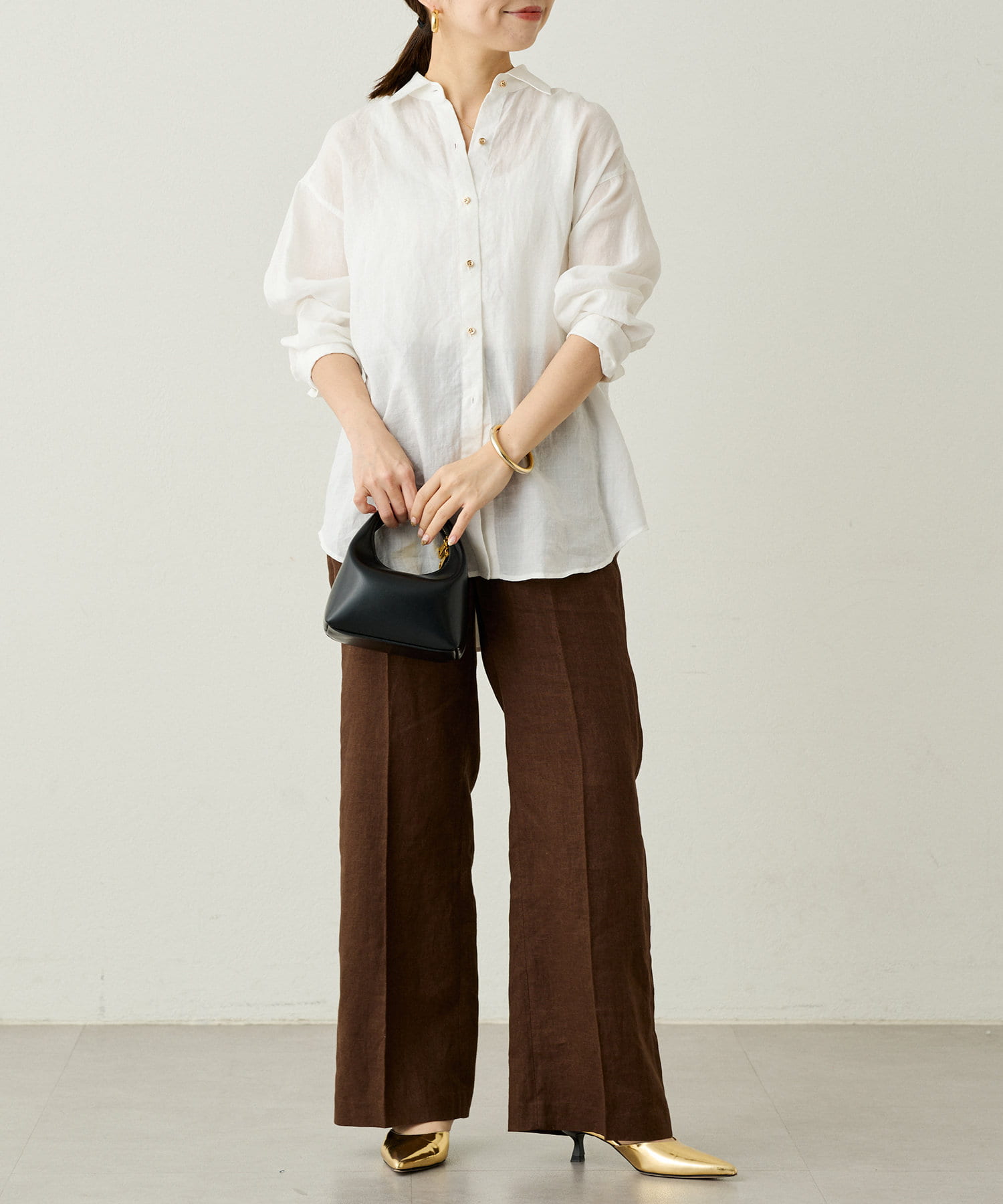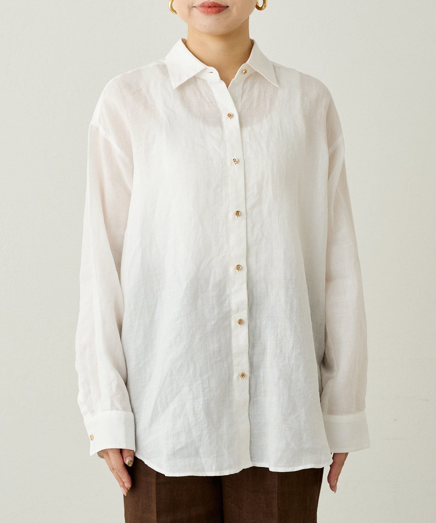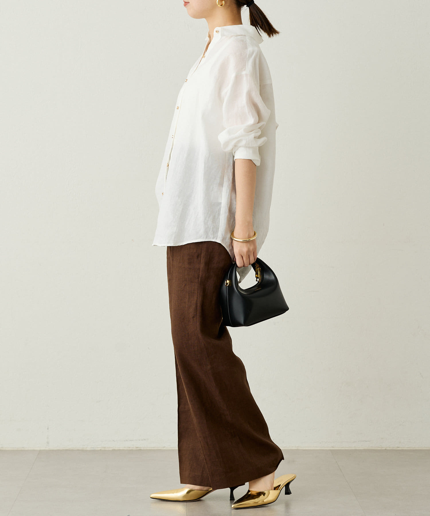 TOP > OUTLET > レディース > トップス > シャツ/ブラウス(ボタン) > 【Loungedress】リネンバックタイシャツ