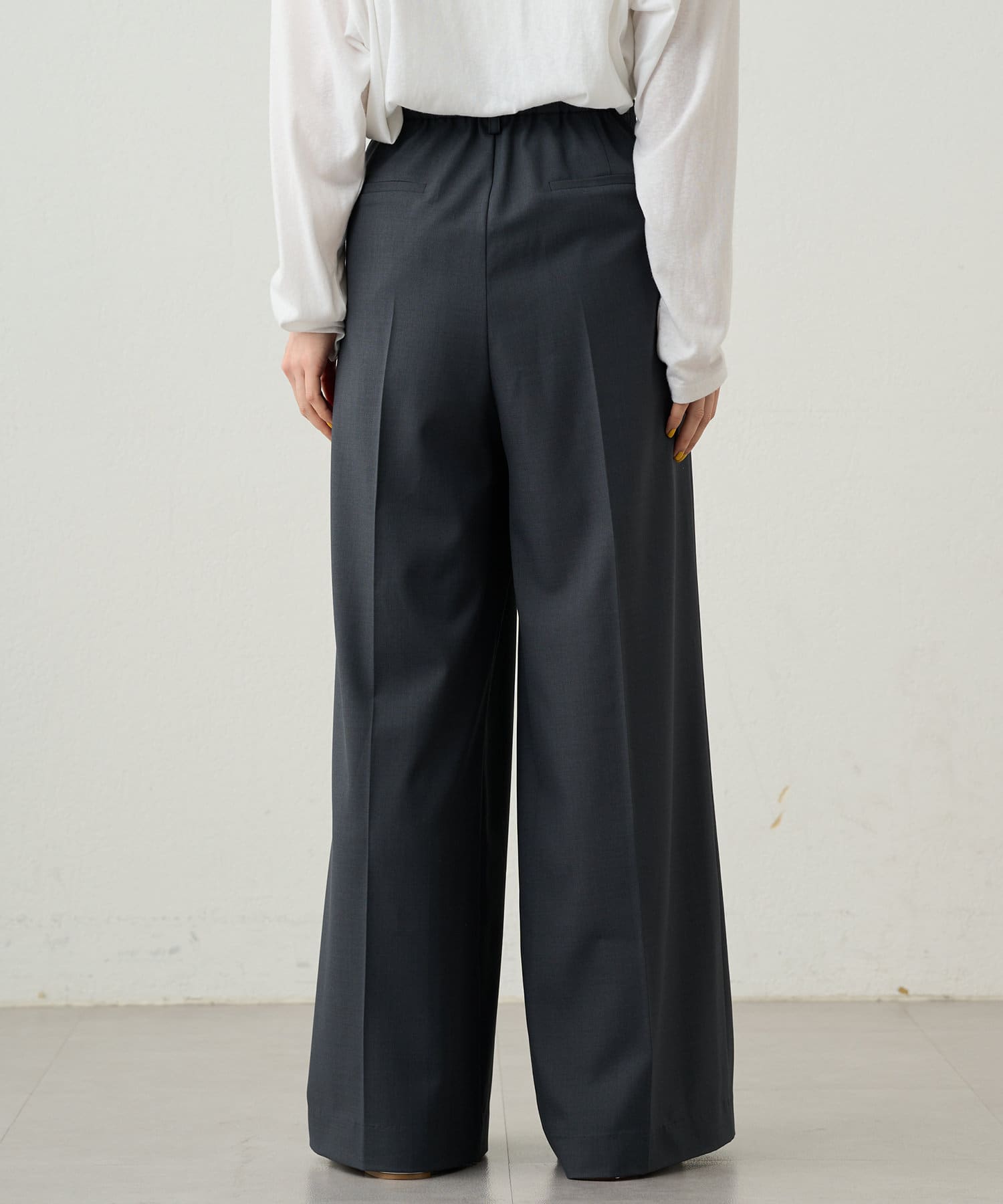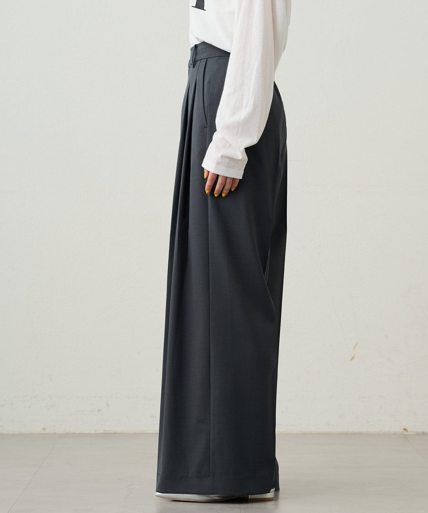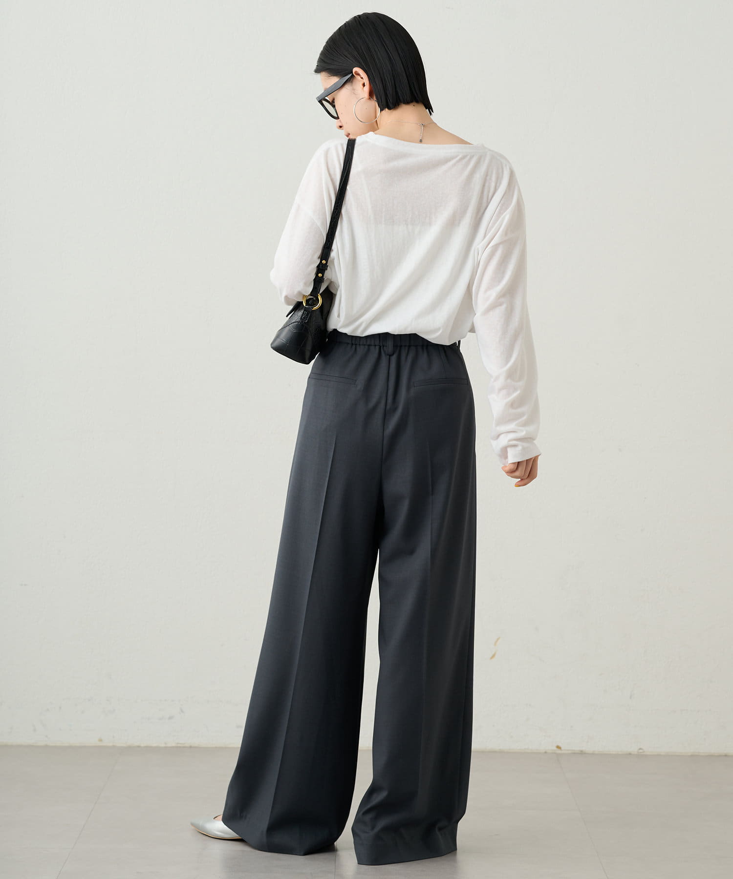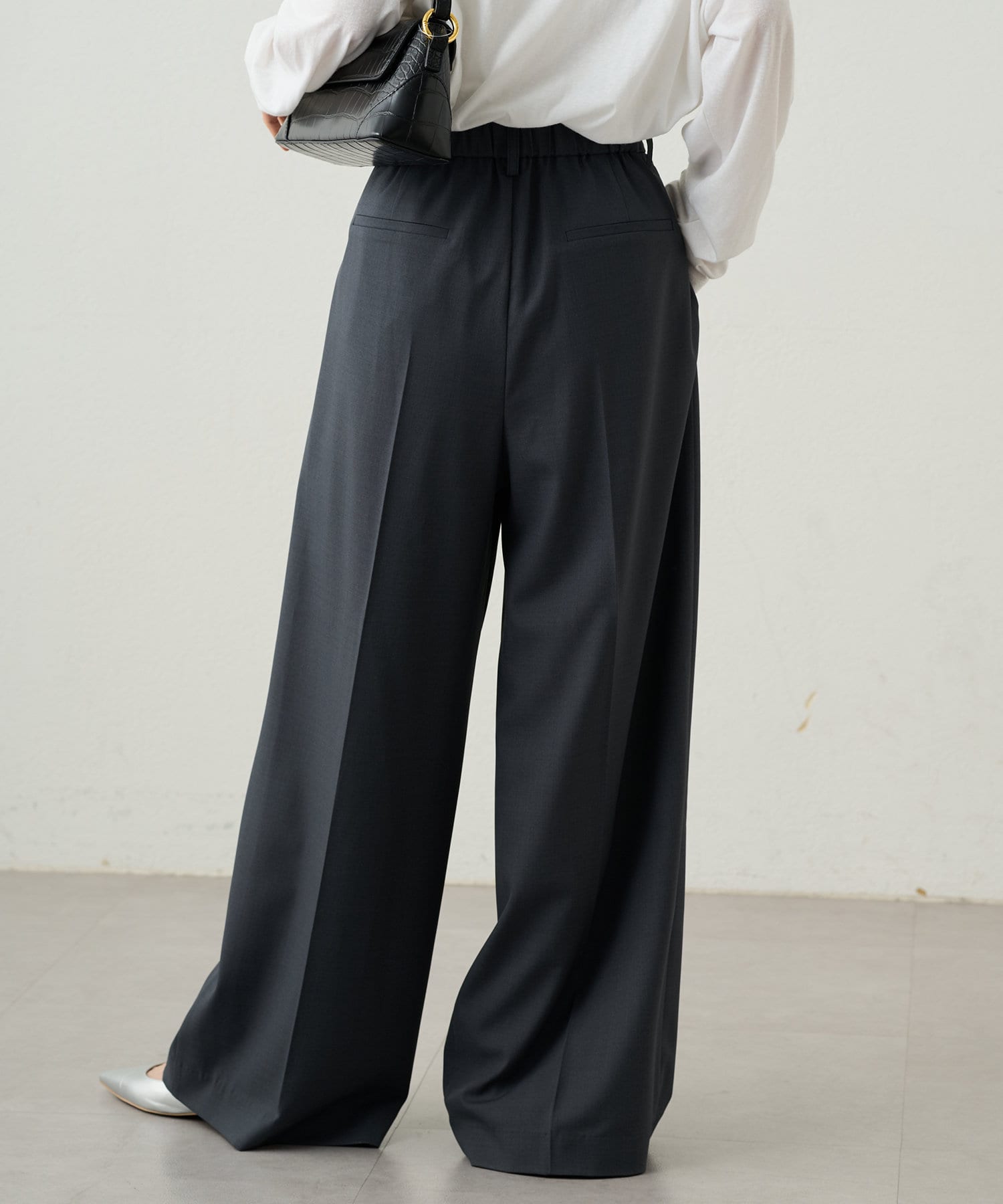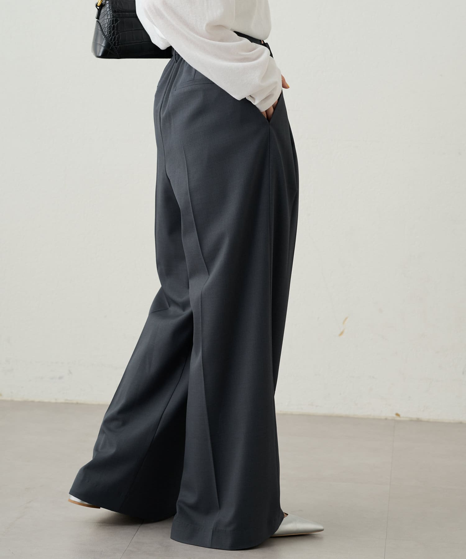 シンプルながらもシルエットに拘ったワイドパンツ