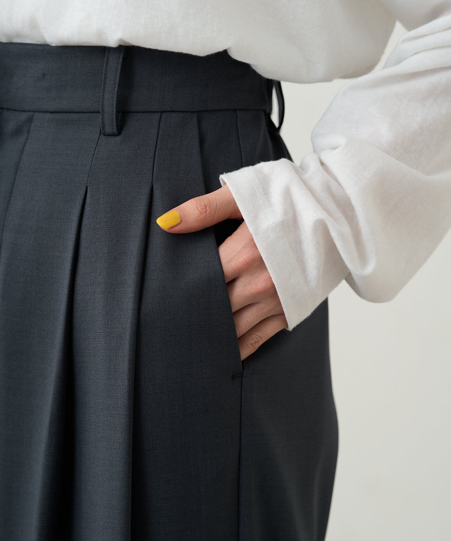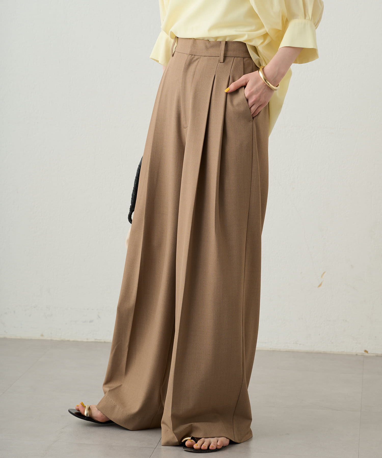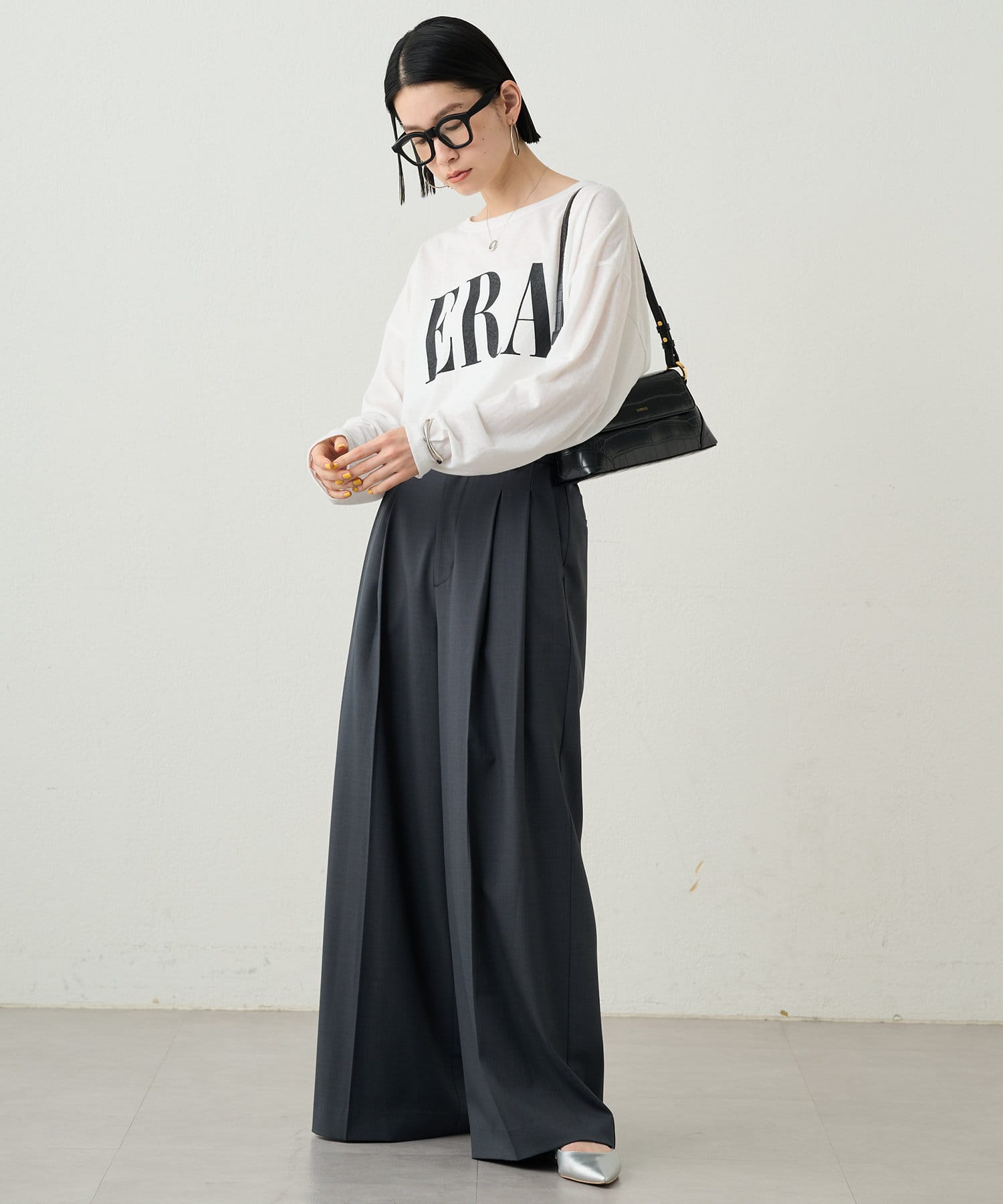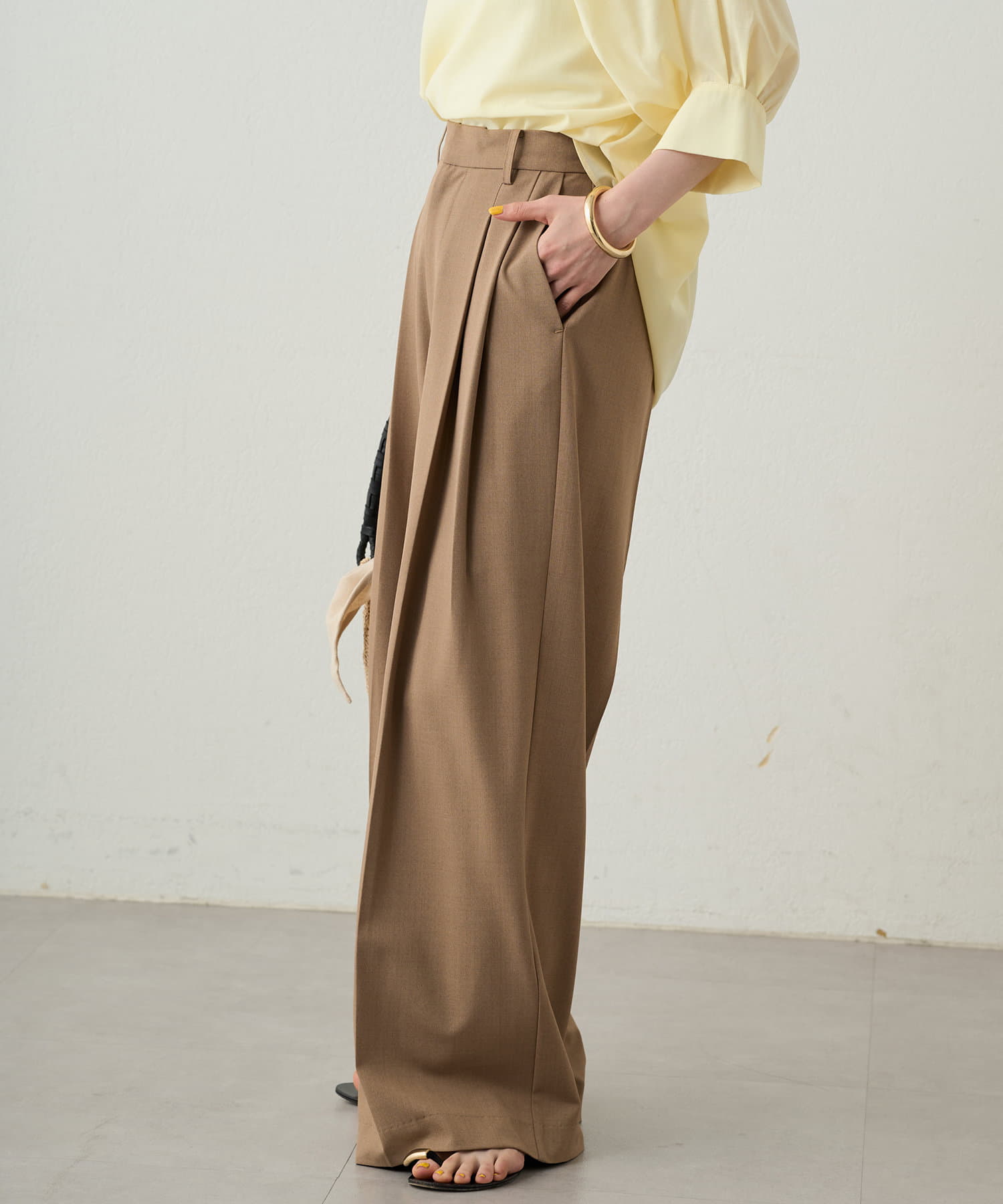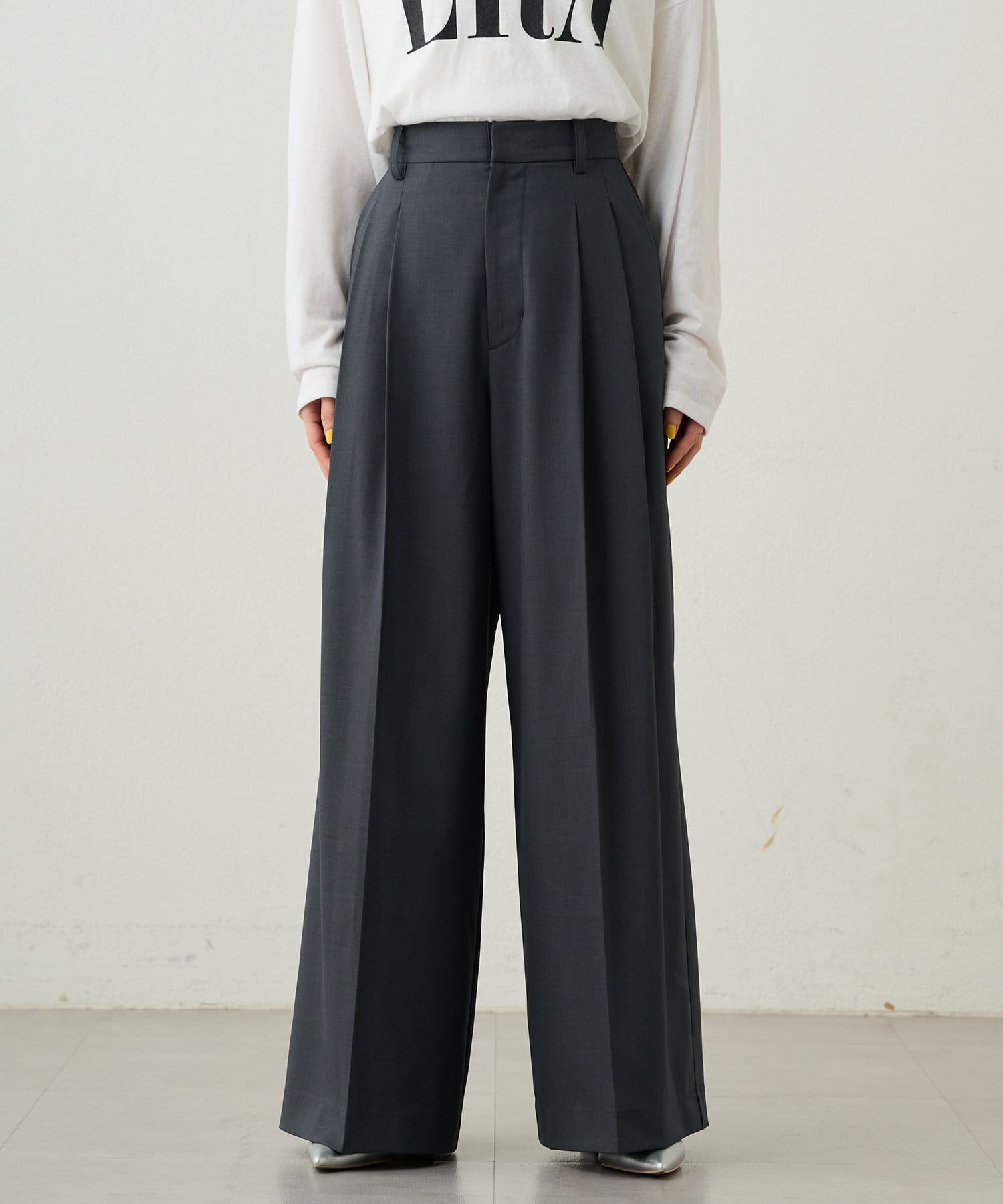 シンプルながらもシルエットに拘ったワイドパンツ