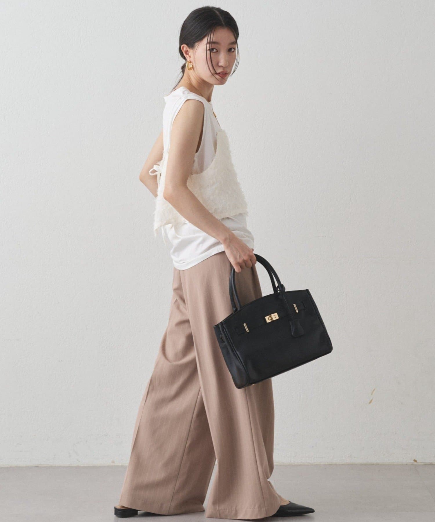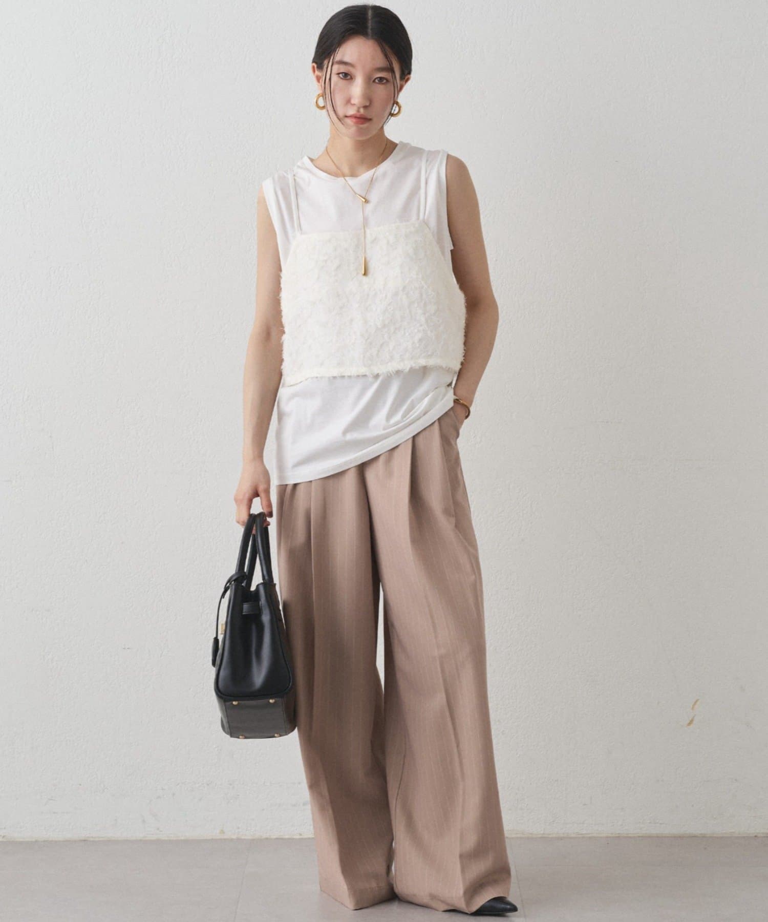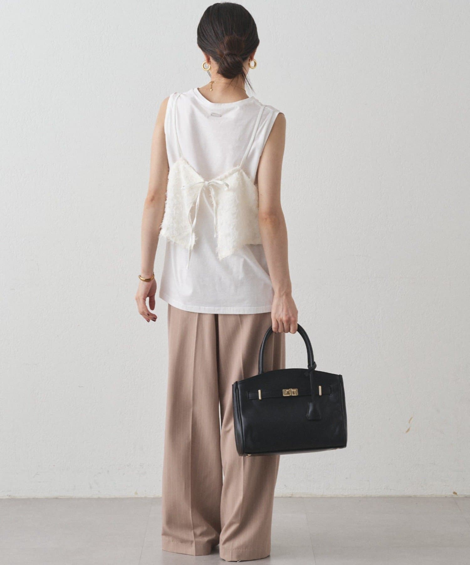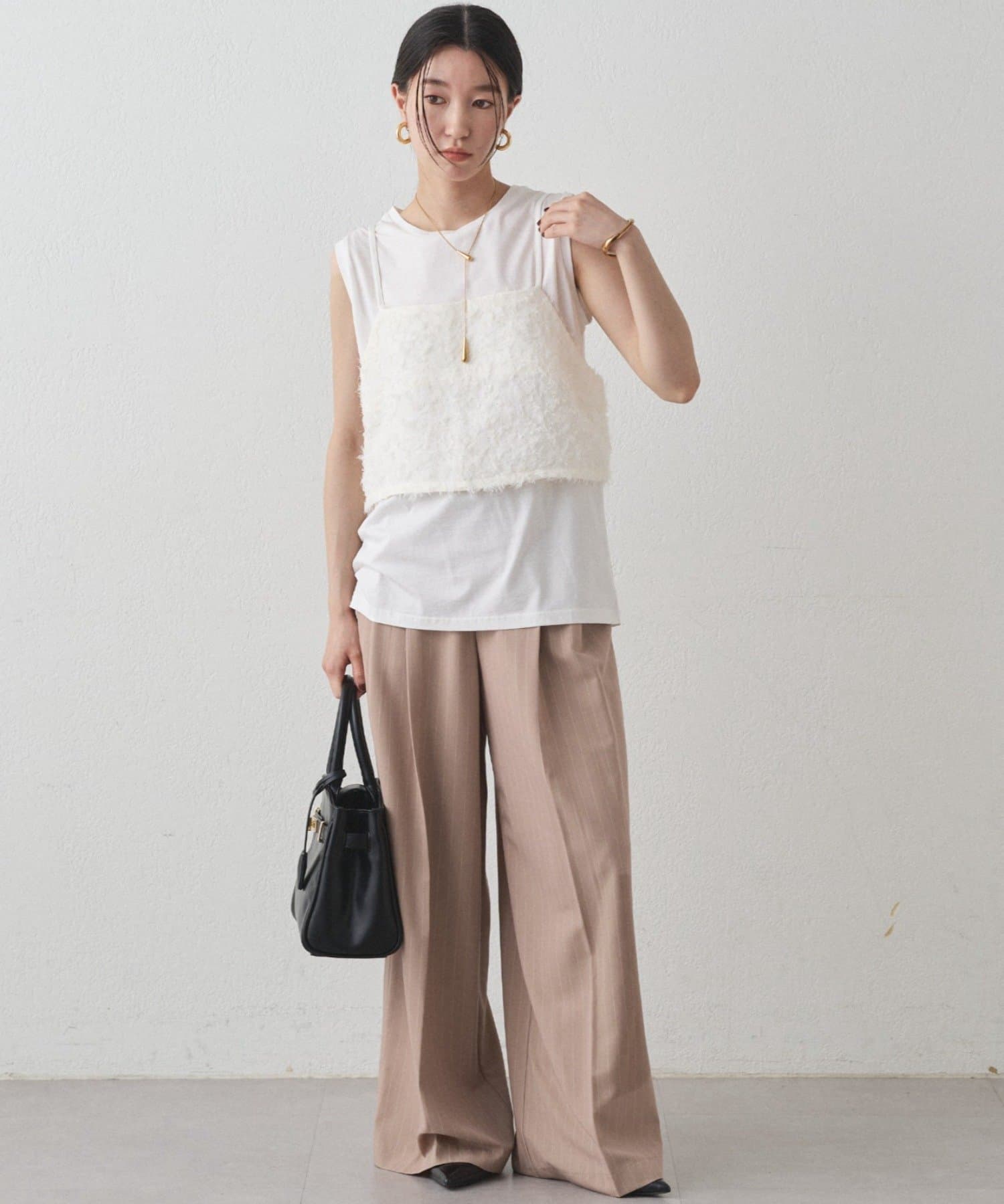 カットソーやニットなど、カジュアルスタイルも楽しめるのでデイリー使いにもおすすめです。