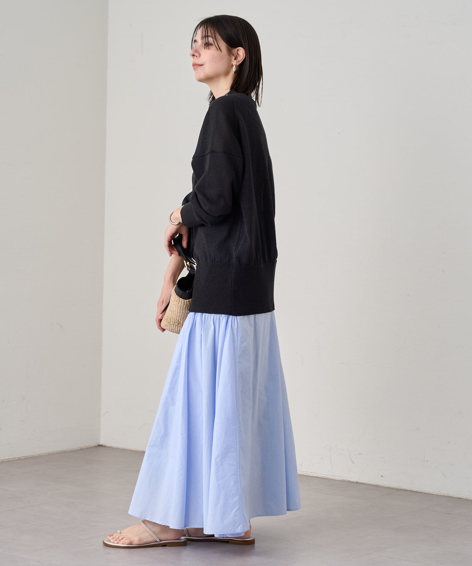 パンツにもスカートにも、ボトムスを選ばず着ていただけます。