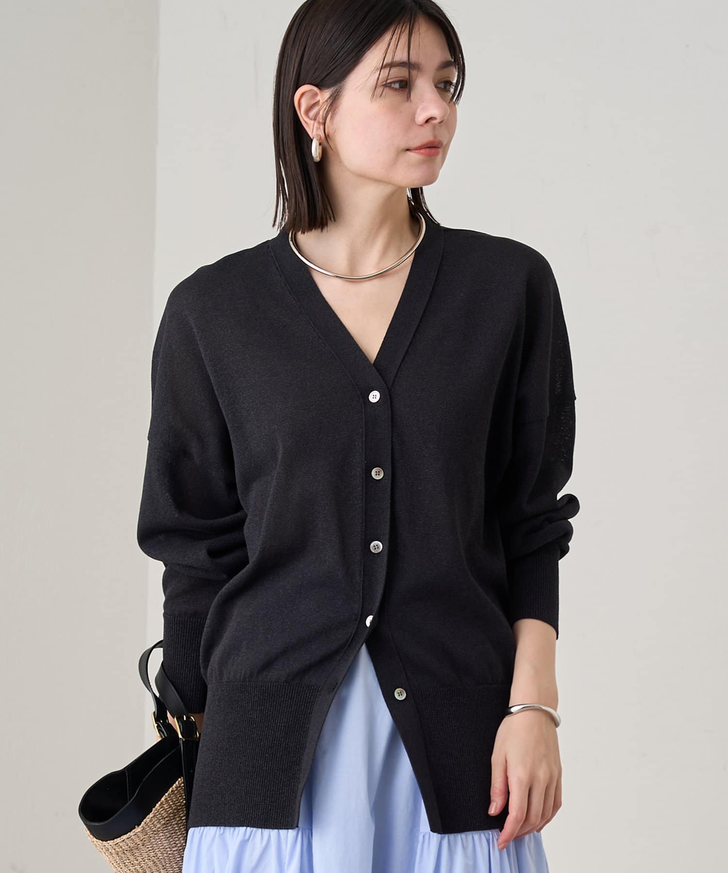 程よい透け感とさらっと軽い素材で着心地の良いカーディガン。