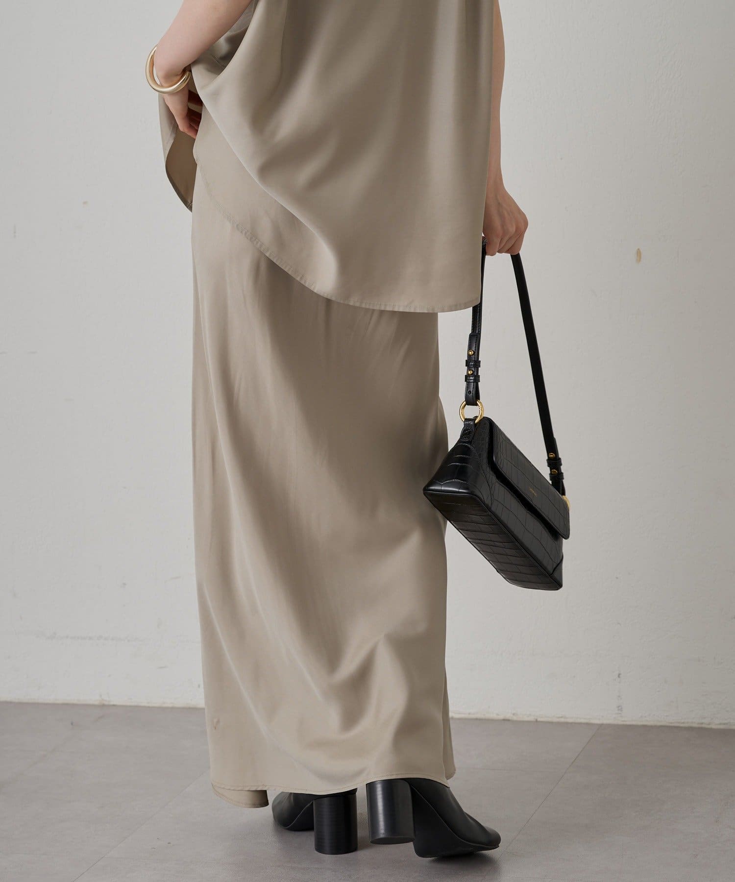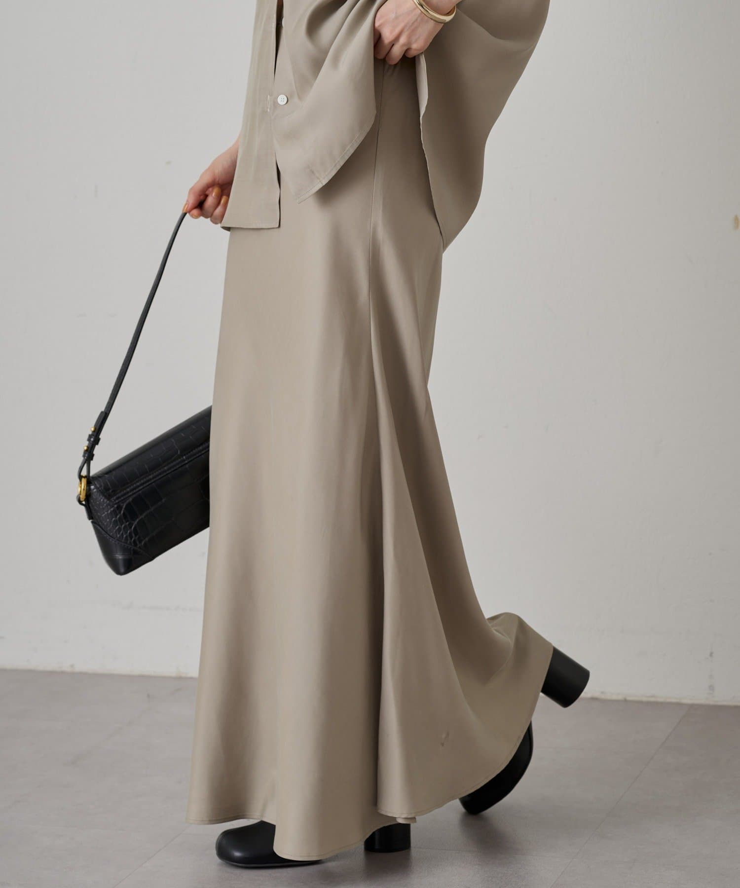 歩くたびに優雅に揺れるロング丈は、気になる体型をカバーしつつ、スタイルアップ効果も期待できます。